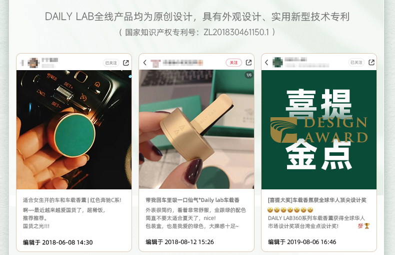 DAILY LAB 360车载香薰轻奢车香固体汽车出风口香水空调摆件