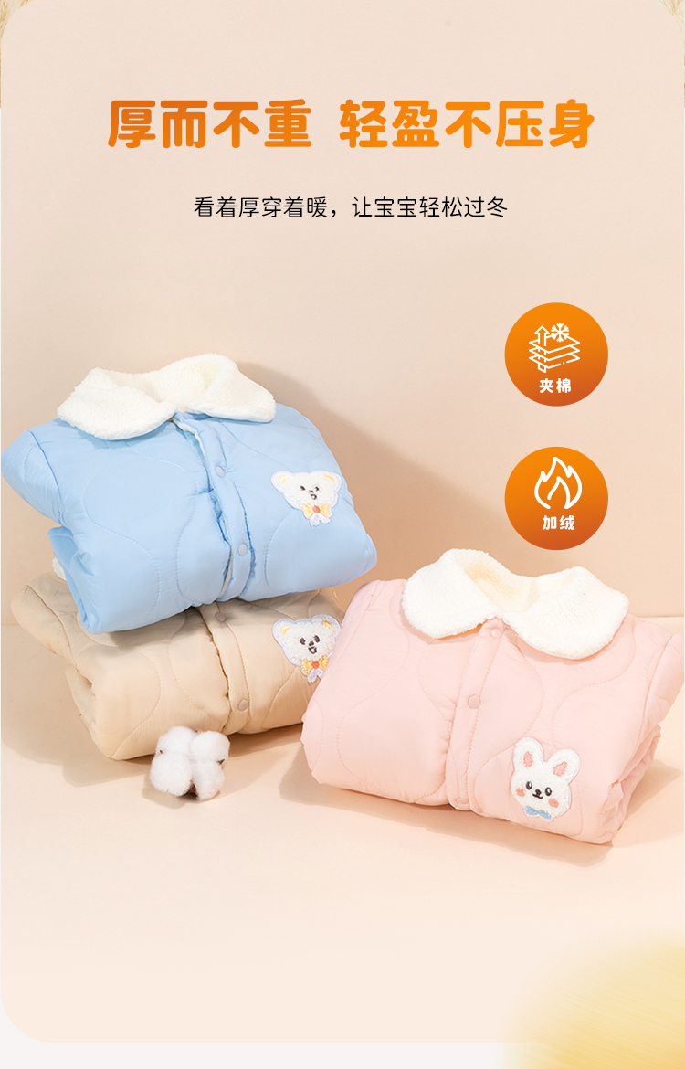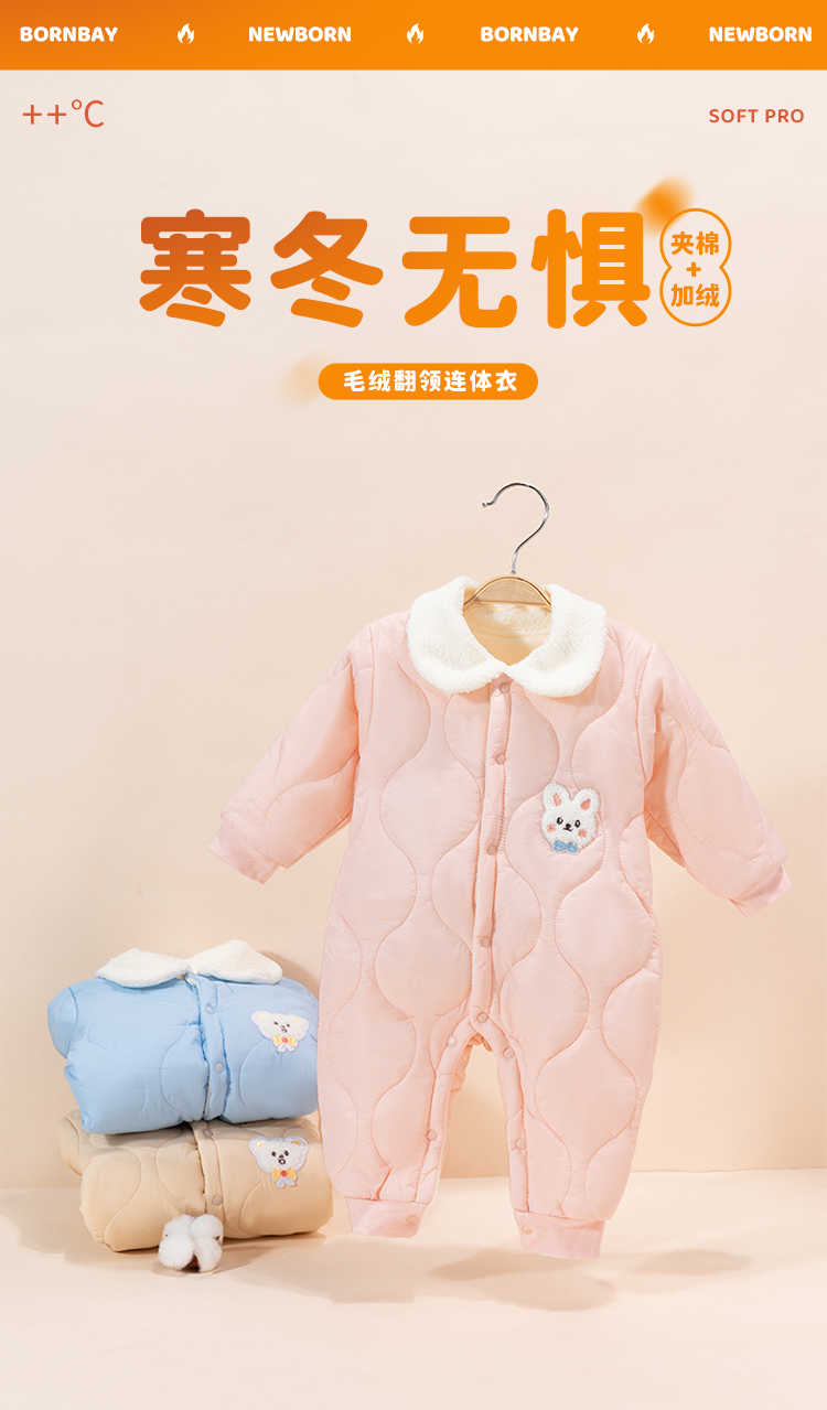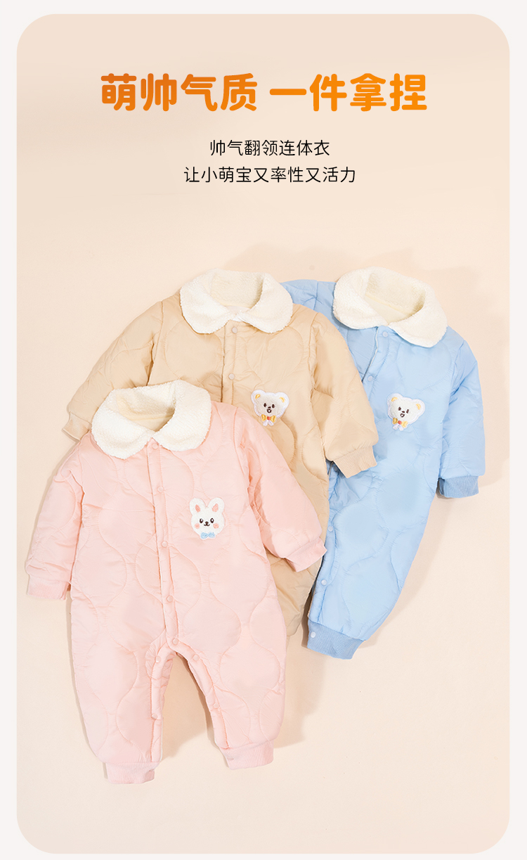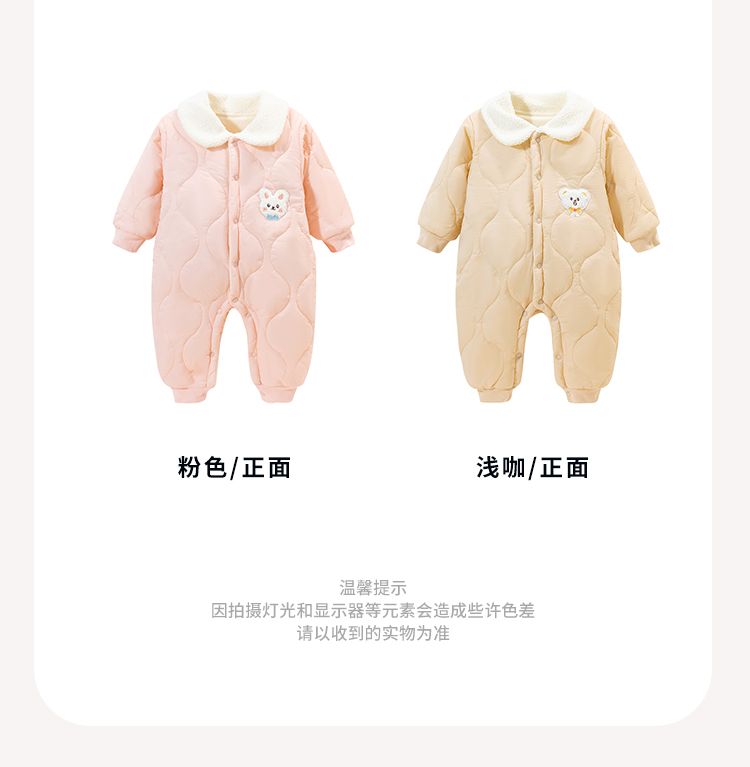 贝贝怡童装婴儿连体衣秋冬新款加绒加厚保暖新生儿夹棉宝宝哈衣ZB4DL038