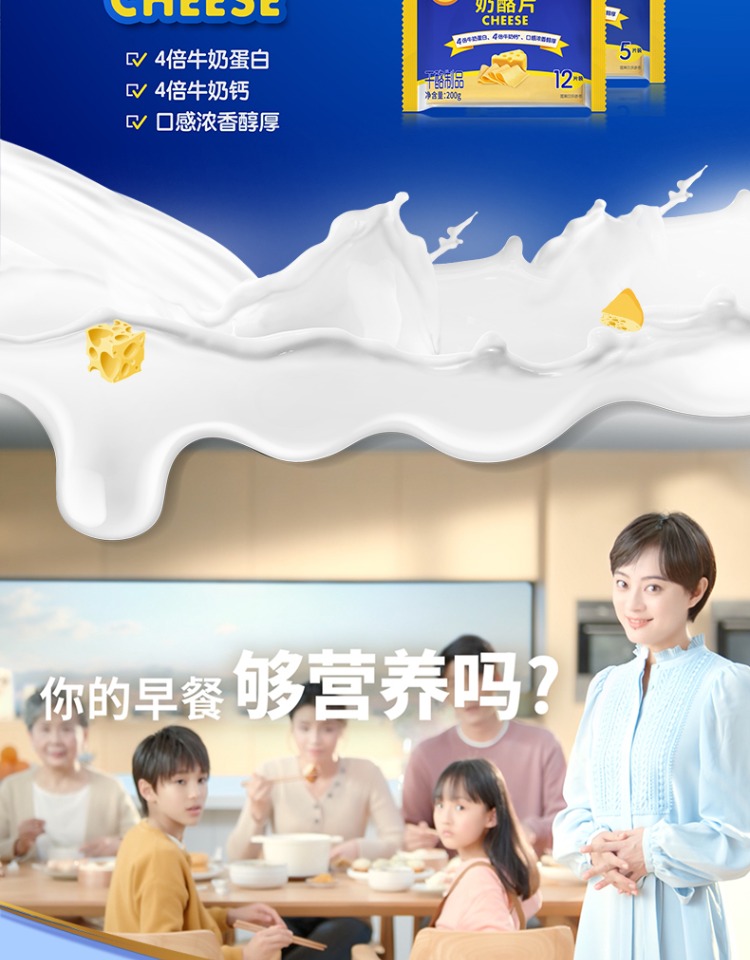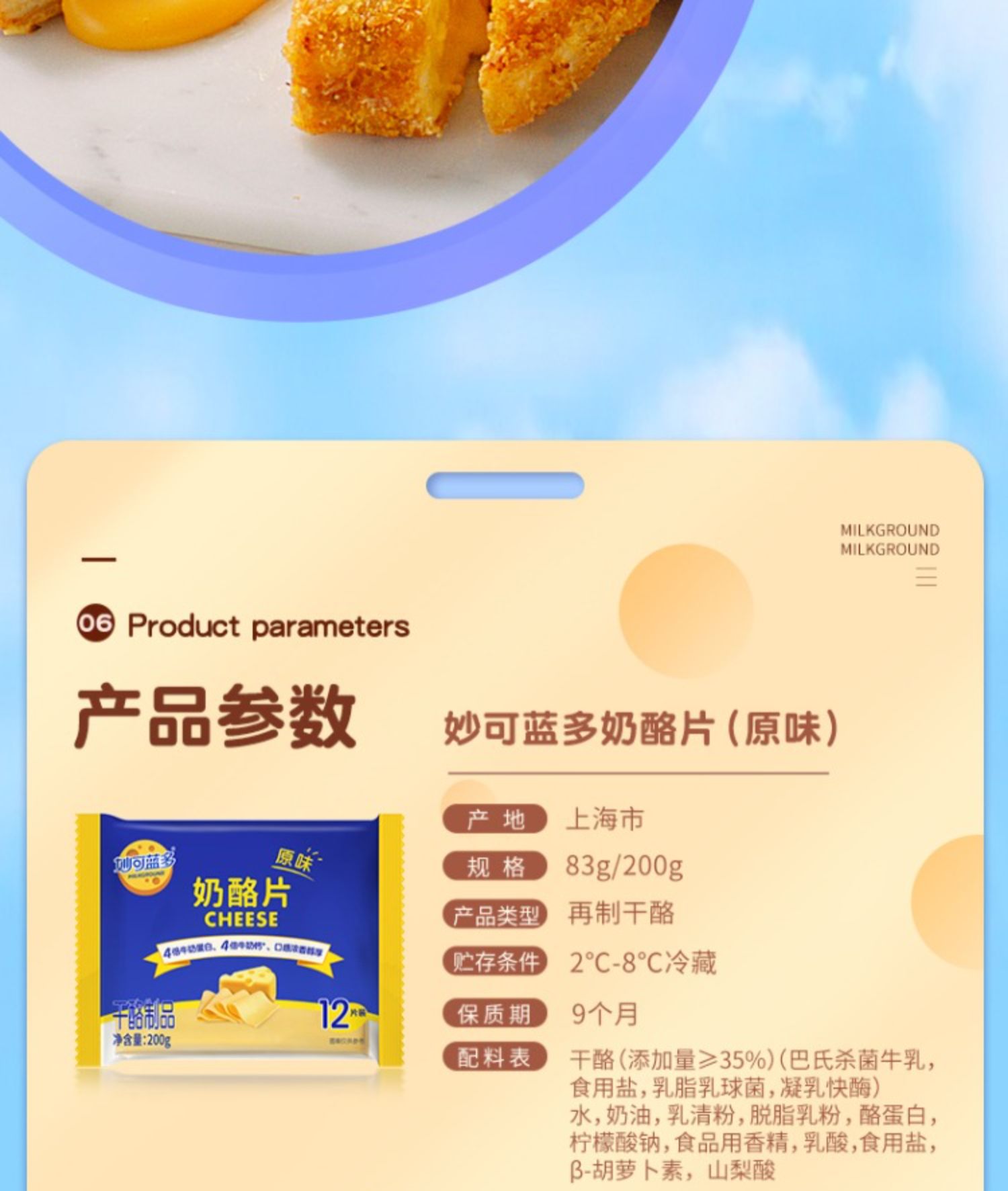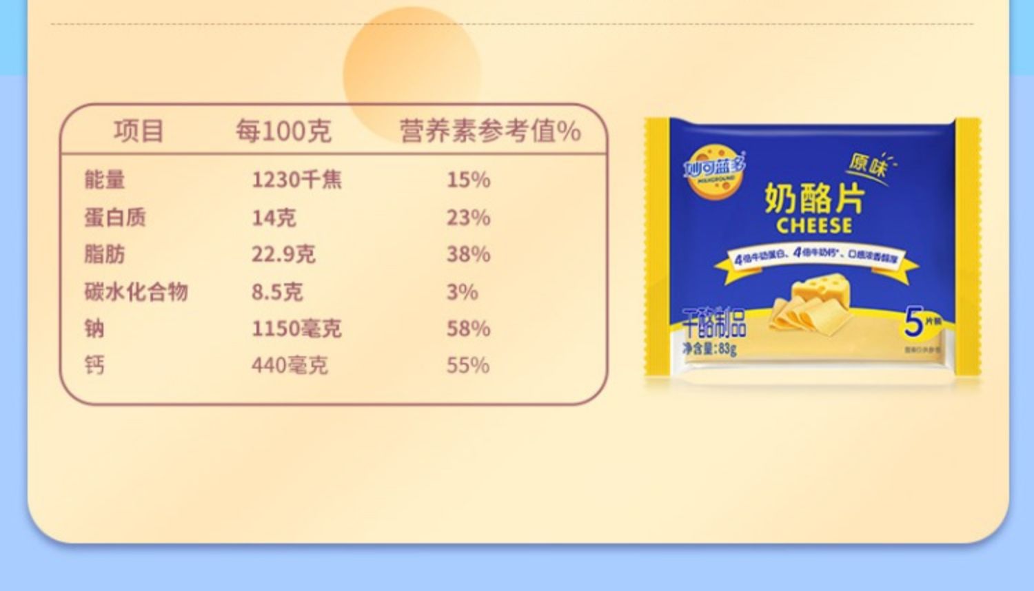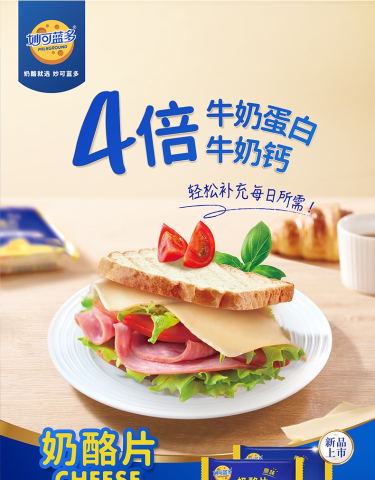 妙可蓝多原味芝士片83g/袋奶酪片三明治面包烘焙干酪制品五片装
