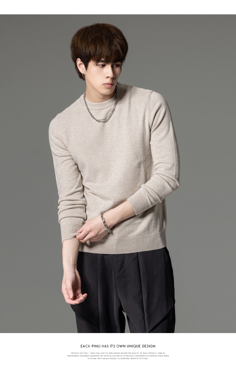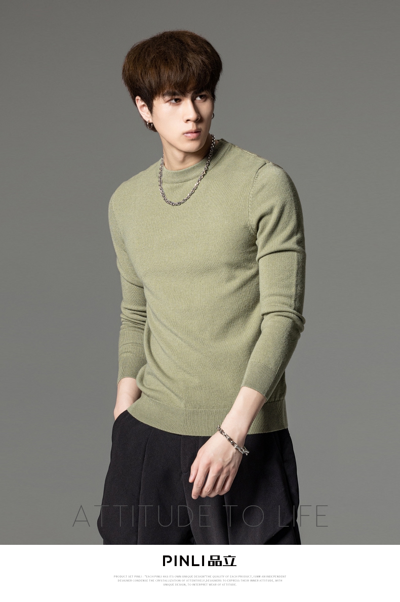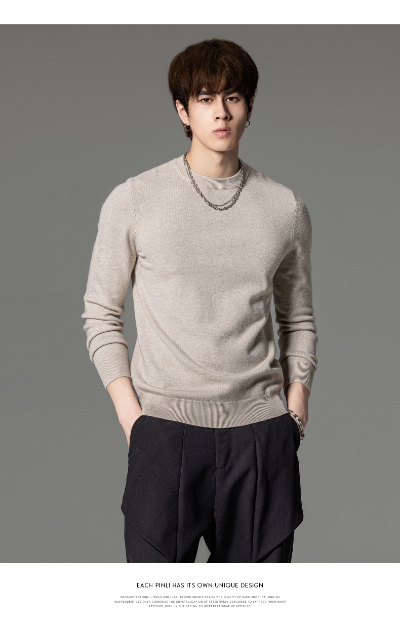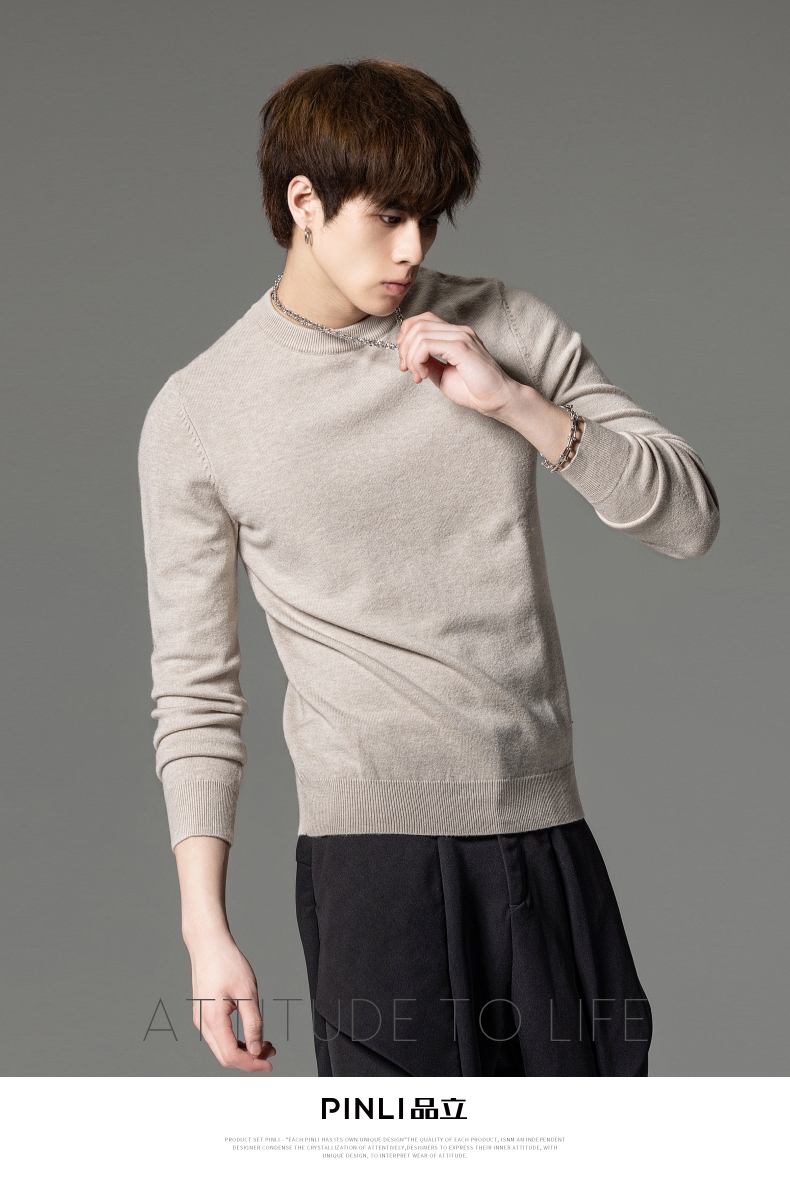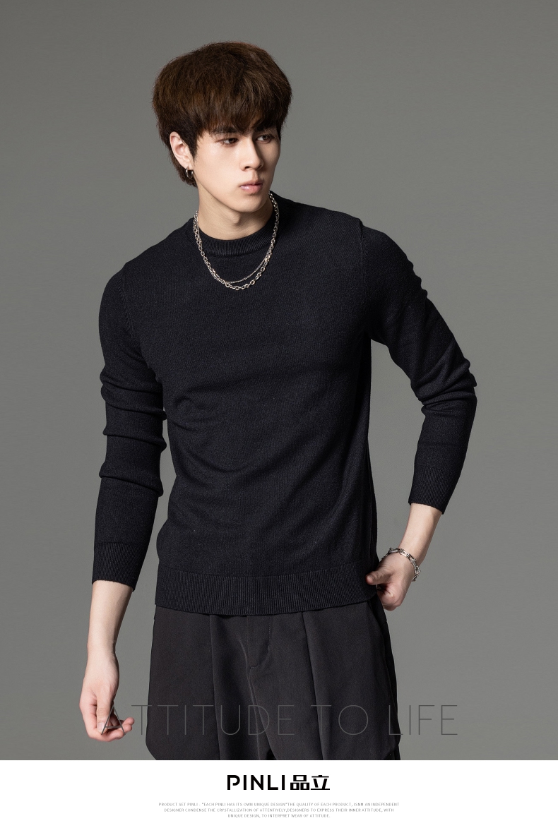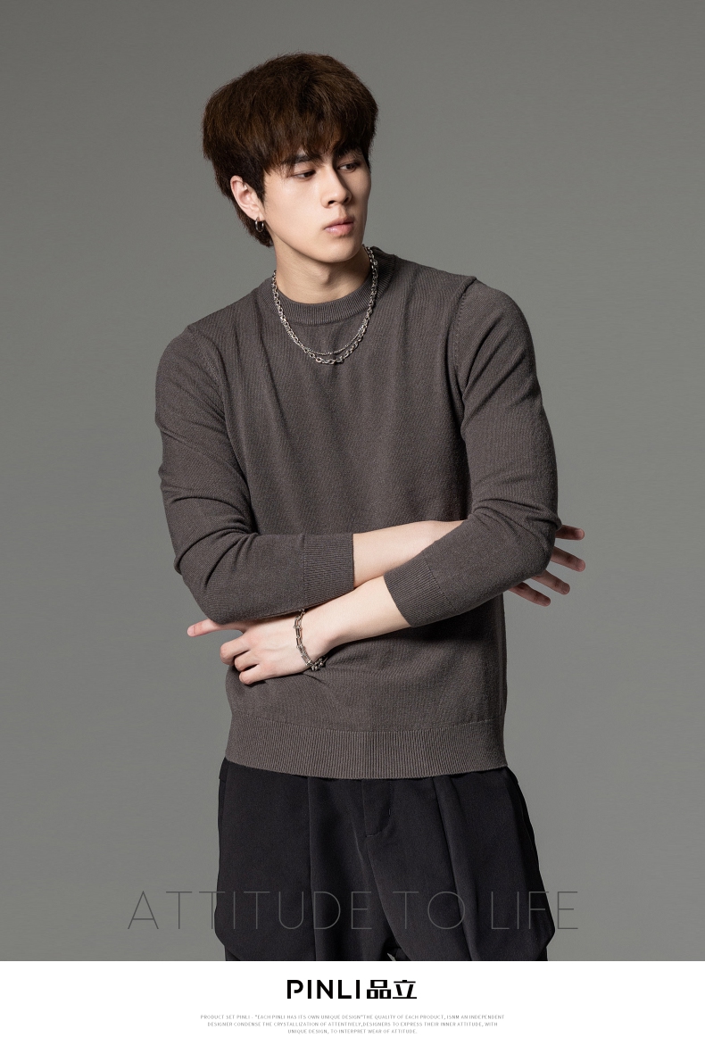 PINLI品立秋季新款男圆领长袖套头针织衫打底毛衣GD233210117