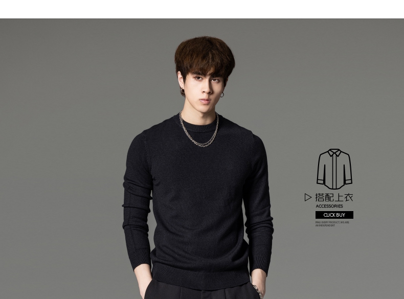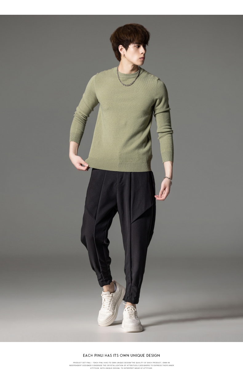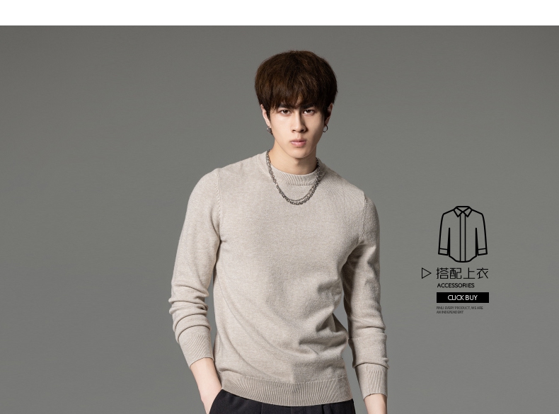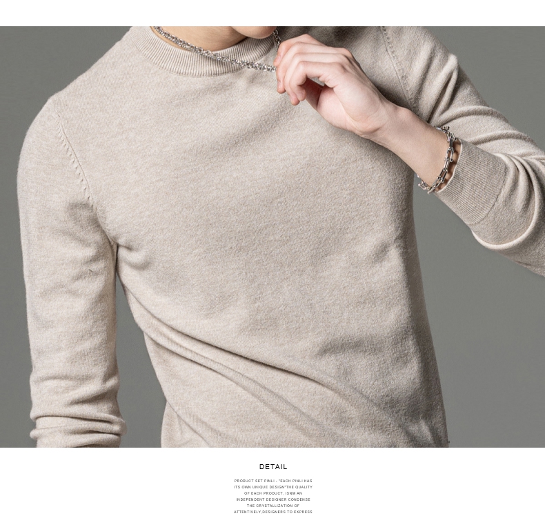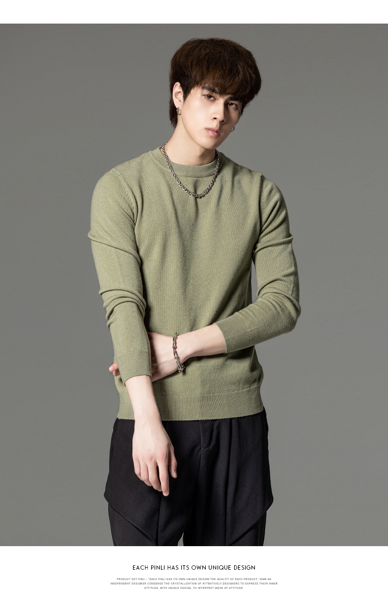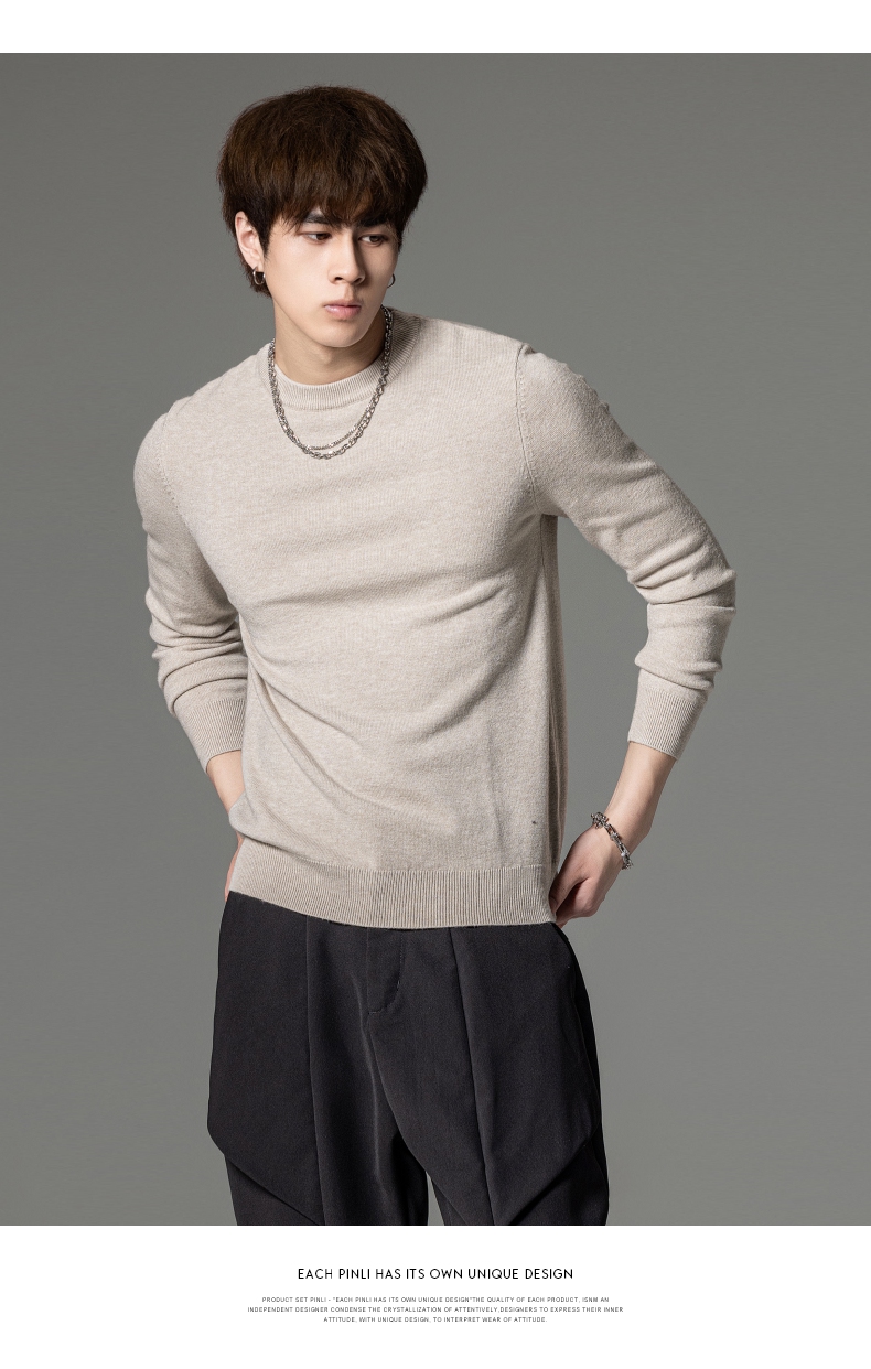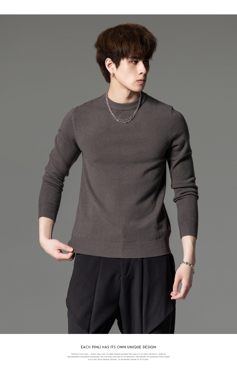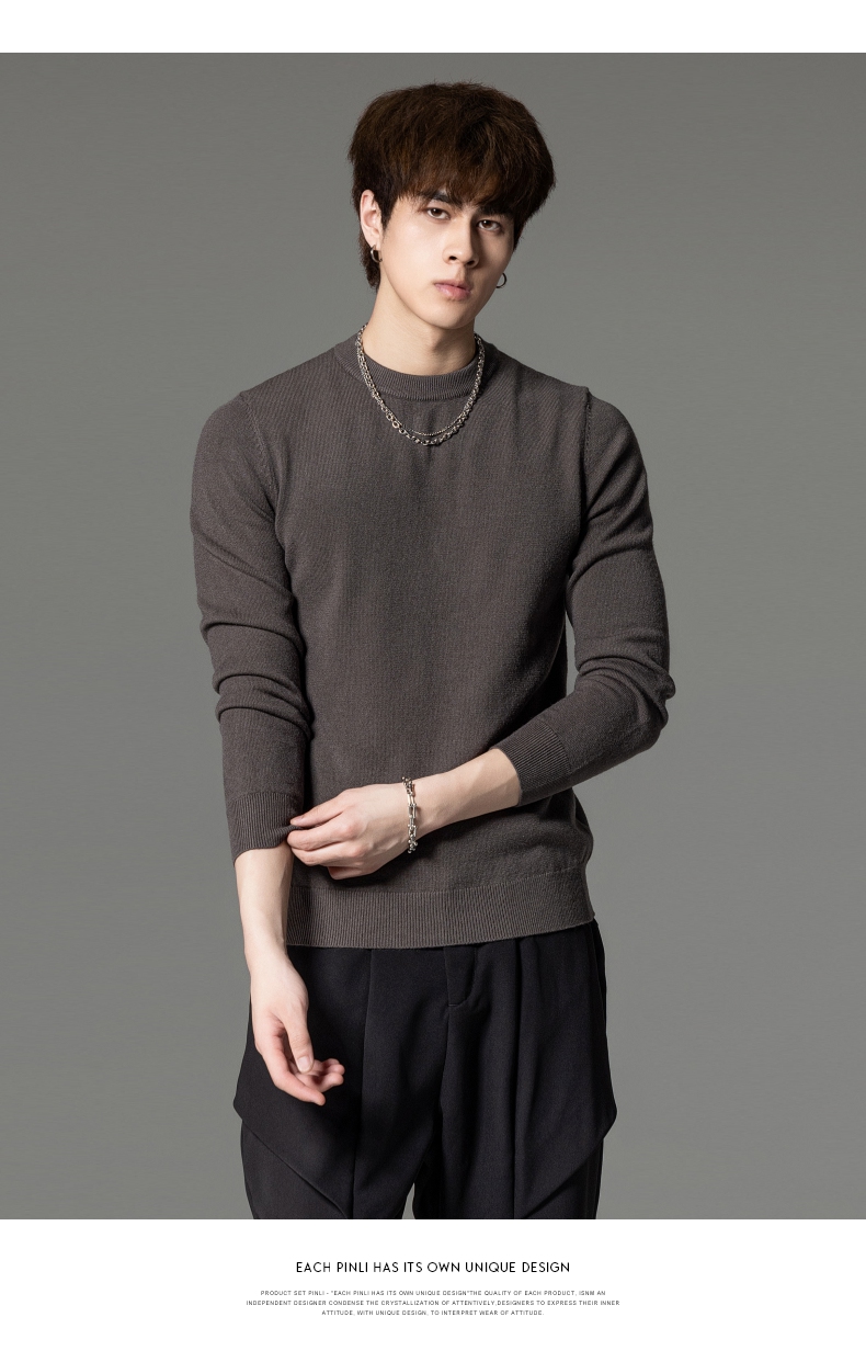 PINLI品立秋季新款男圆领长袖套头针织衫打底毛衣GD233210117