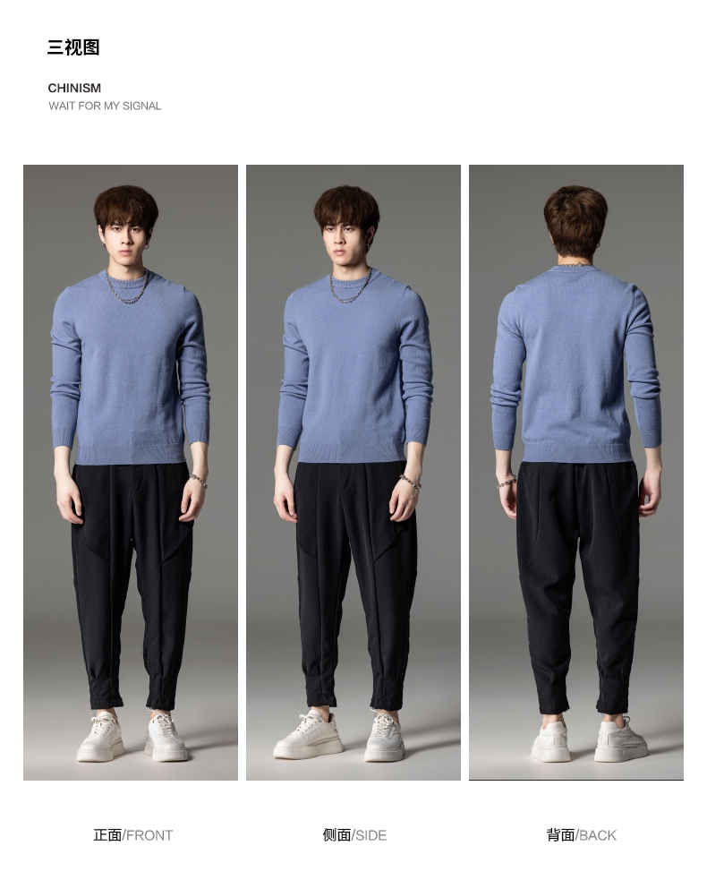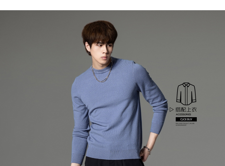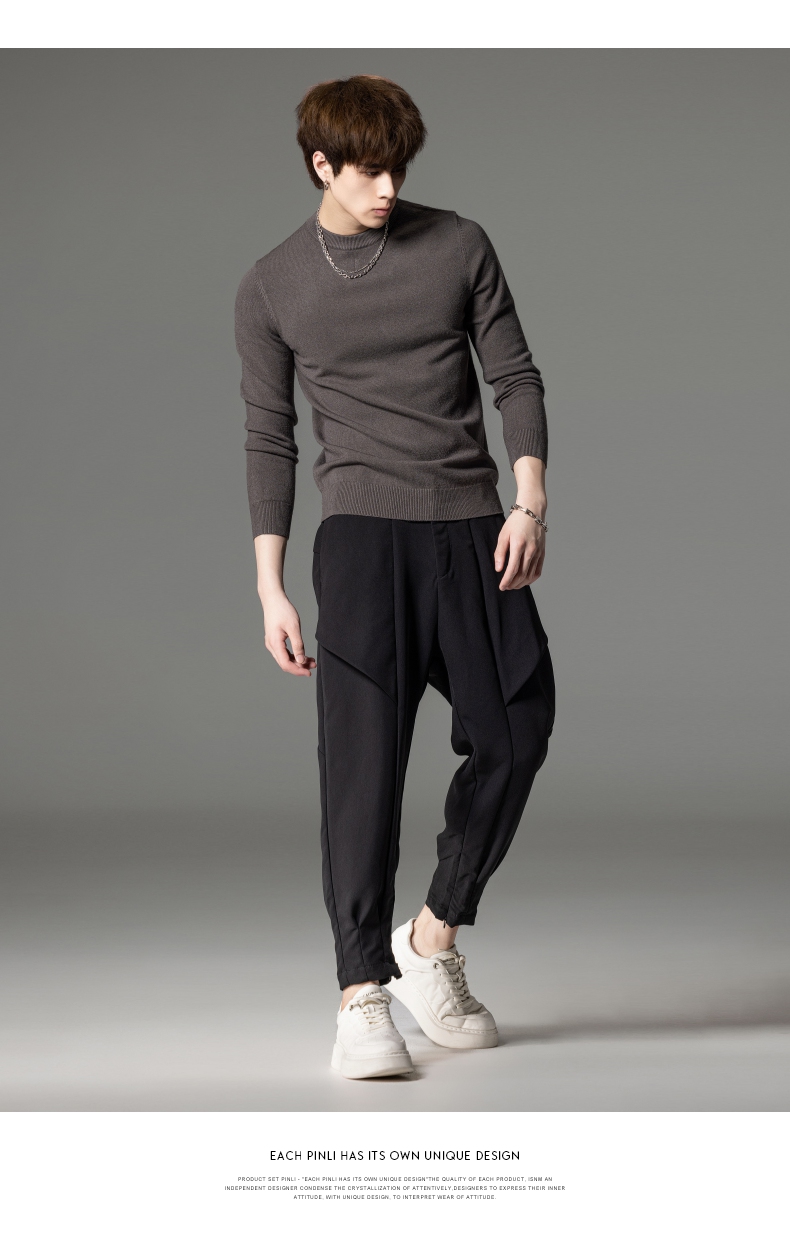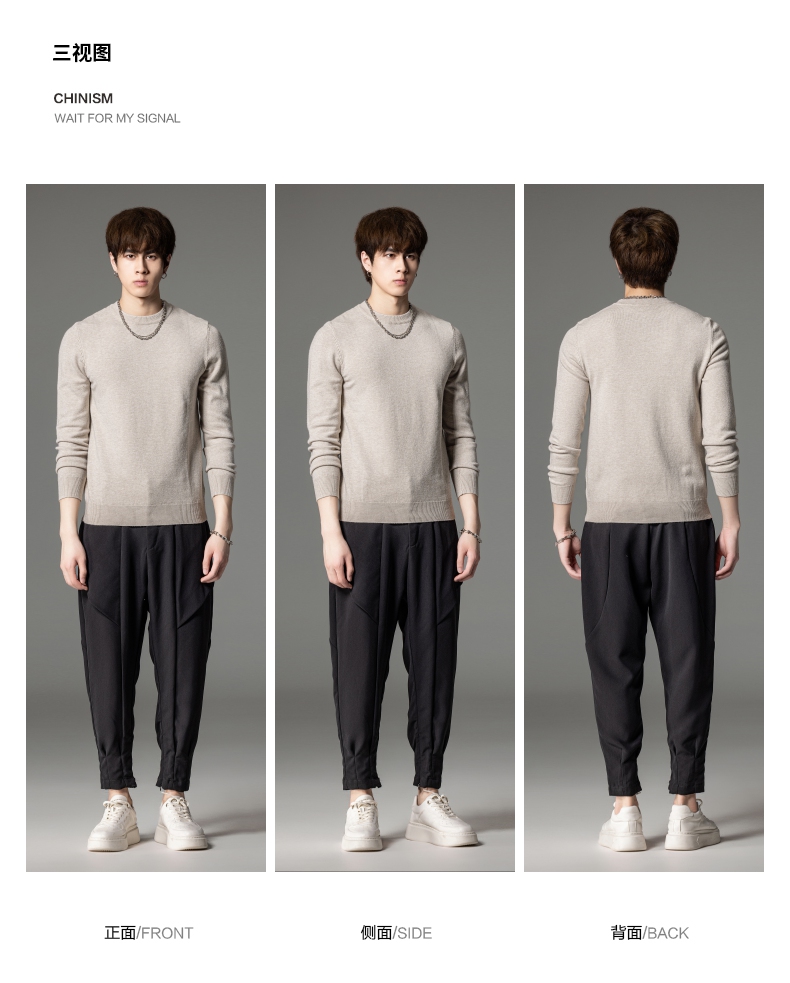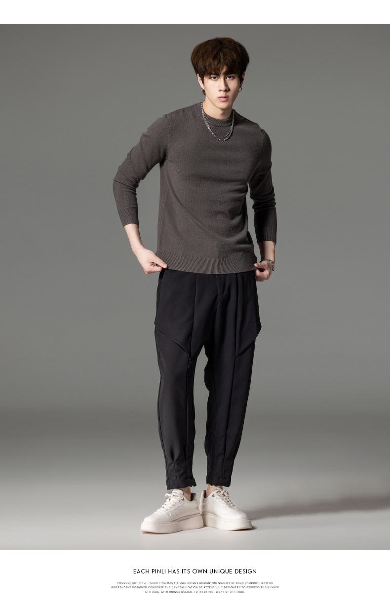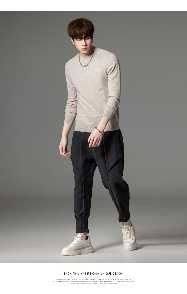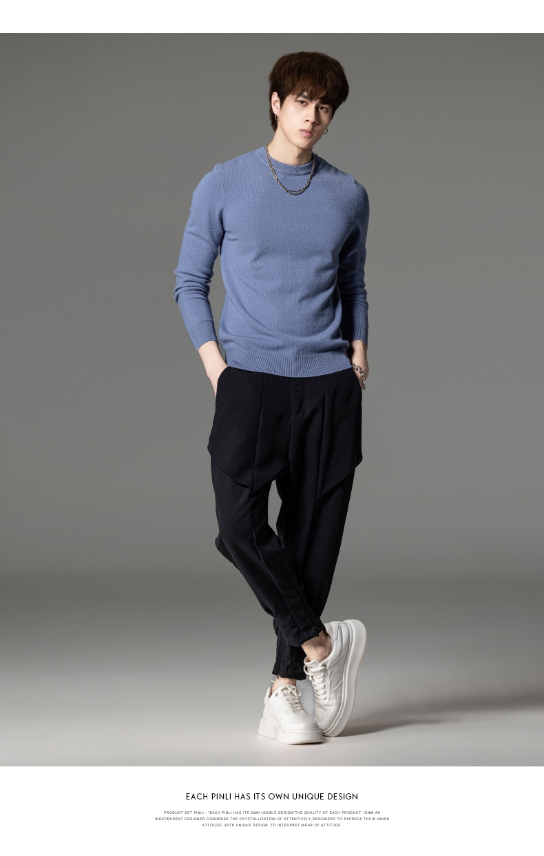 PINLI品立秋季新款男圆领长袖套头针织衫打底毛衣GD233210117