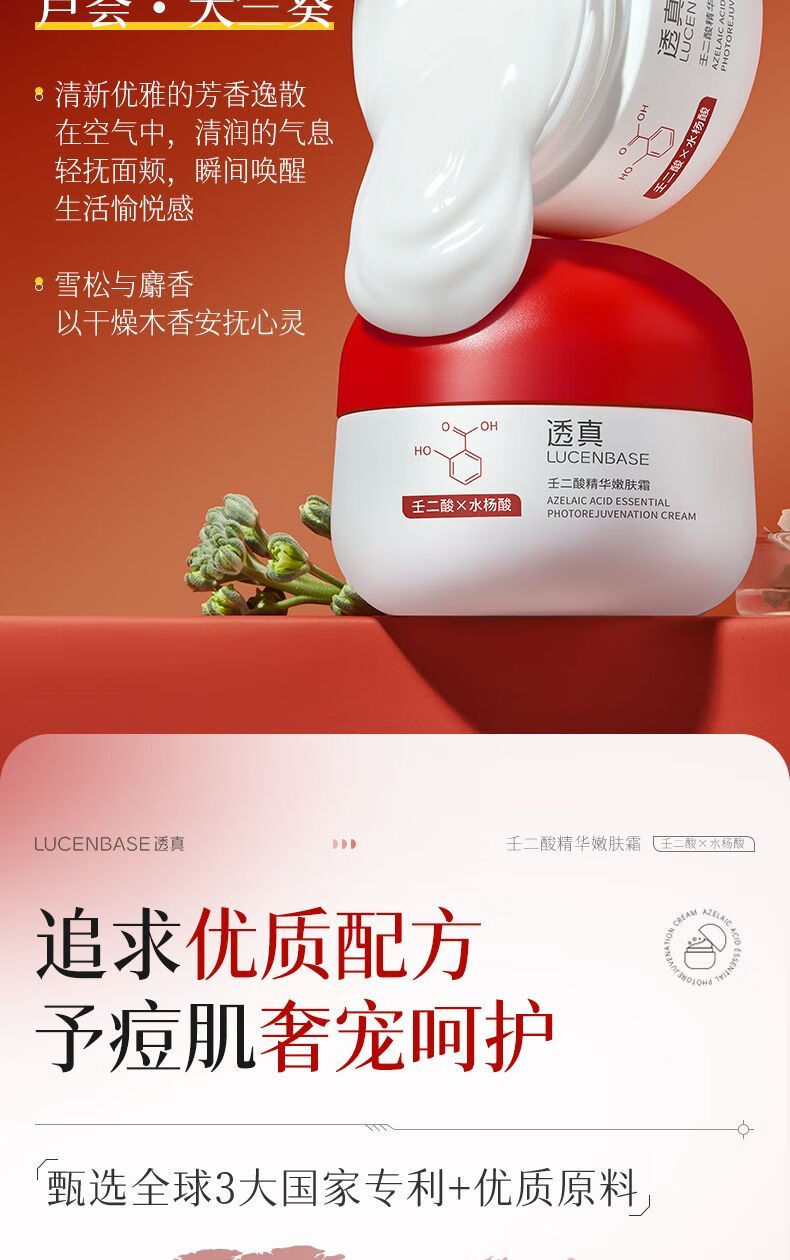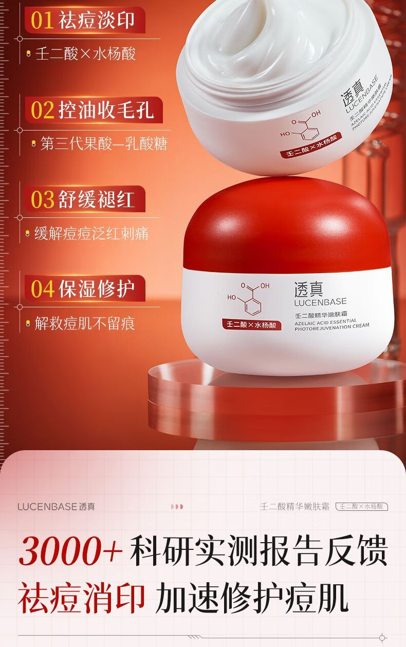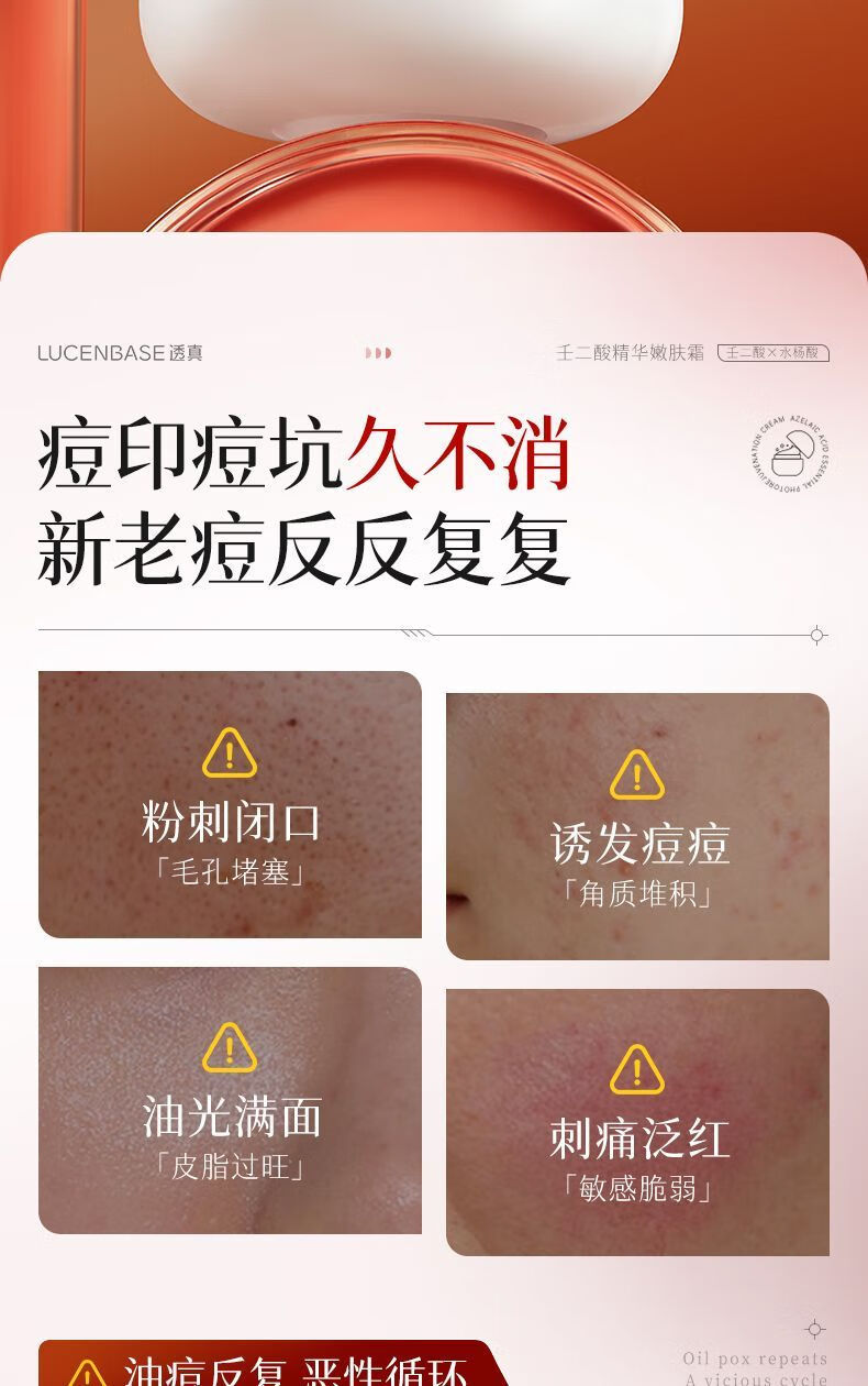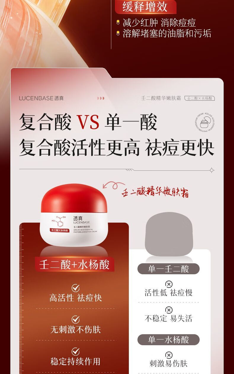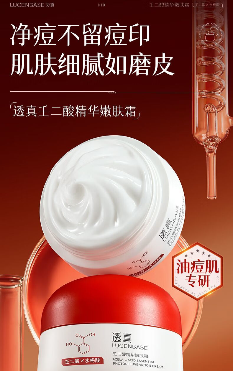 【肌肤无”痘”留 净澈黑头0毛孔】透真壬二酸精华霜祛痘面霜控油去痘印粉刺黑头保湿舒缓收缩毛孔女 [祛痘淡印]壬二酸精华霜50g