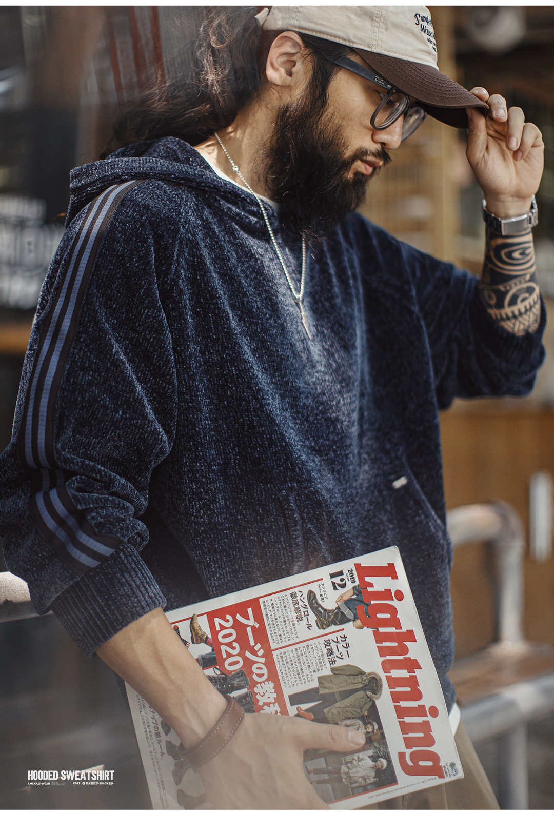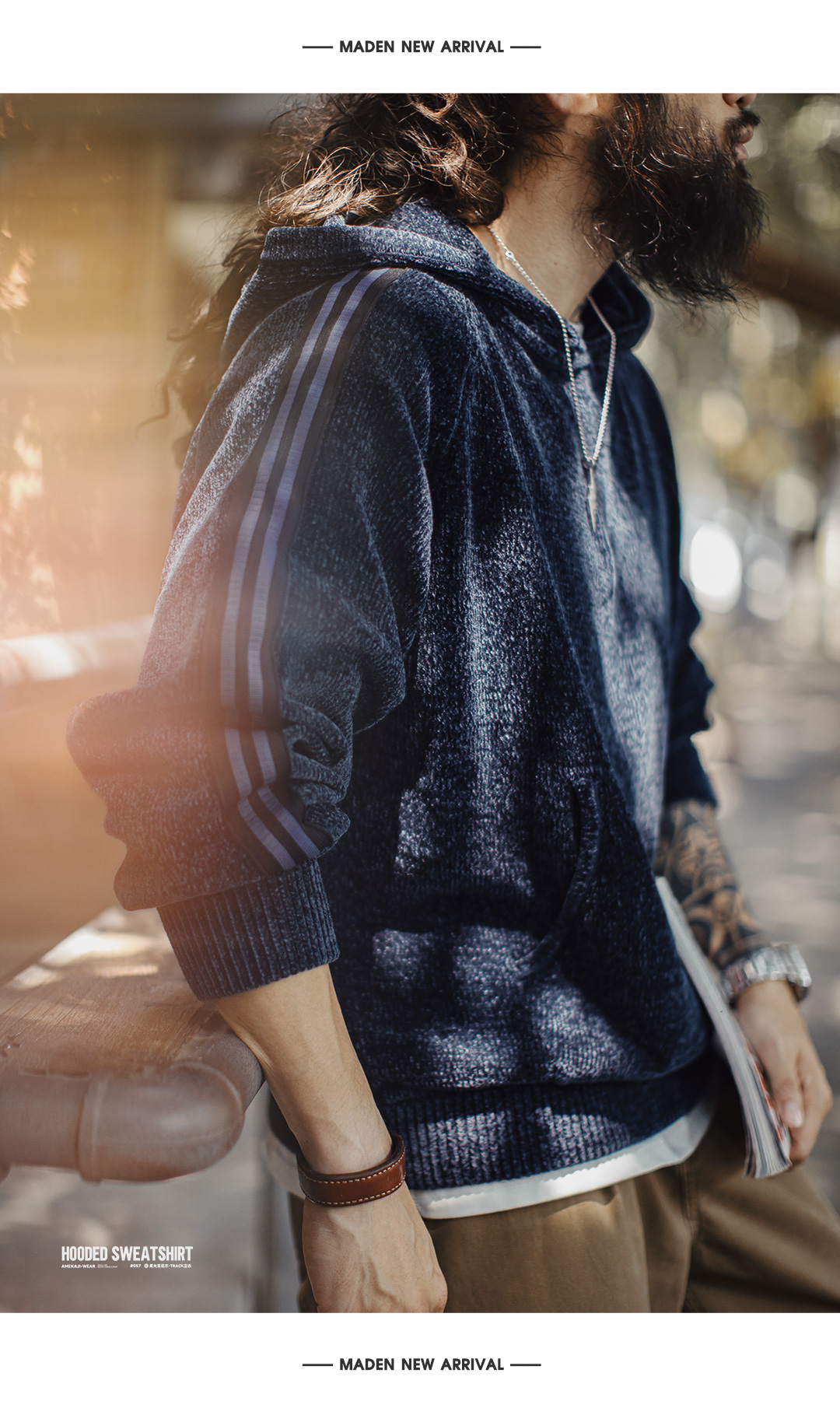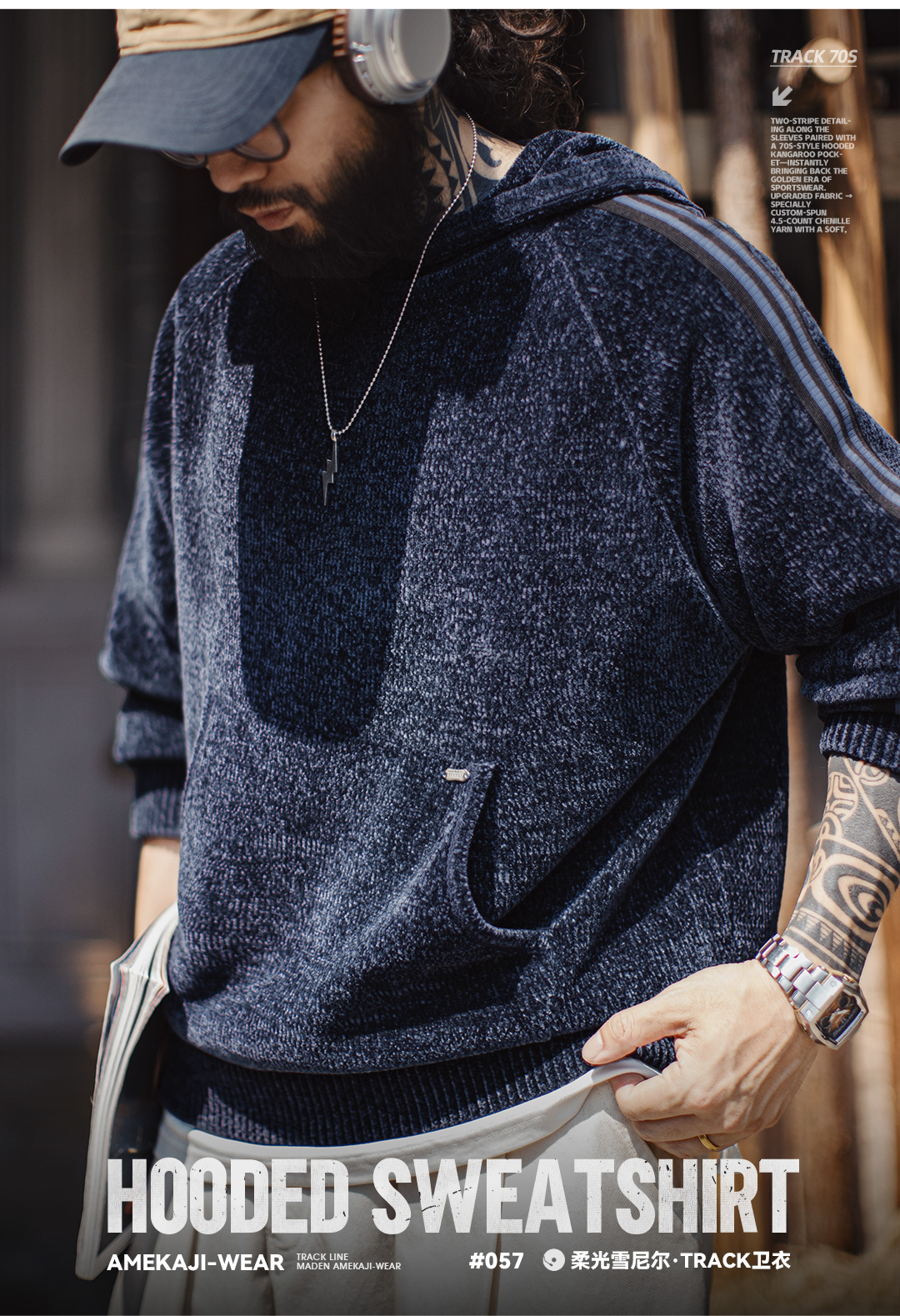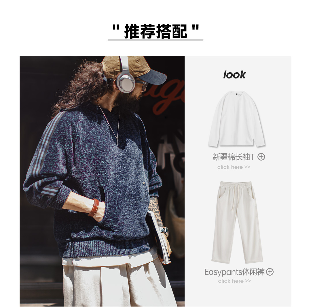 马登工装美式雪尼尔连帽卫衣套头复古保暖灯芯绒加厚帽衫外套男冬