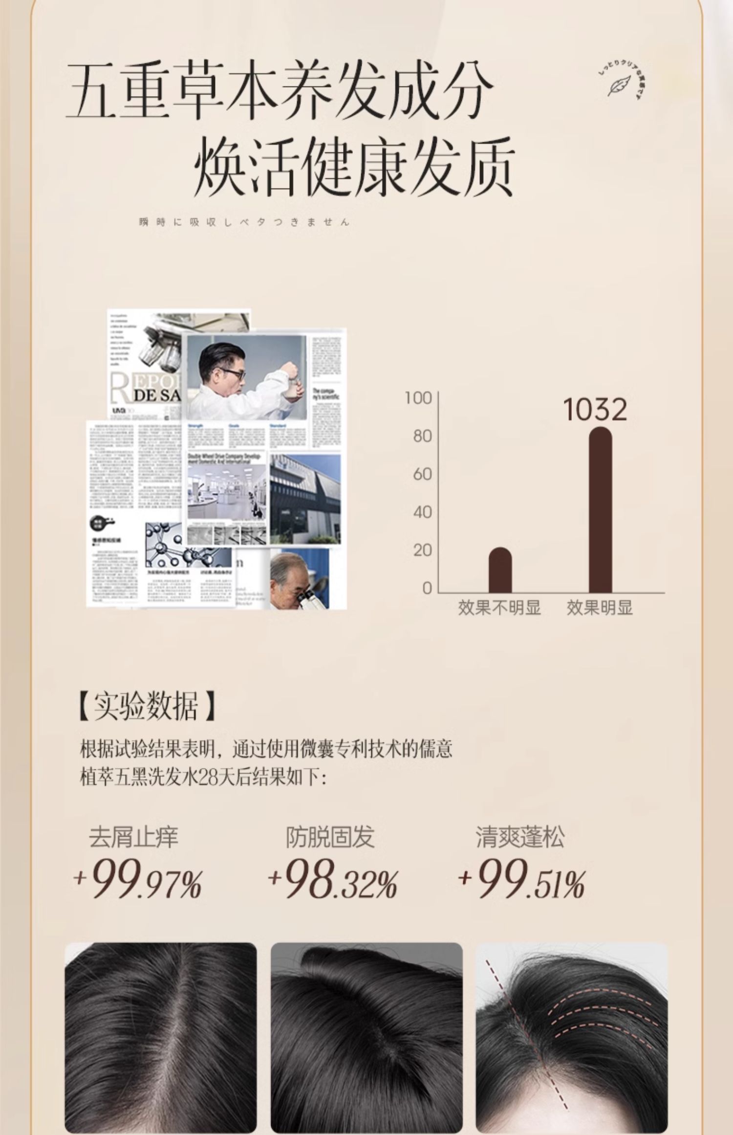 添加侧柏叶提取物(专利号:ZL201811534385.4),帮助疏通毛孔,改变毛囊血液供应的情况,让秀发有个强韧的“地基”。
