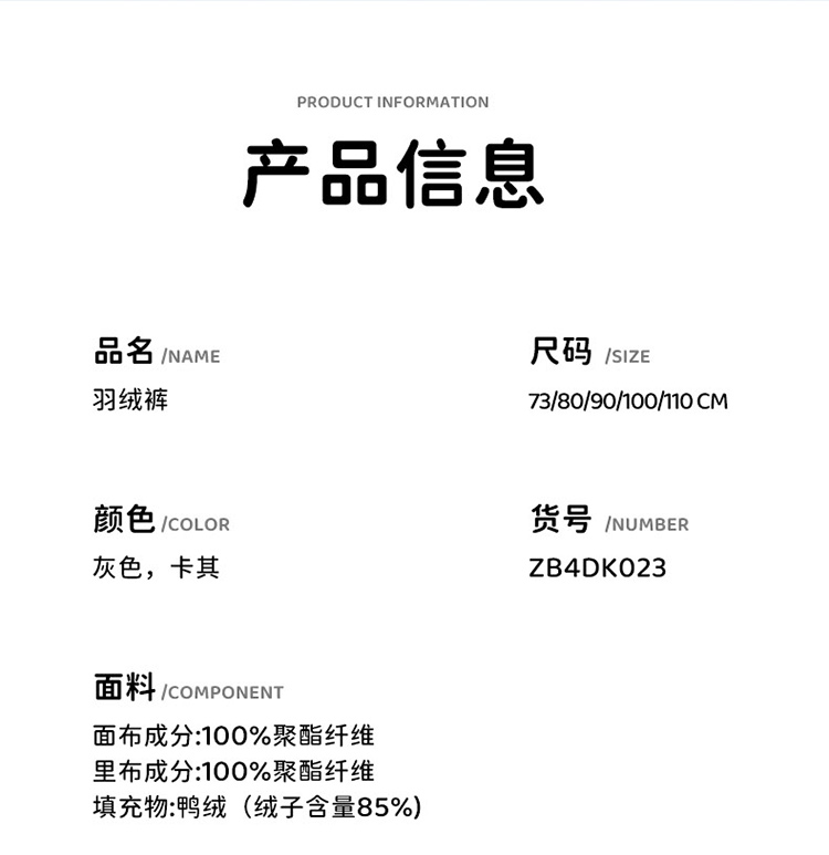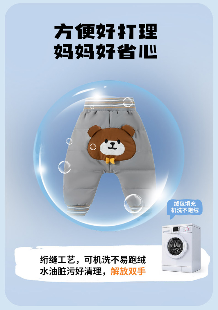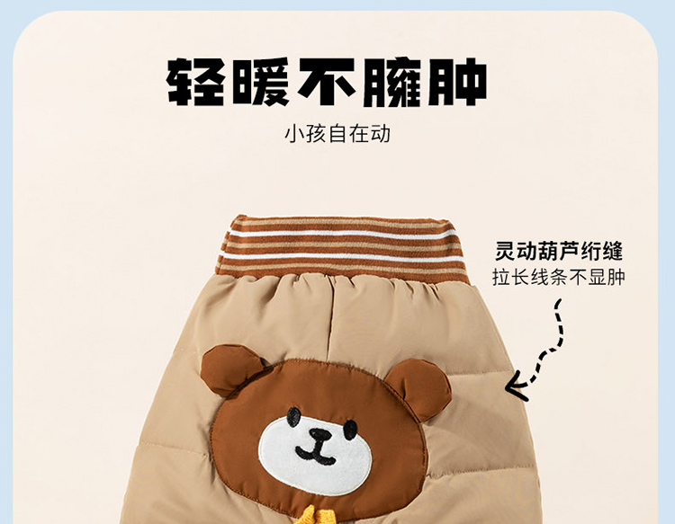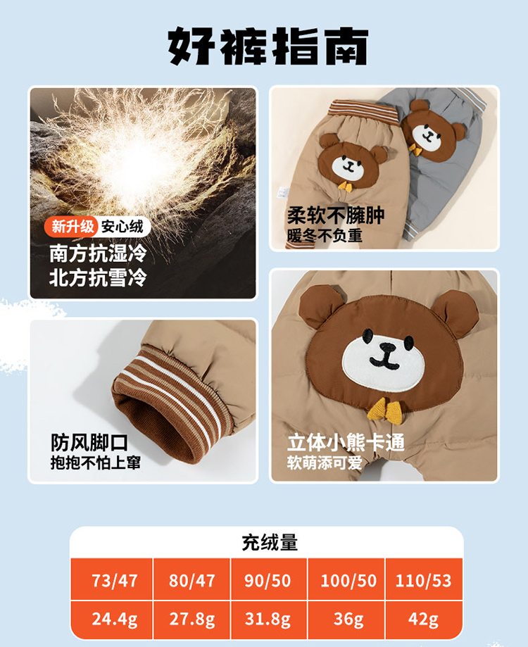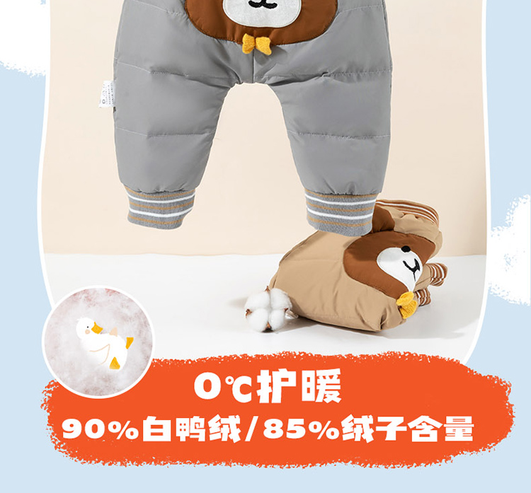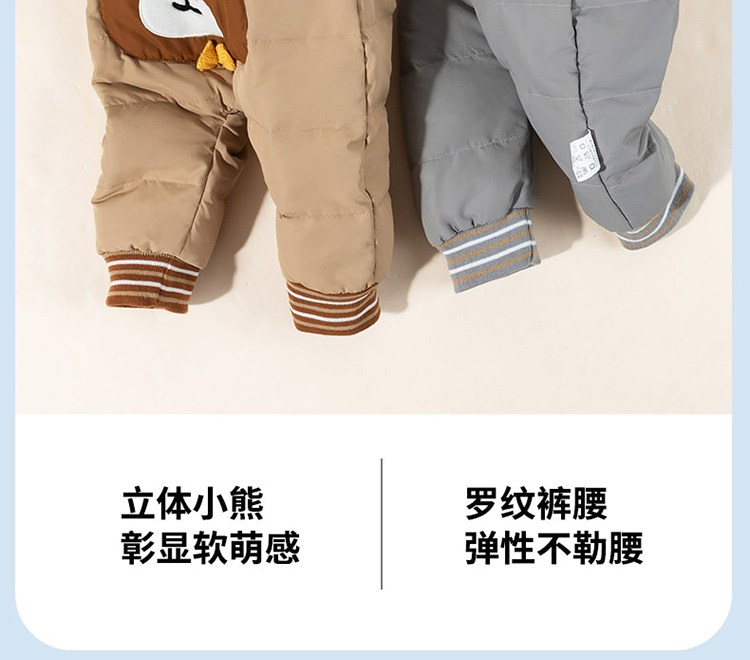 贝贝怡童装男童羽绒裤冬2024新款儿童大pp裤加厚鸭绒宝宝可爱长裤ZB4DK023