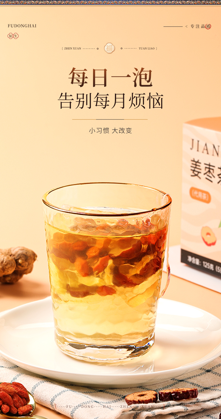 福东海 姜枣茶125克 红枣干姜枸杞滋补暖身女性养生 大姨妈宫姜花茶气三宝煲汤血寒姜茶 25袋送女友