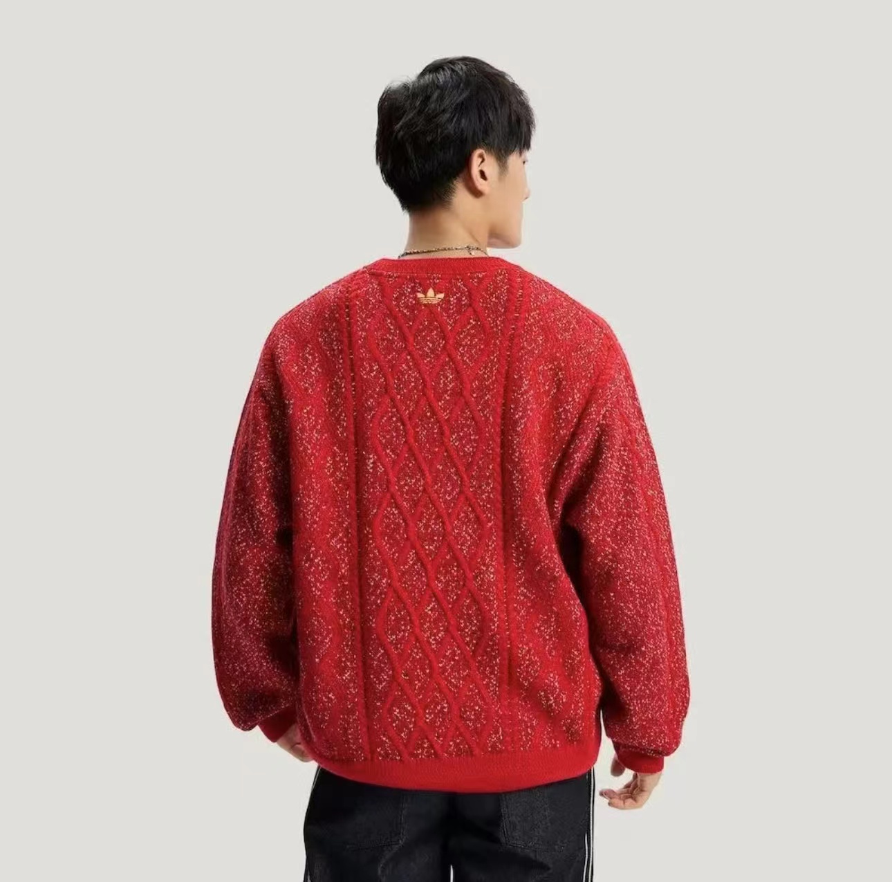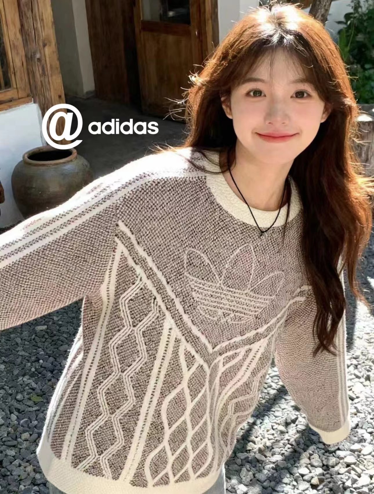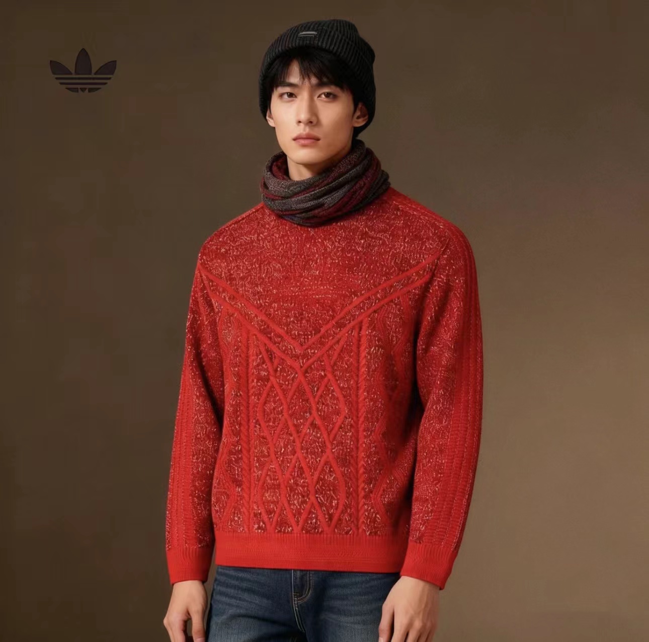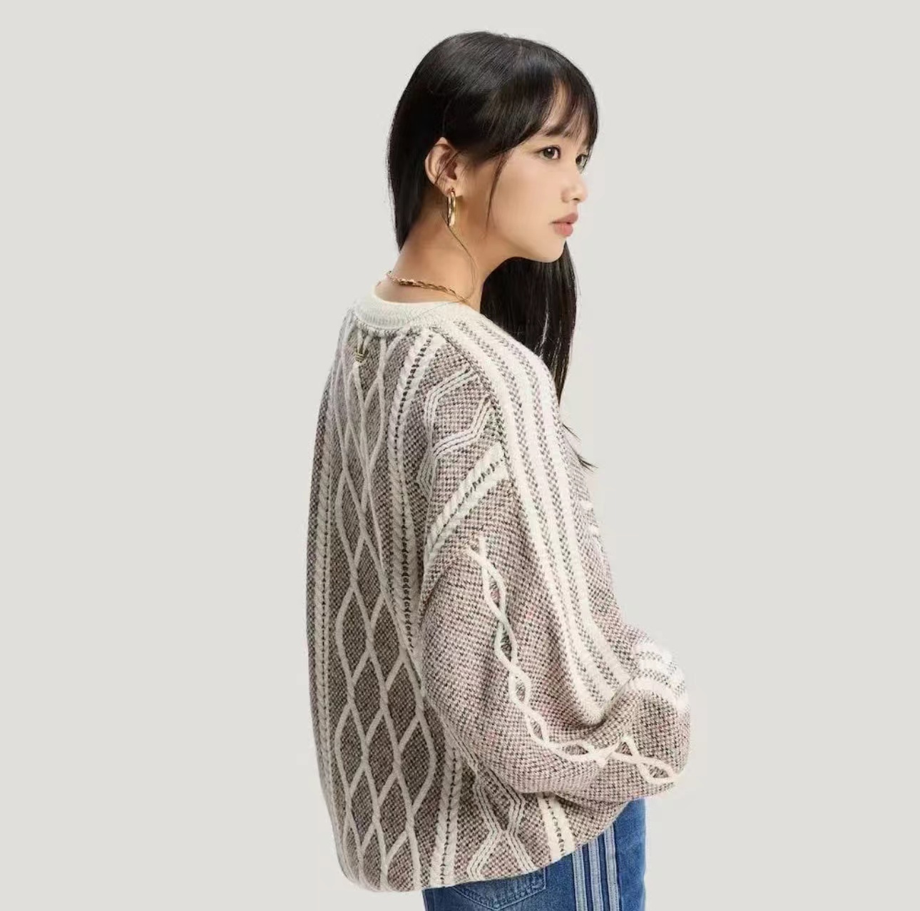 新款新年何与同款针织衫套头撞色提花针织毛衣,以几何线条提花与宽松慵懒版型,打造秋冬兼具艺术感与松弛感的百搭单品。波浪纹提花交织出抽象艺术感,视觉层次丰富。领口、袖口和下摆的米白色罗纹包边形成柔和撞色,肩袖处的条纹元素强化了复古休闲属性。宽松落肩的oversize版型对身材包容度高,慵懒随性还能修饰身形。采用华夫格纹理针织面料,触感软糯亲肤,保暖性与舒适度兼备,适合深秋及初冬穿着。单穿可打造艺术感松弛风,叠穿夹克或大衣也能增加层次。搭配牛仔裤、阔腿裤或半裙都很出彩,无论是日常通勤、艺术看展还是周末出街,都能轻松营造温柔又时髦