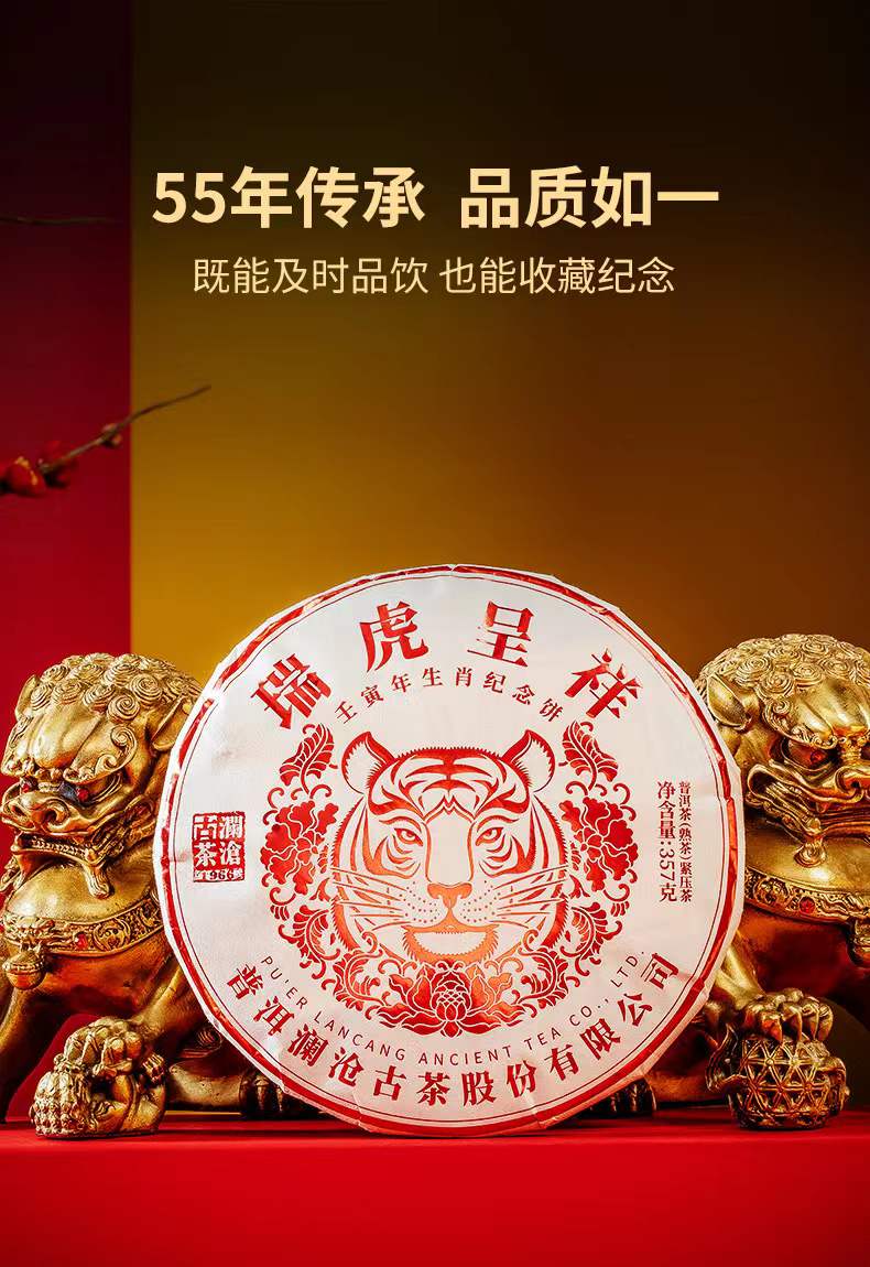 2021年澜沧古茶瑞虎呈祥熟茶虎年生肖纪念茶饼357g/片
