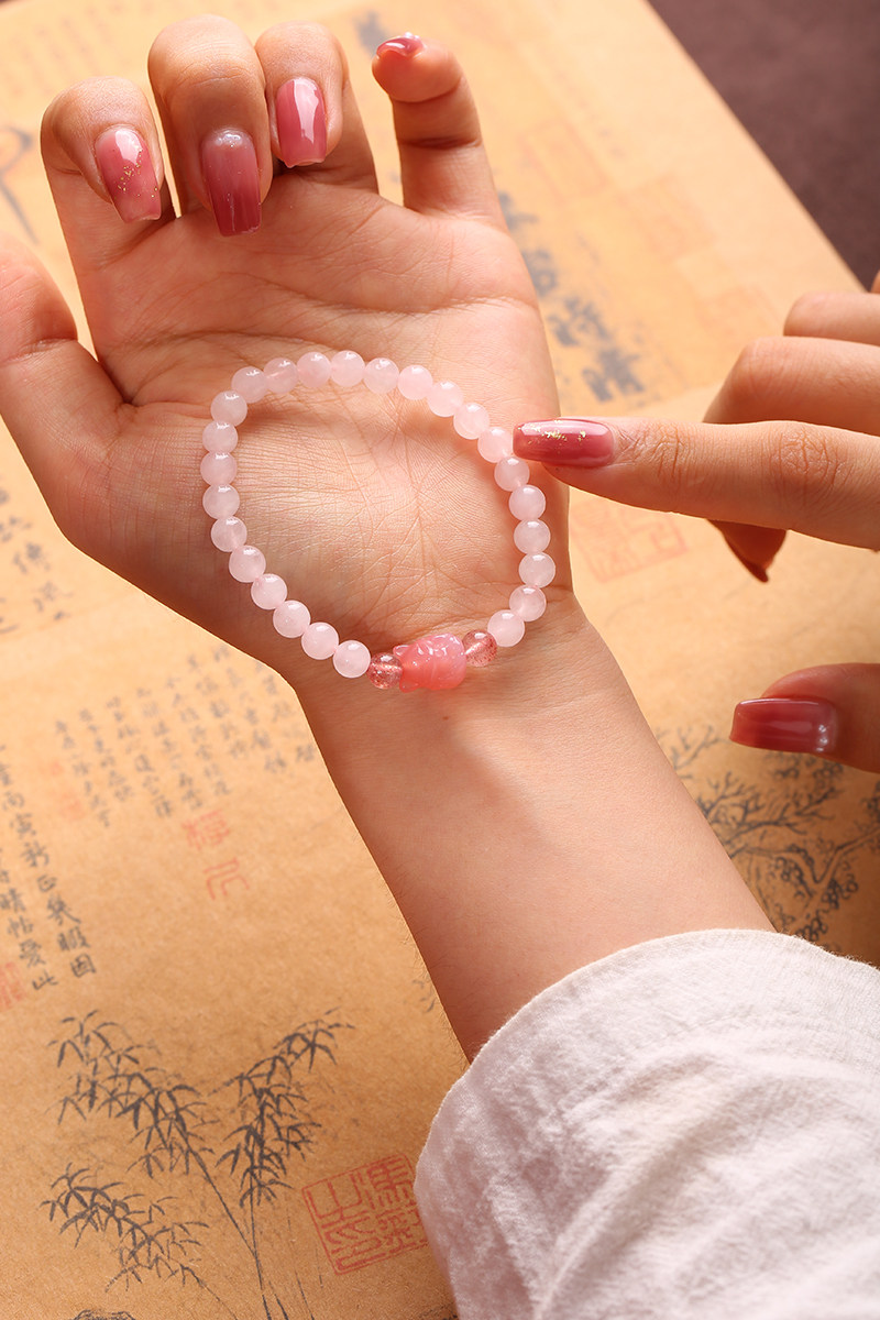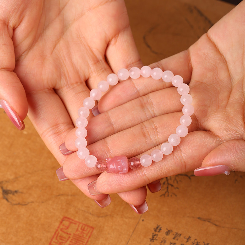 【祈愿吉品】狐狸粉水晶玛瑙手链女
