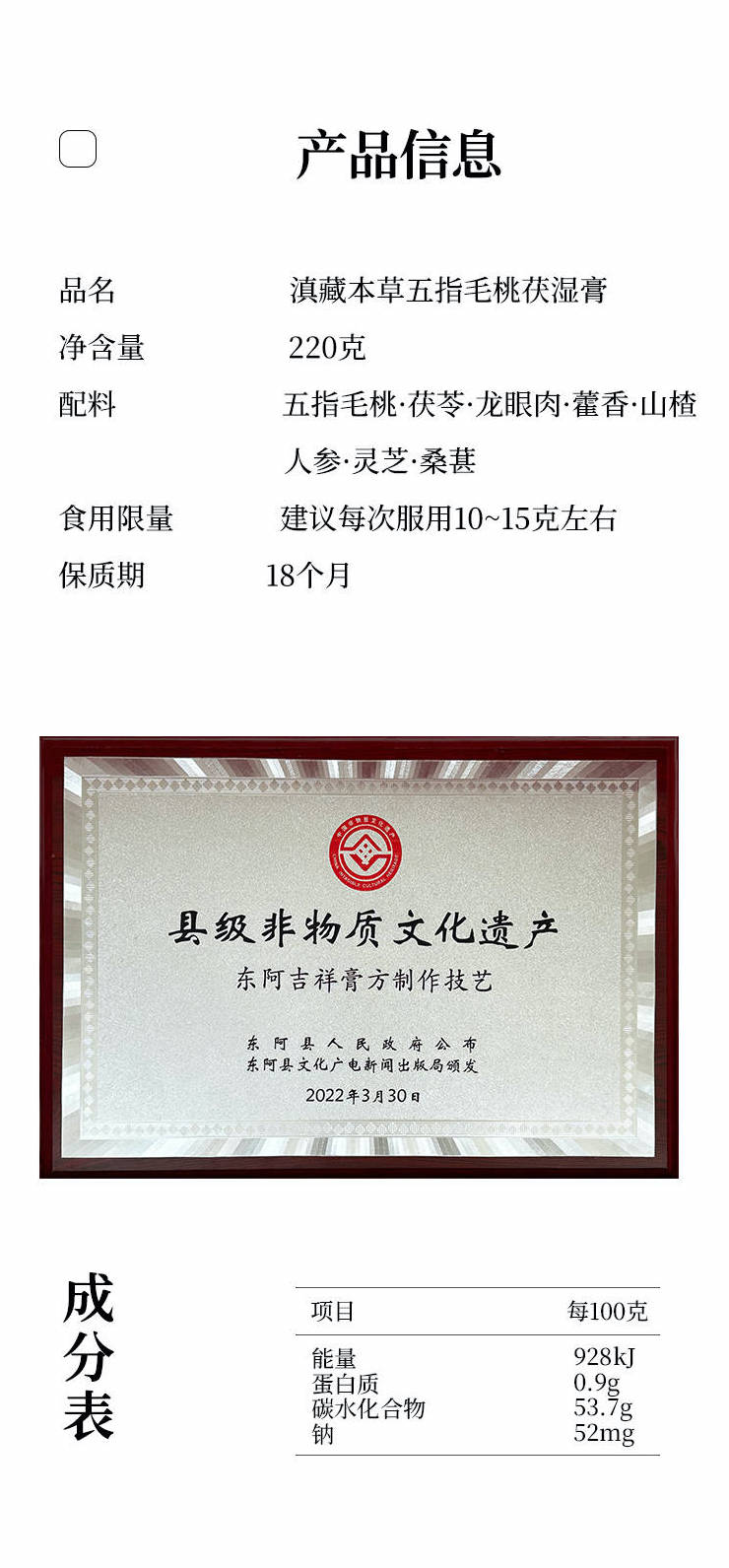 6.11上架【非物质文化遗产】 五指毛桃茯湿膏 非物质文化遗产 匠心慢熬 220克/瓶