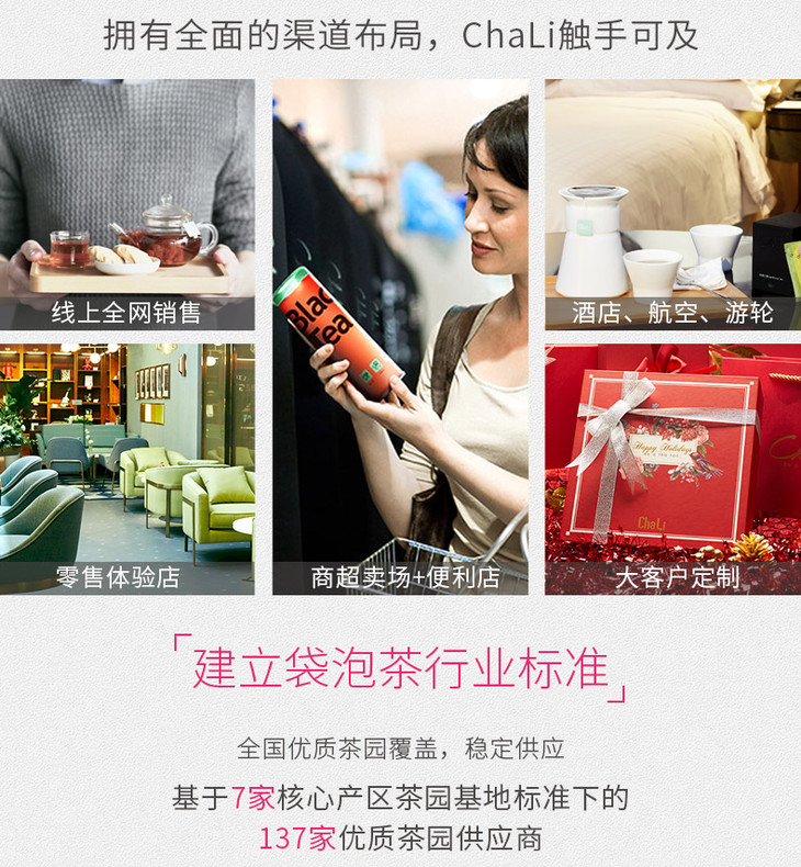 ChaLi茶里是中国袋泡茶第一品牌。坚持做本味中国茶。希望可以让客人在快节奏的生活中,撇除掉繁琐的茶道冲泡工序,用最简单方便的方式品尝到最传统的茶味。