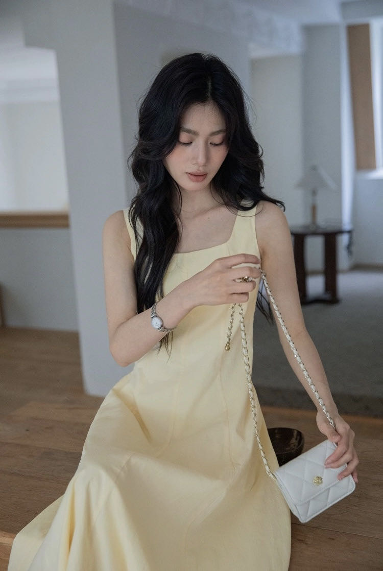 8元退货运费【正品KIAZH法式方领嫩黄色连衣裙】面料不是平纹,自带肌理感,简约又很特别 复古浪漫的方领设计,露肤度刚刚好,视觉上巨显瘦