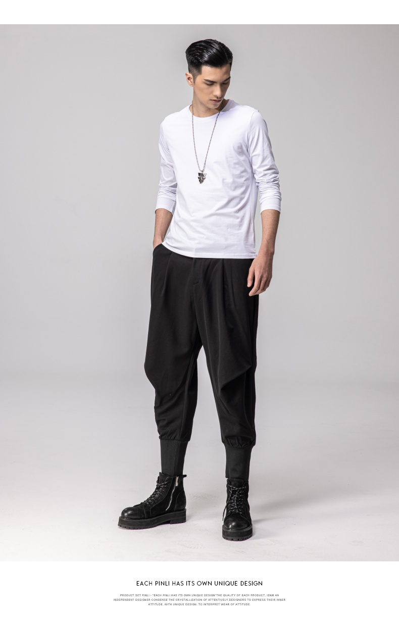 PINLI品立收脚哈伦休闲长裤男装新款高街ins潮B212517360