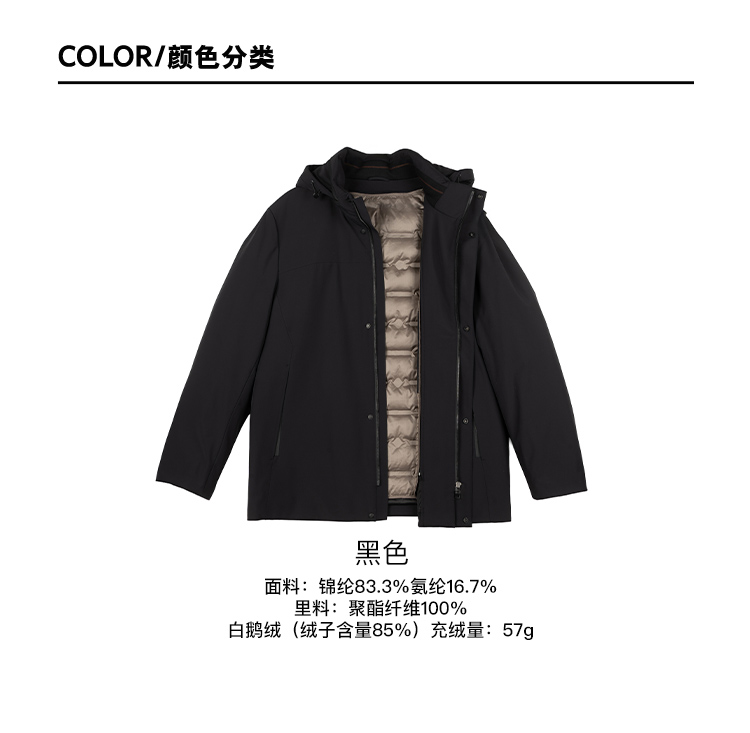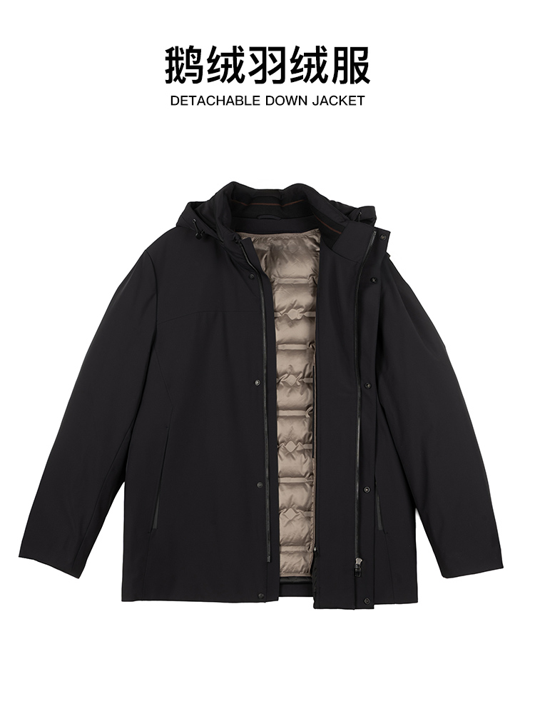 占姆士男士羽绒服冬季轻盈鹅绒保暖外套可拆卸内胆可拆卸连帽2025冬季新款外套
