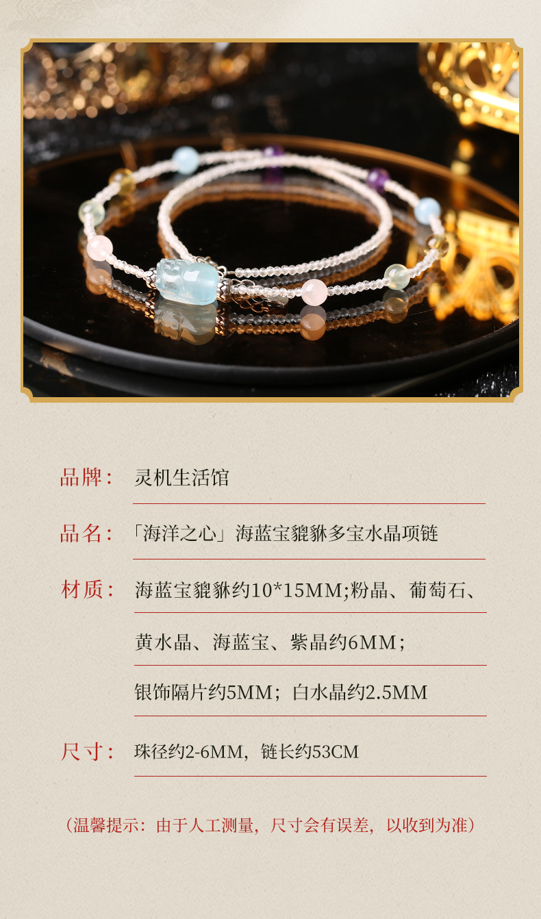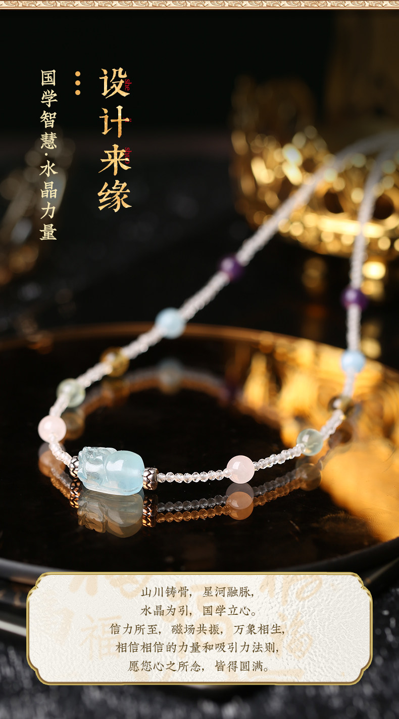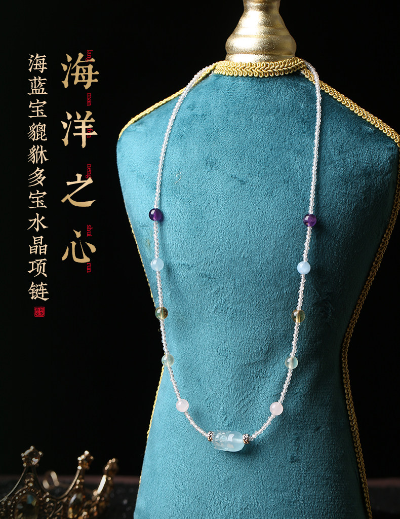 【祈愿吉品】「海洋之心」海蓝宝貔貅多宝水晶项链