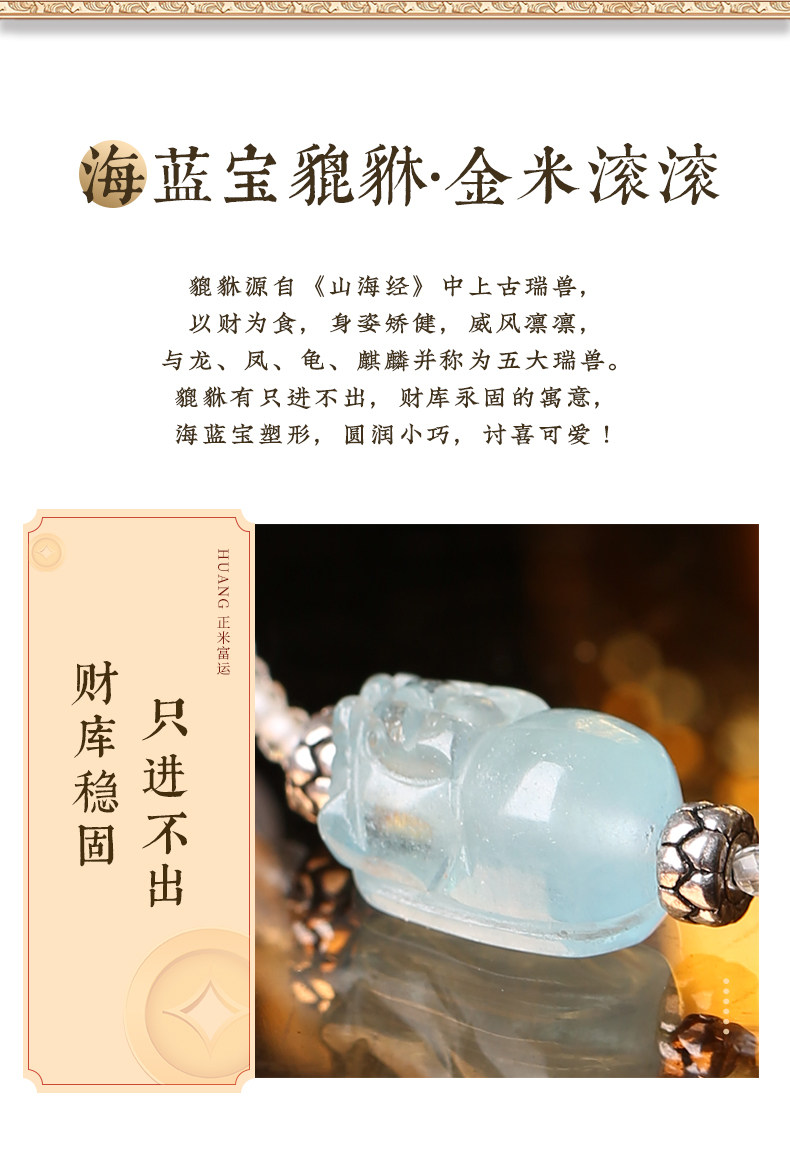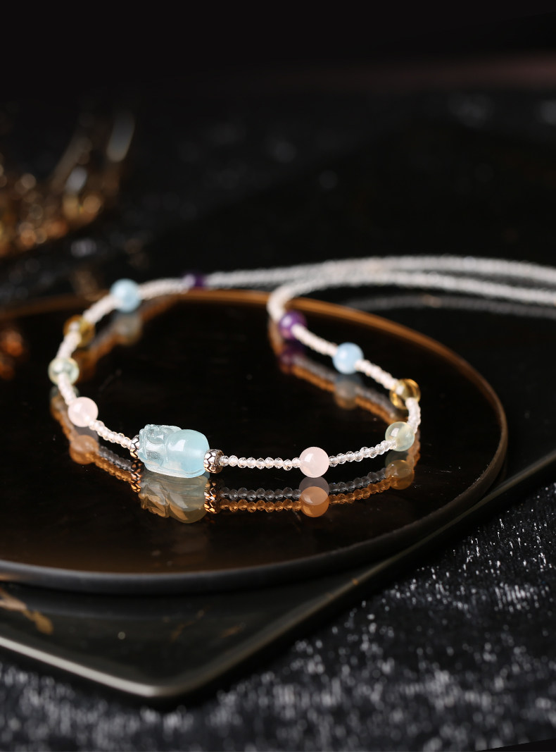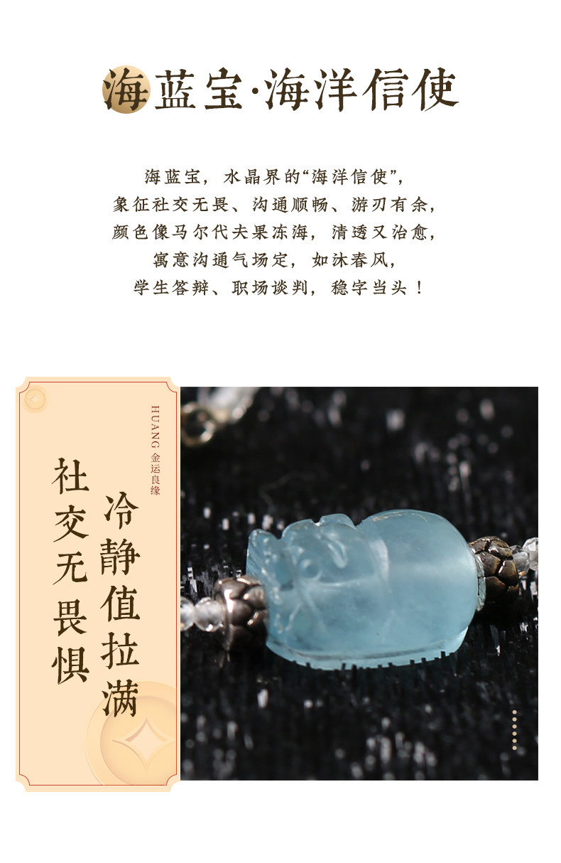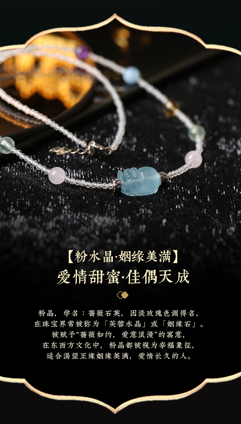 【祈愿吉品】「海洋之心」海蓝宝貔貅多宝水晶项链