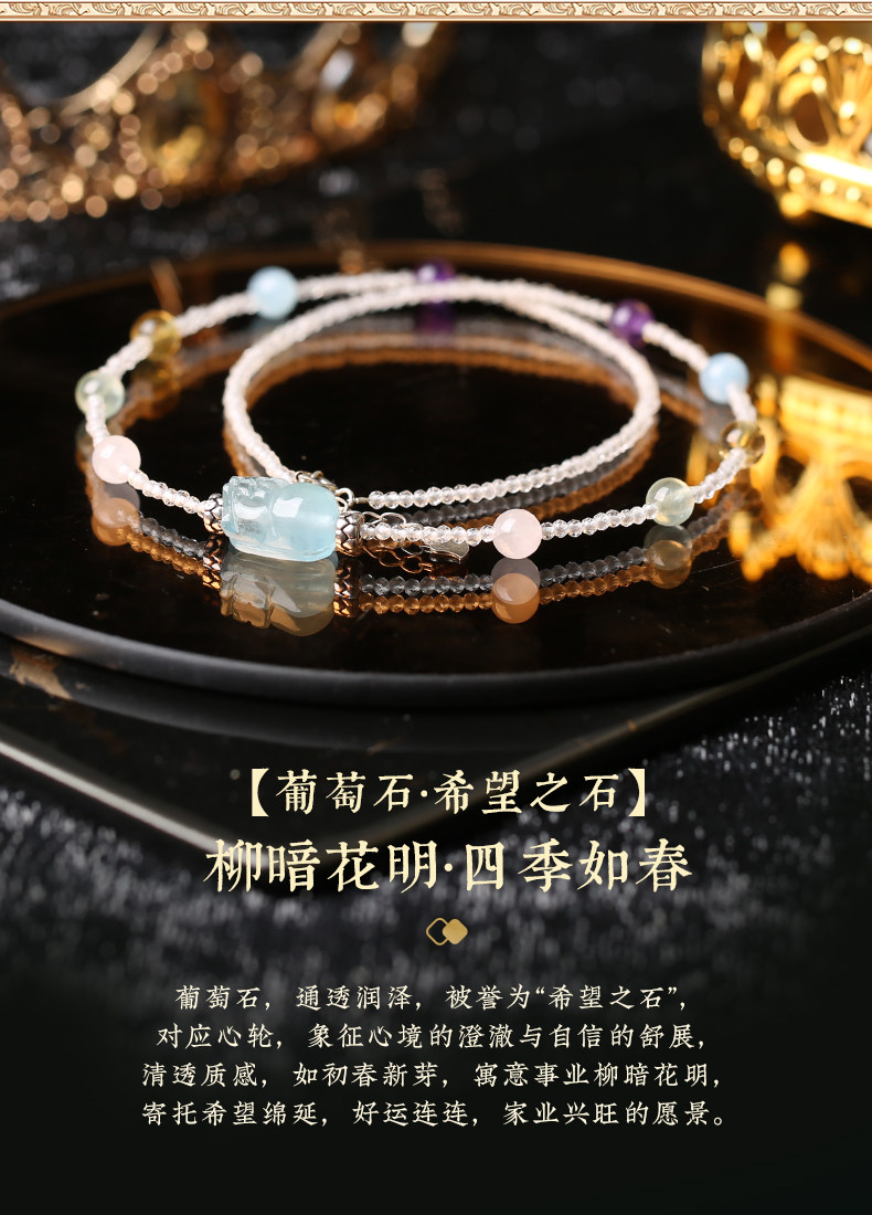 【祈愿吉品】「喜水」海蓝宝白幽灵四方有钱花手链