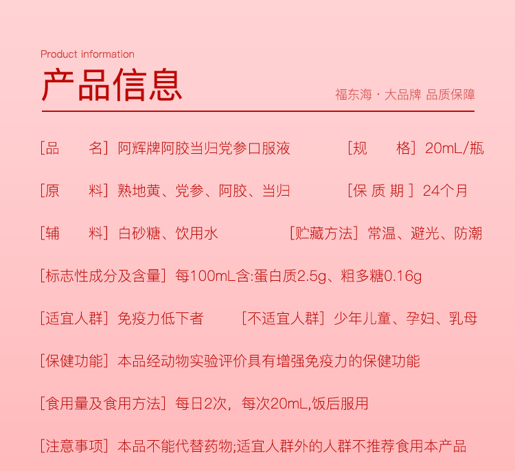 福东海 阿胶当归党参口服液120ml 自用送礼两宜盒装