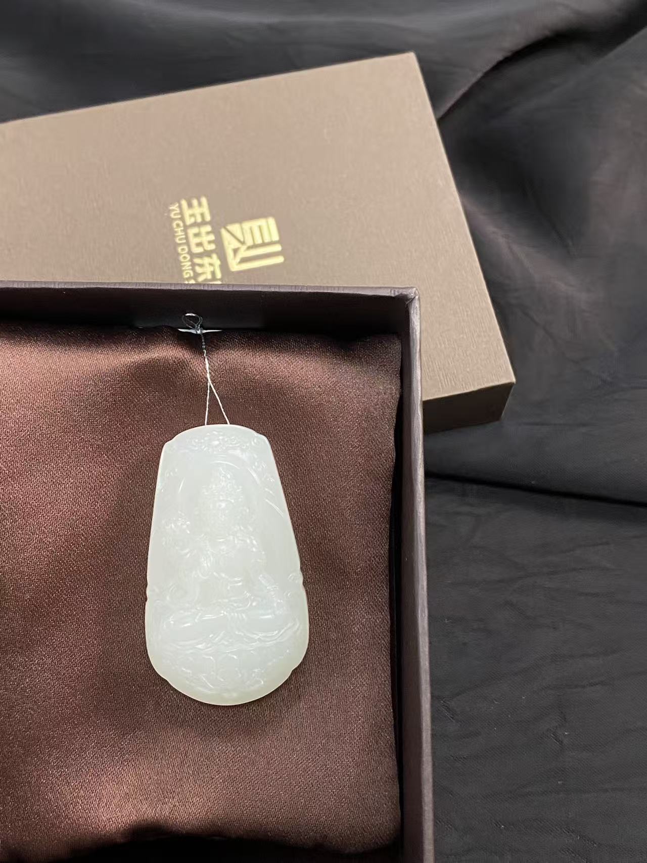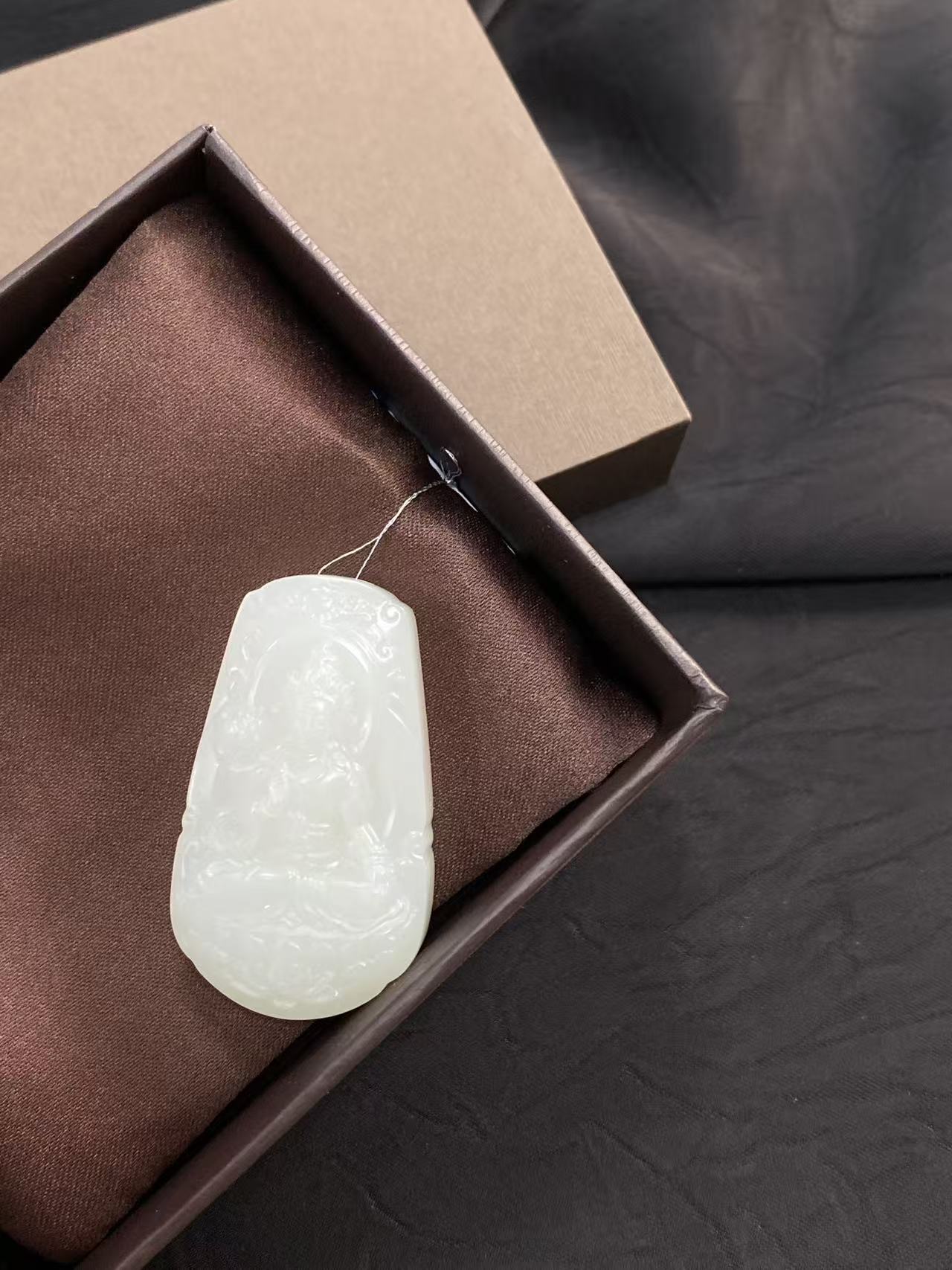 【于田产和田玉羊脂白观音挂件】编号F08527,46*27,26.3克,出证书,发货1~5天,48小时鉴赏期