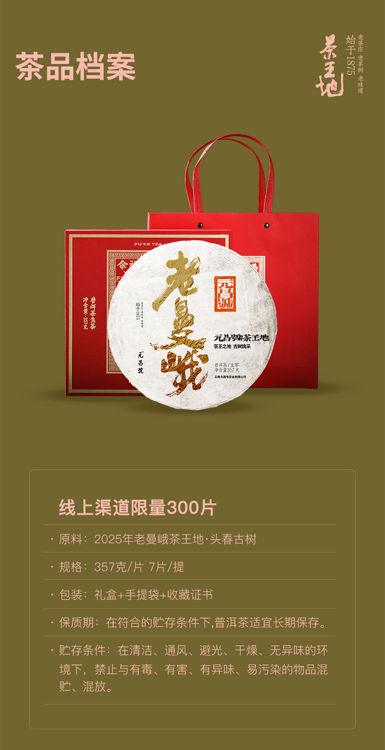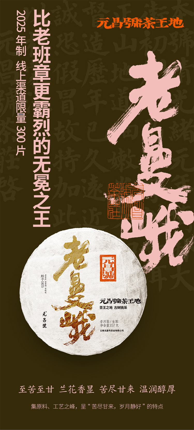 【茶王地系列】元昌号2025年老曼峨古树纯料357克生饼