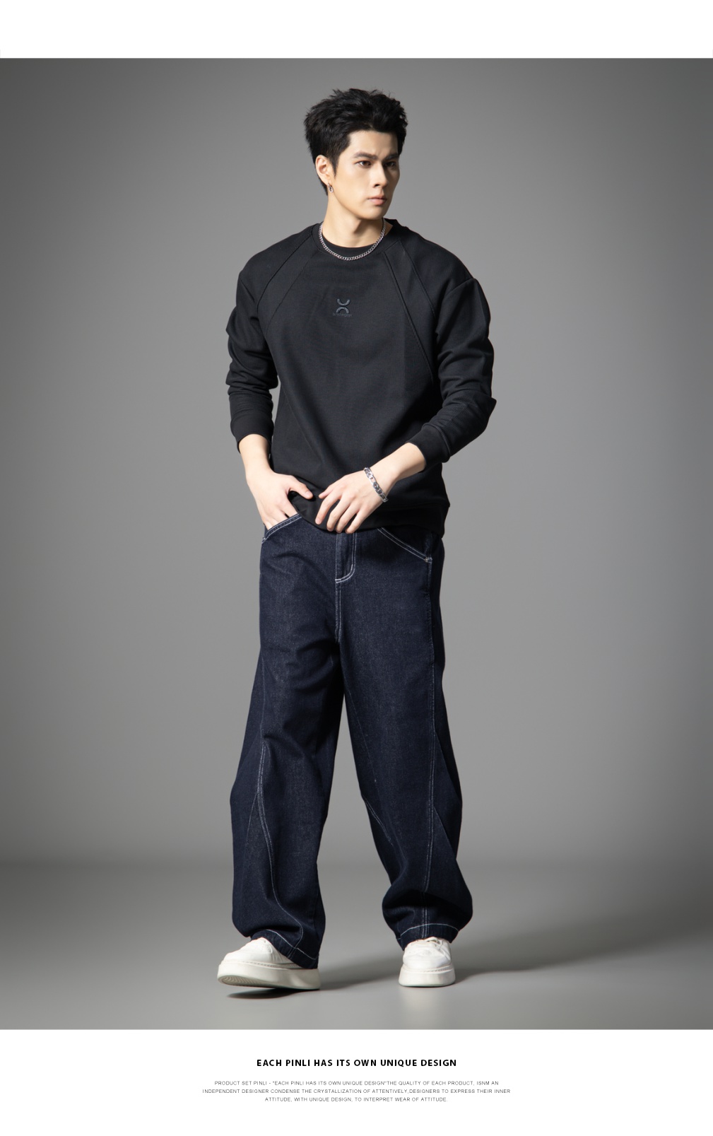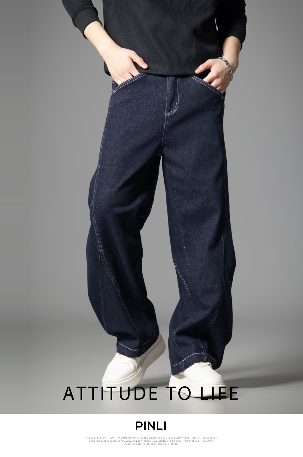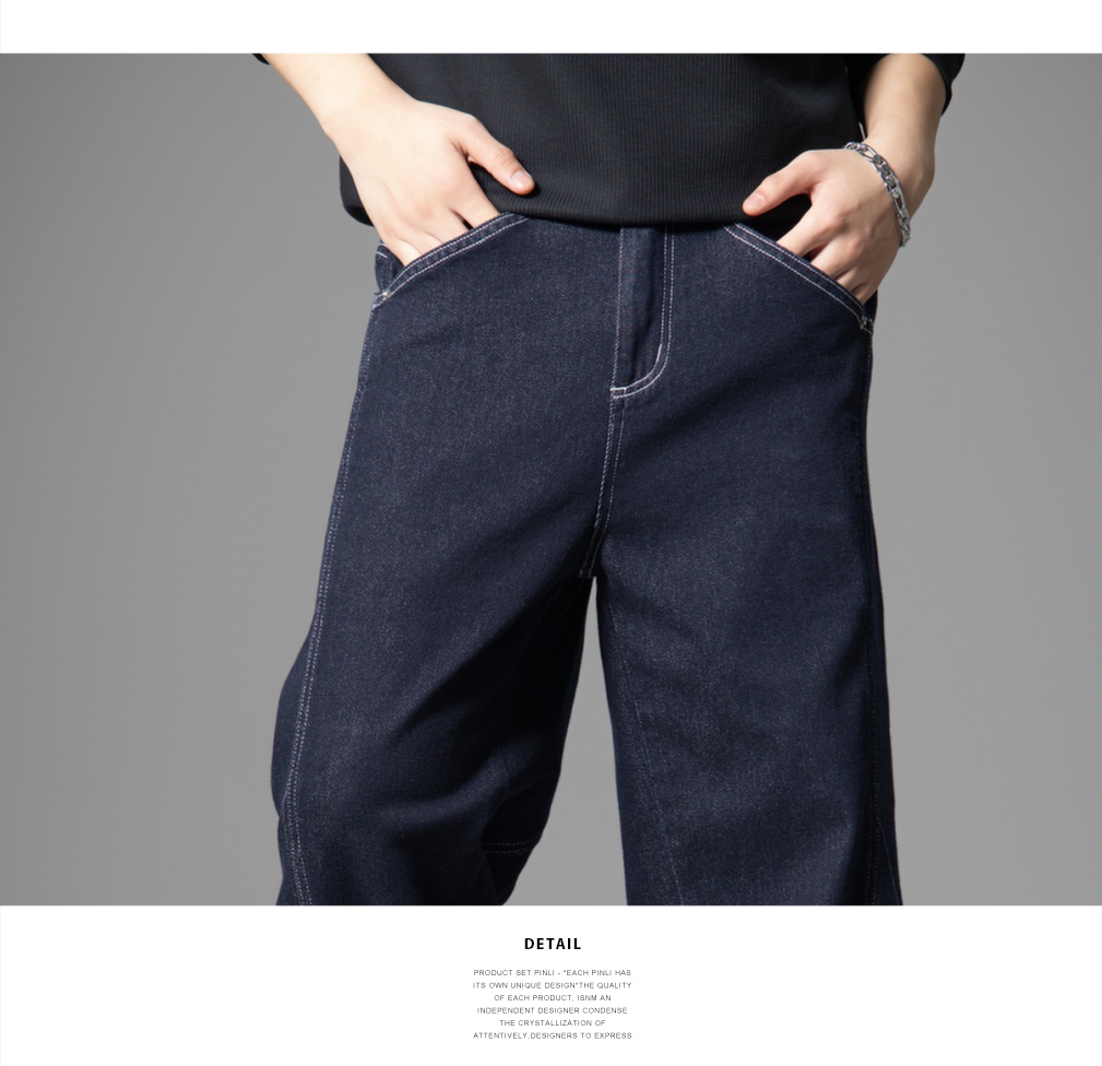 PINLI品立2025新款男士宽松秋季百搭美式高街休闲直筒牛仔长裤潮GD253116125