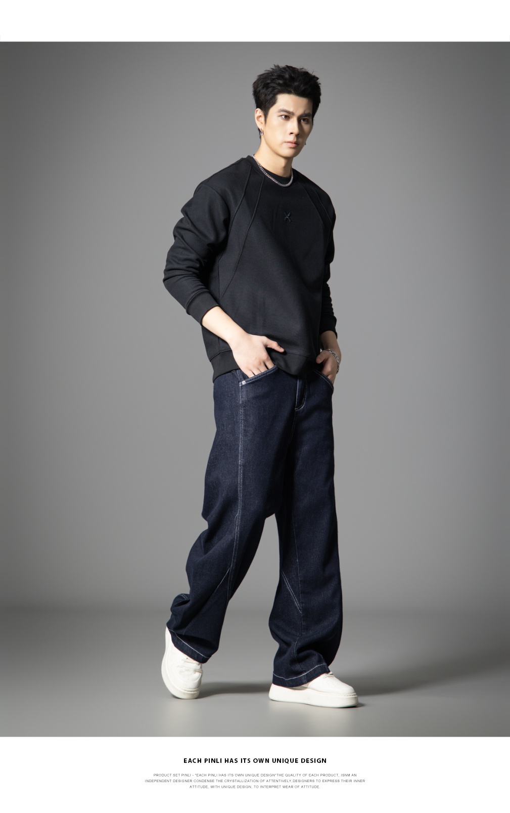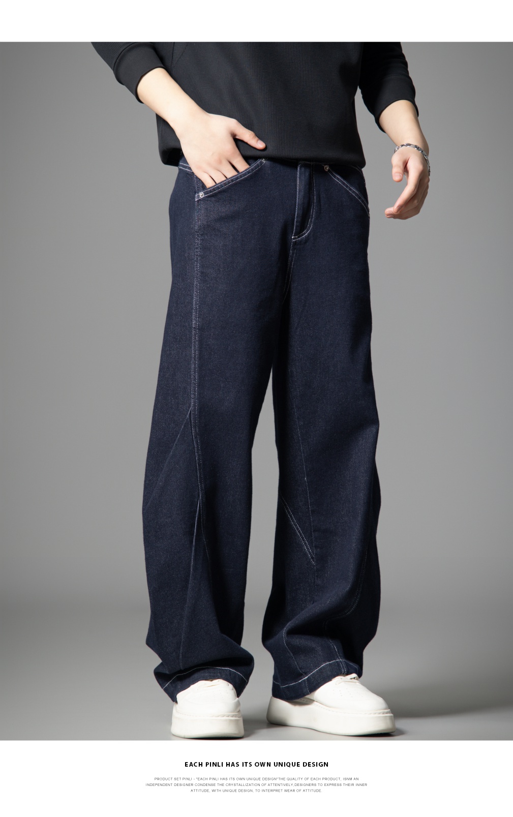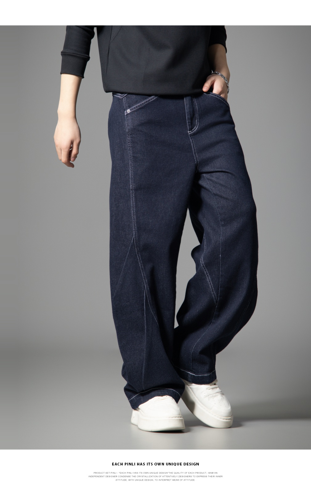 PINLI品立2025新款男士宽松秋季百搭美式高街休闲直筒牛仔长裤潮GD253116125