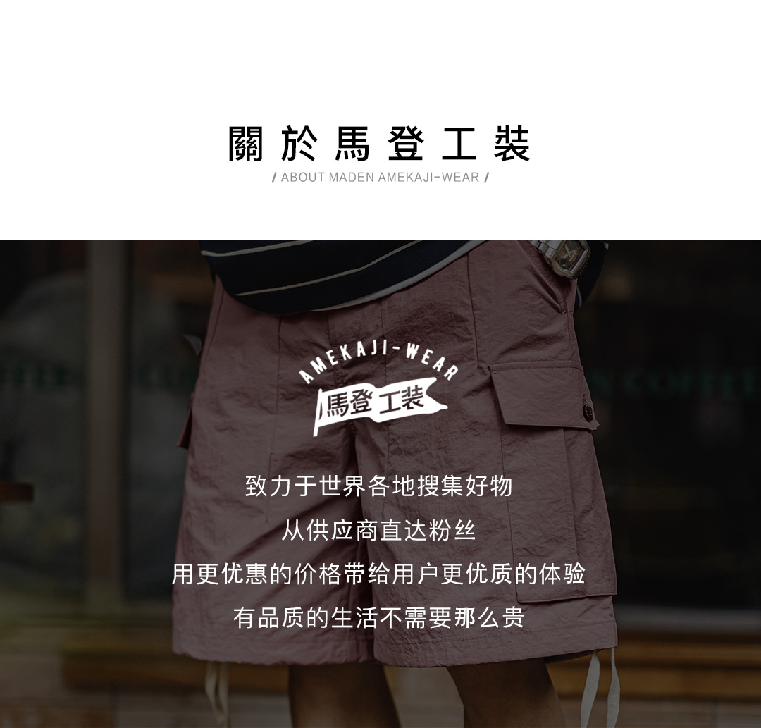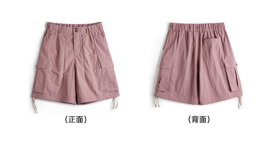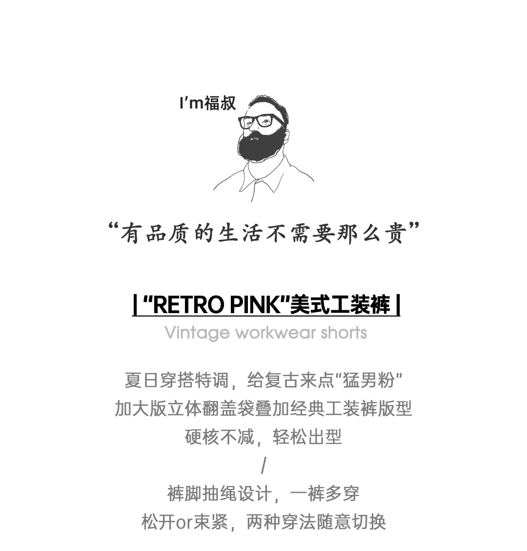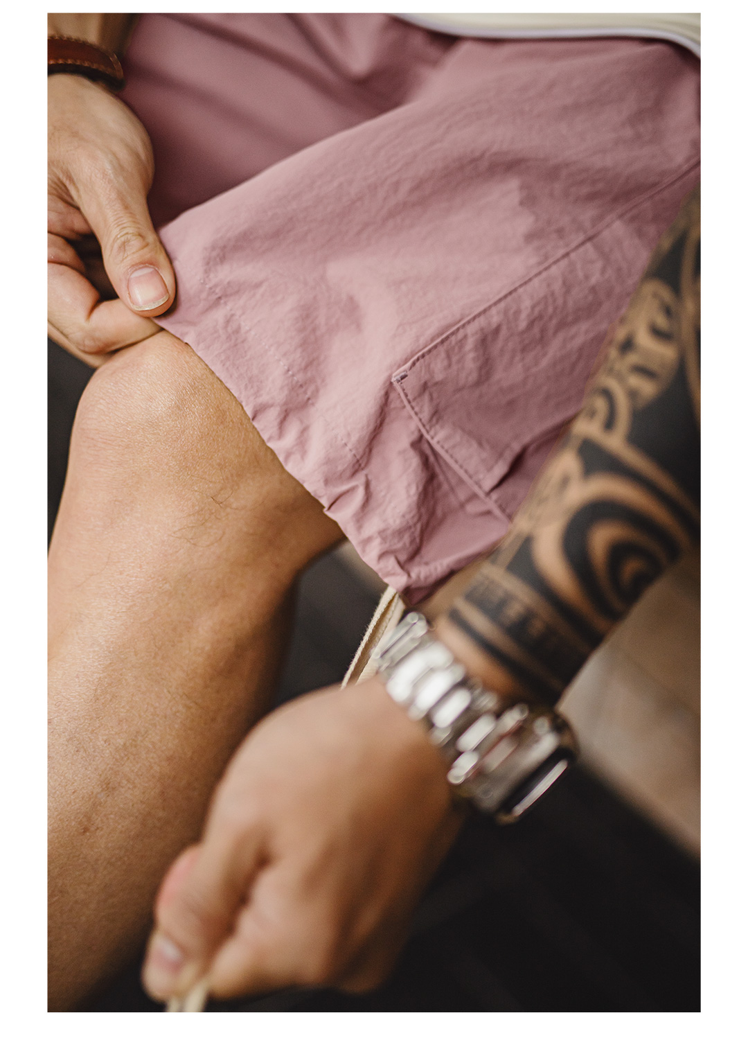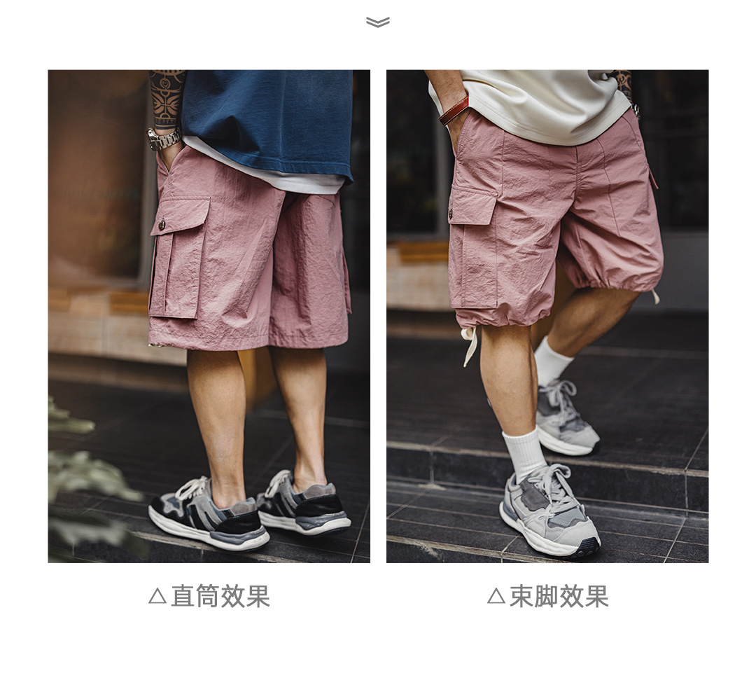 马登工装山系速干短裤美式大口袋梭织宽松直筒粉色薄款短裤男夏季