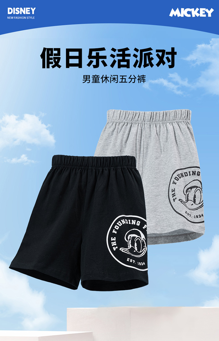 迪士尼【唐老鸭IP】短裤男童2024夏季薄款休闲纯棉透气儿童五分裤ZD2DK008
