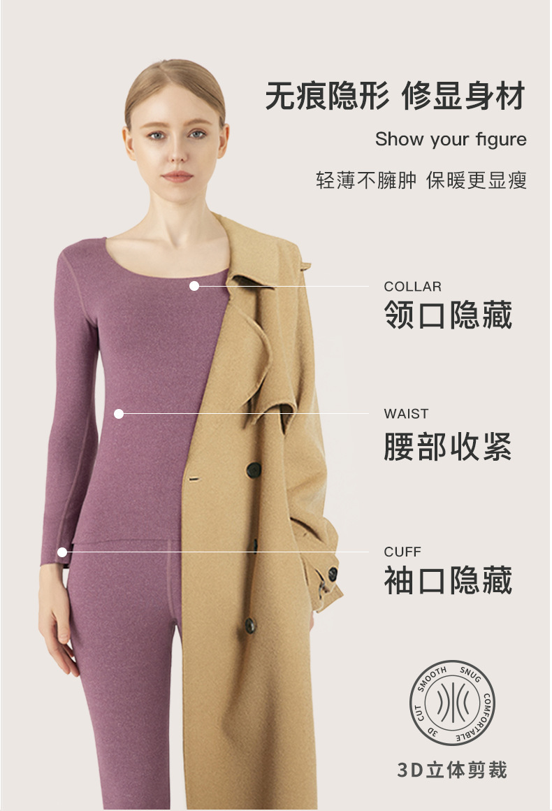 【轻暖时代 速热恒温】德绒无痕保暖内衣女秋冬双面磨毛ab面男士棉毛打底衫女士秋衣秋裤 套装