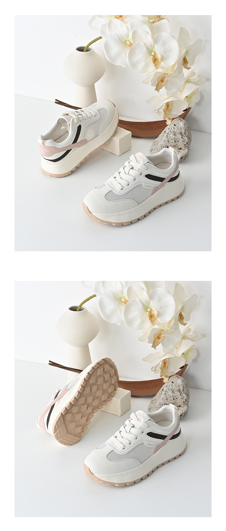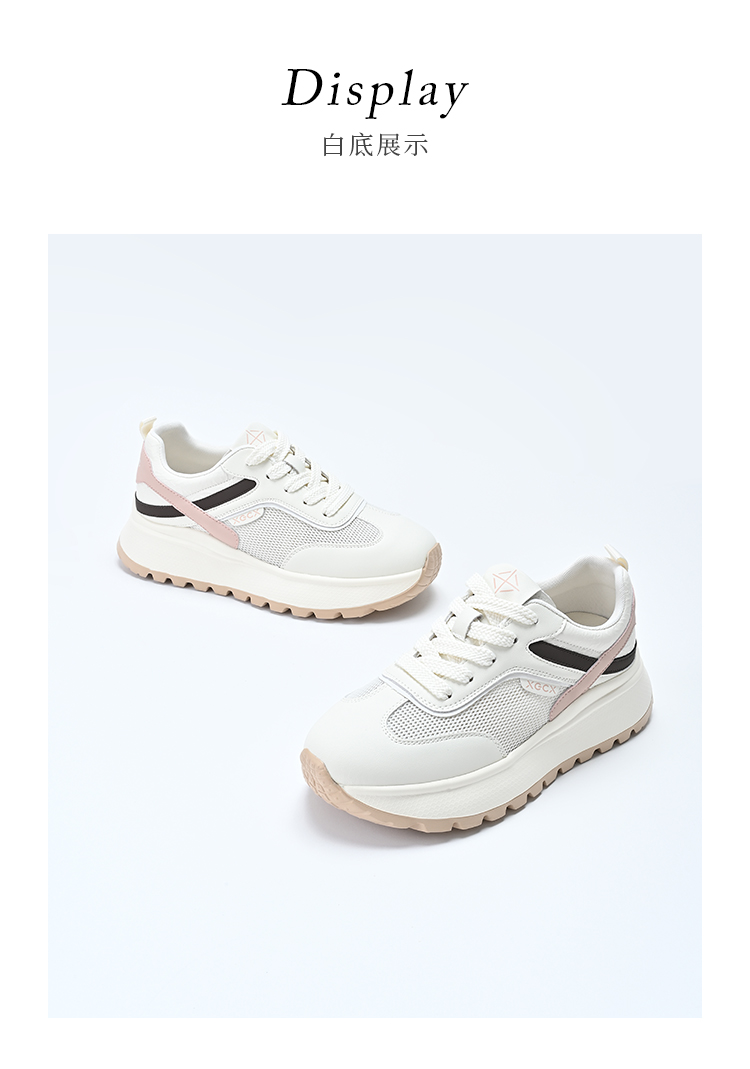 经典鲨2025年夏季新品牛皮革网面拼接透气系带舒适休闲鞋女KW160-529161