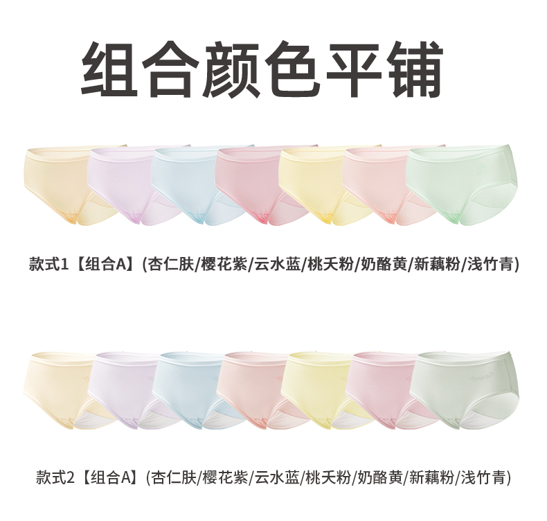 【7条装】雅黛俪女士内裤10A抗菌纯棉裆底舒适透气糖果色女生三角裤头