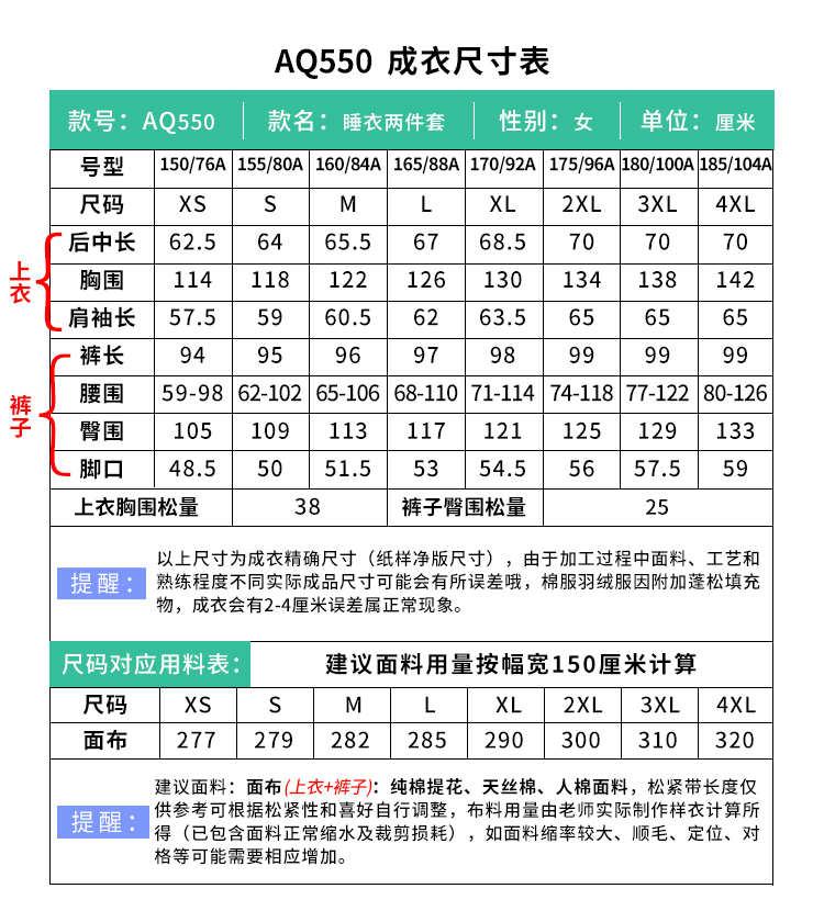 裁缝学苑AQ550套头圆领长袖长裤新款家居服套装纸样女装睡衣套装服装打板