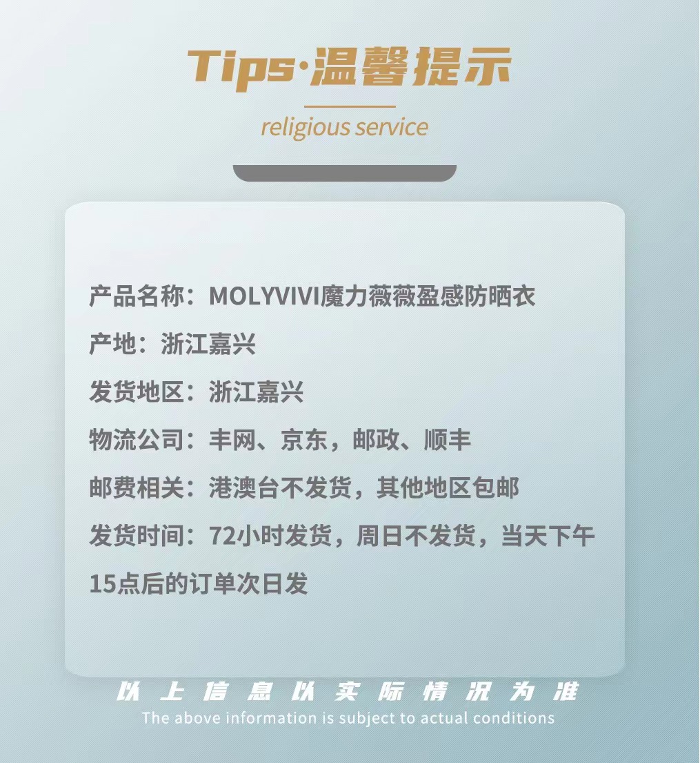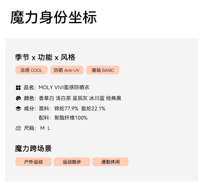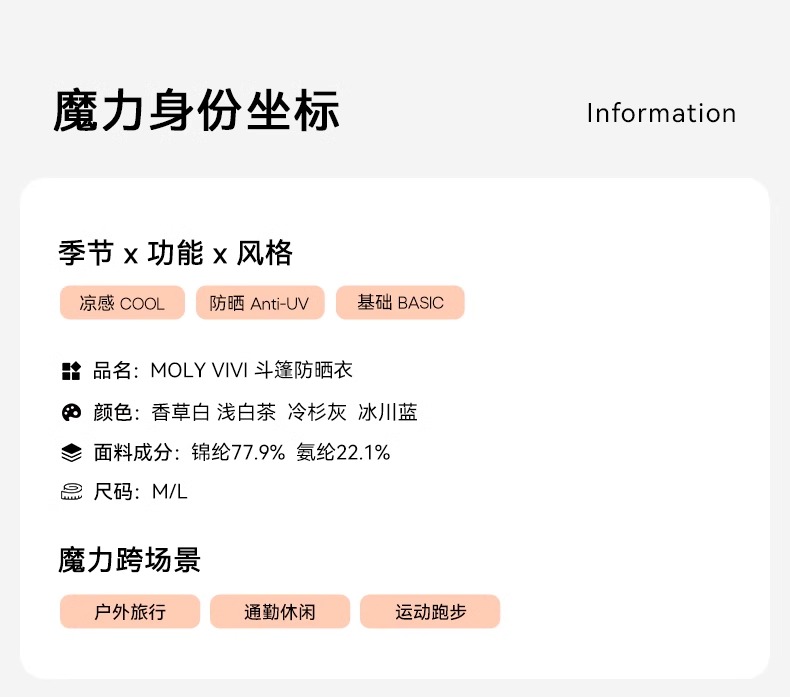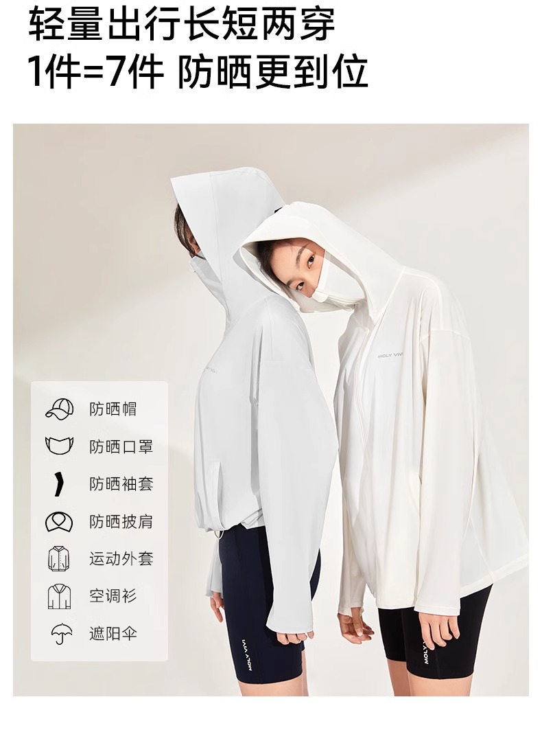 专柜线下款! MOLYVIVI魔力薇薇盈感防晒衣 冰感柔软舒适 UPF100+ 全方位防晒】【防晒帽赠送活动结束,介意勿拍】