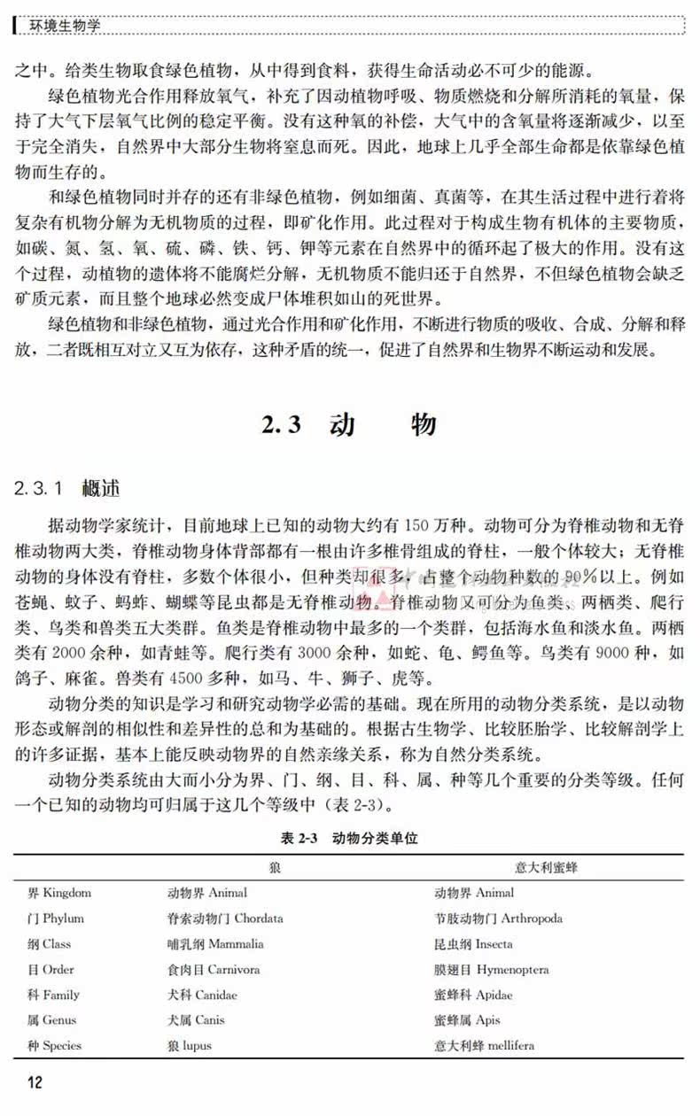 环境科学是一门综合性学科,涉及自然科学、人文社会科学和工程技术等,由环境生物学、环境地学、环境化学、环境物理学、环境医学、环境经济学、环境管理学等学科共同构成环境科学。环境生物学是生物学家解决环境问题时逐步形成的一个边缘学科。因此,了解与掌握环境生物学的基本理论与方法,是环境类专业人才认识和解决环境问题所必须。本教材是为培养环境类专业人才编写的。