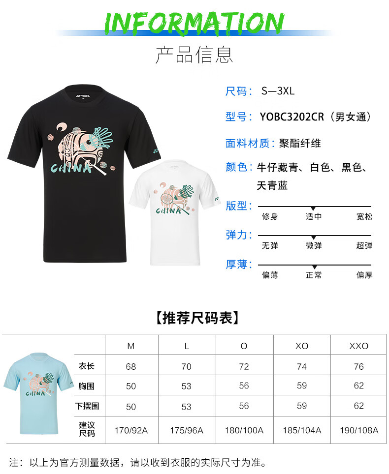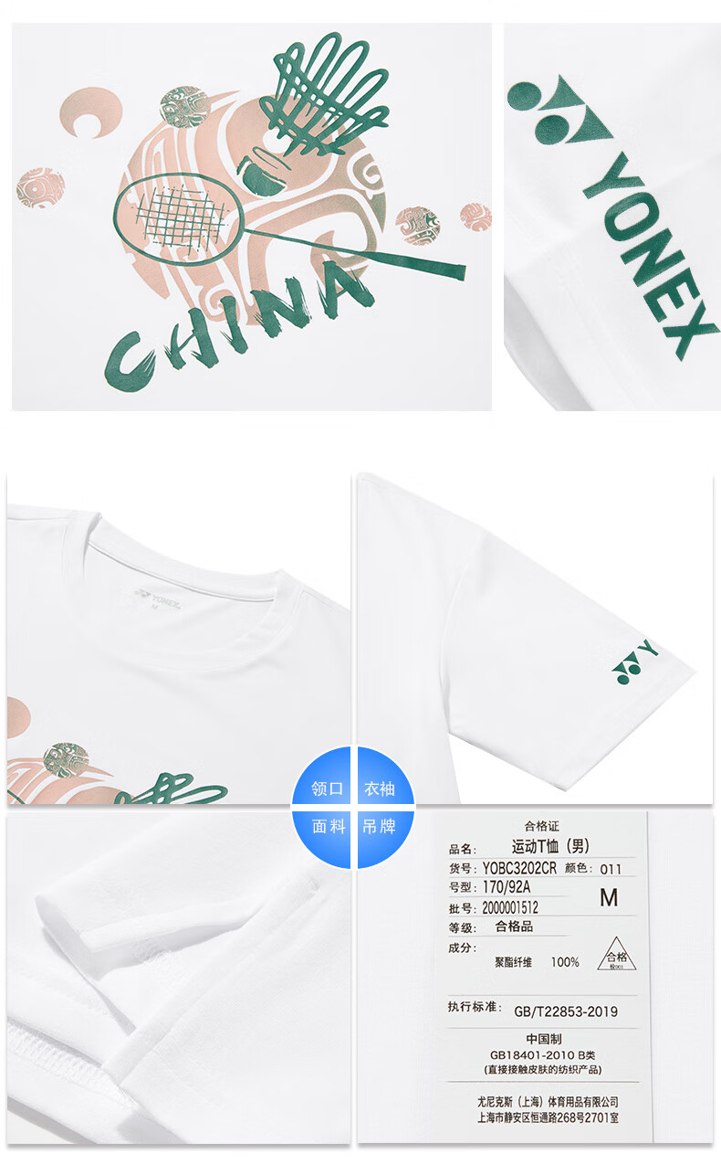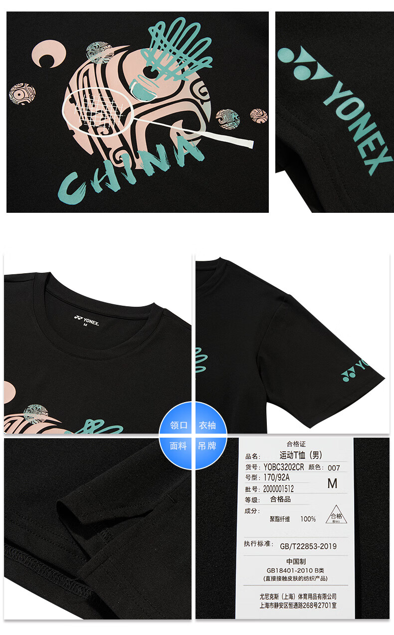尤尼克斯 男女同款 汤尤杯系列 运动T恤 YOBC3202CR