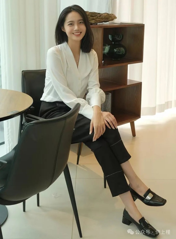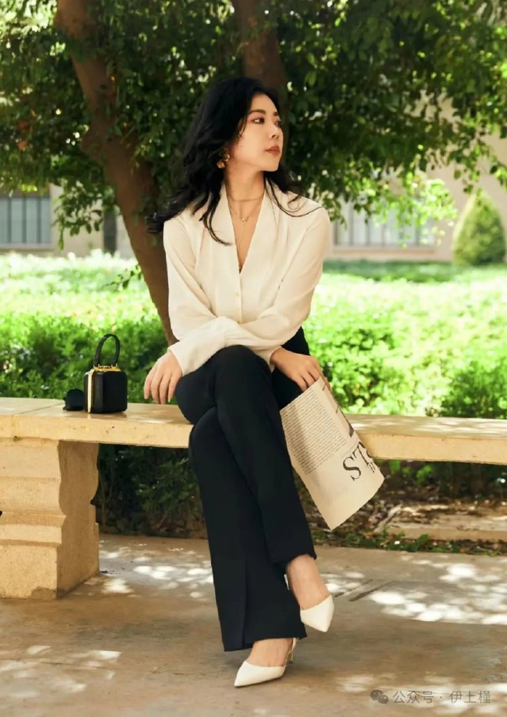 微微敞开的V领如一道几何分界线,既克制又带一丝呼吸感,让天鹅颈与锁骨化身“职场荷尔蒙”,谈判桌前的理性与女性柔美双向奔赴。