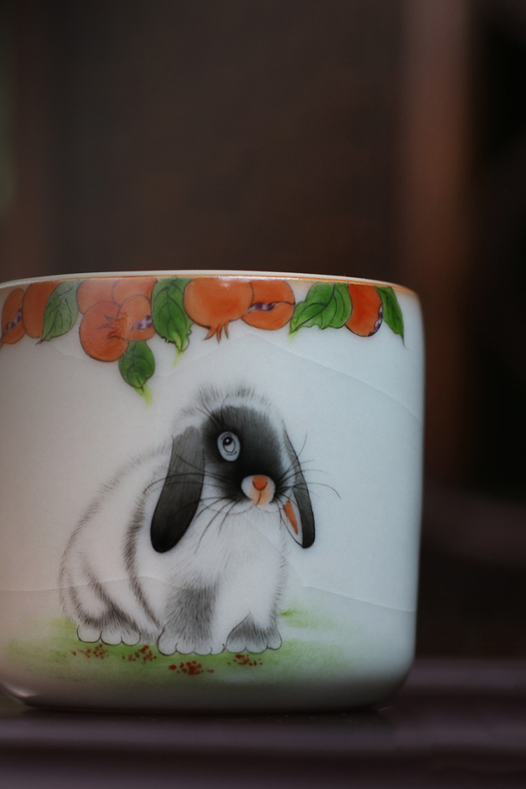 问鼎松涛彩绘哥窑游君杯(山野硕兔)(缺货)