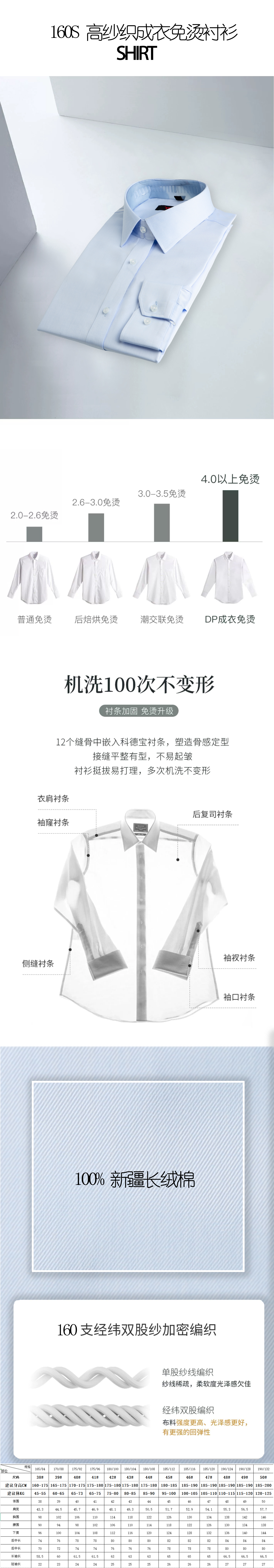 160S 高纱织成衣免烫衬衫