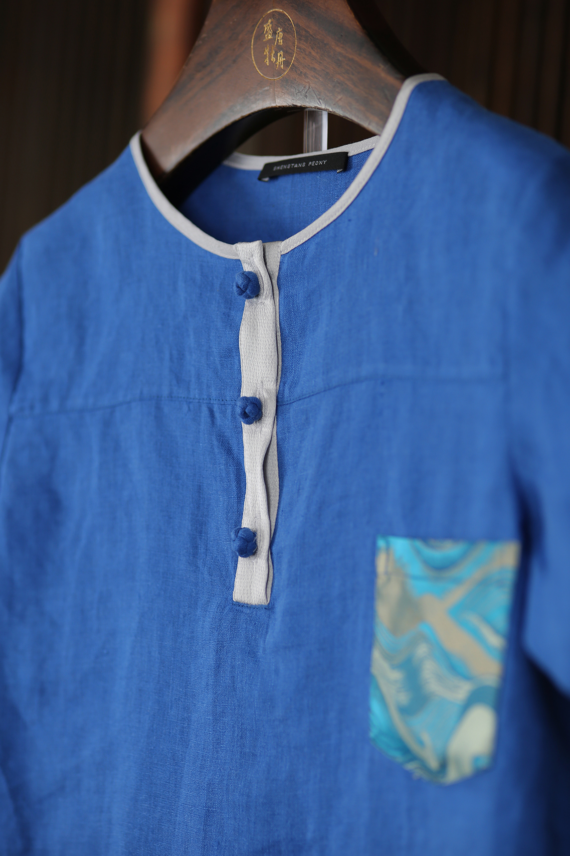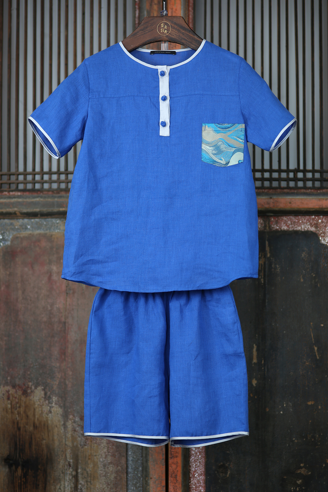 盛唐牡丹| Kids 天然亚麻宋锦短袖套装