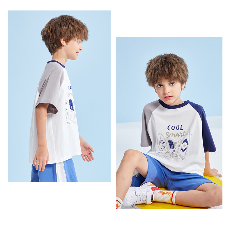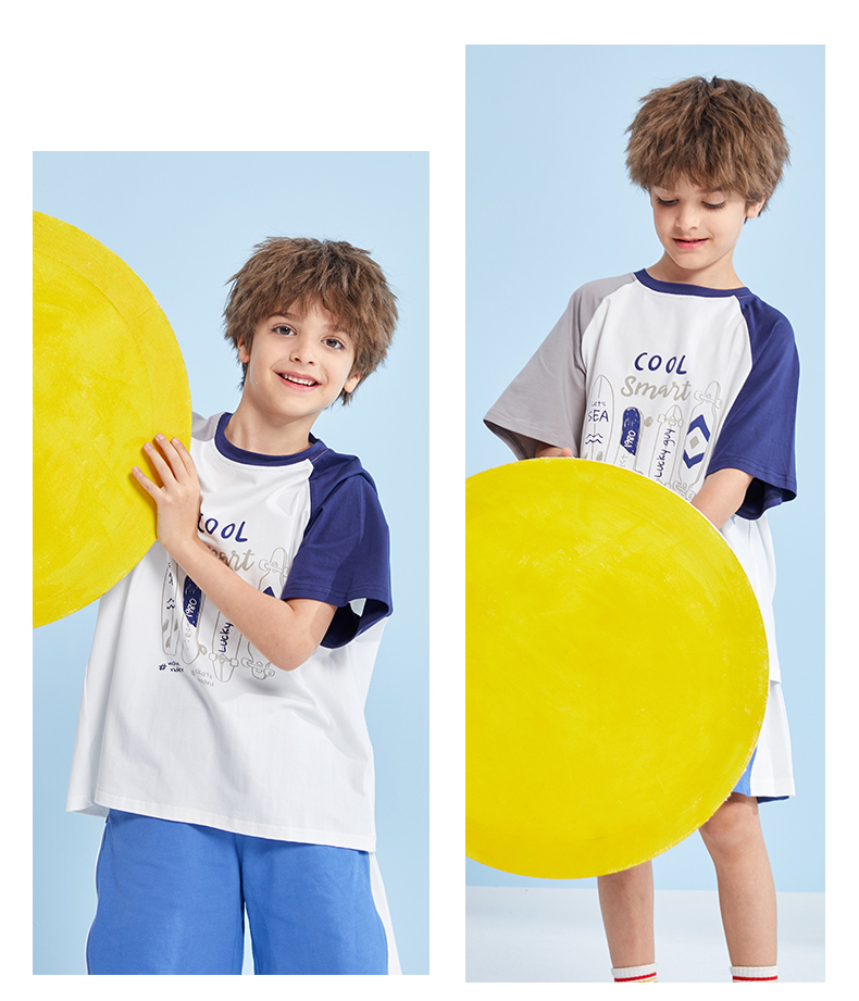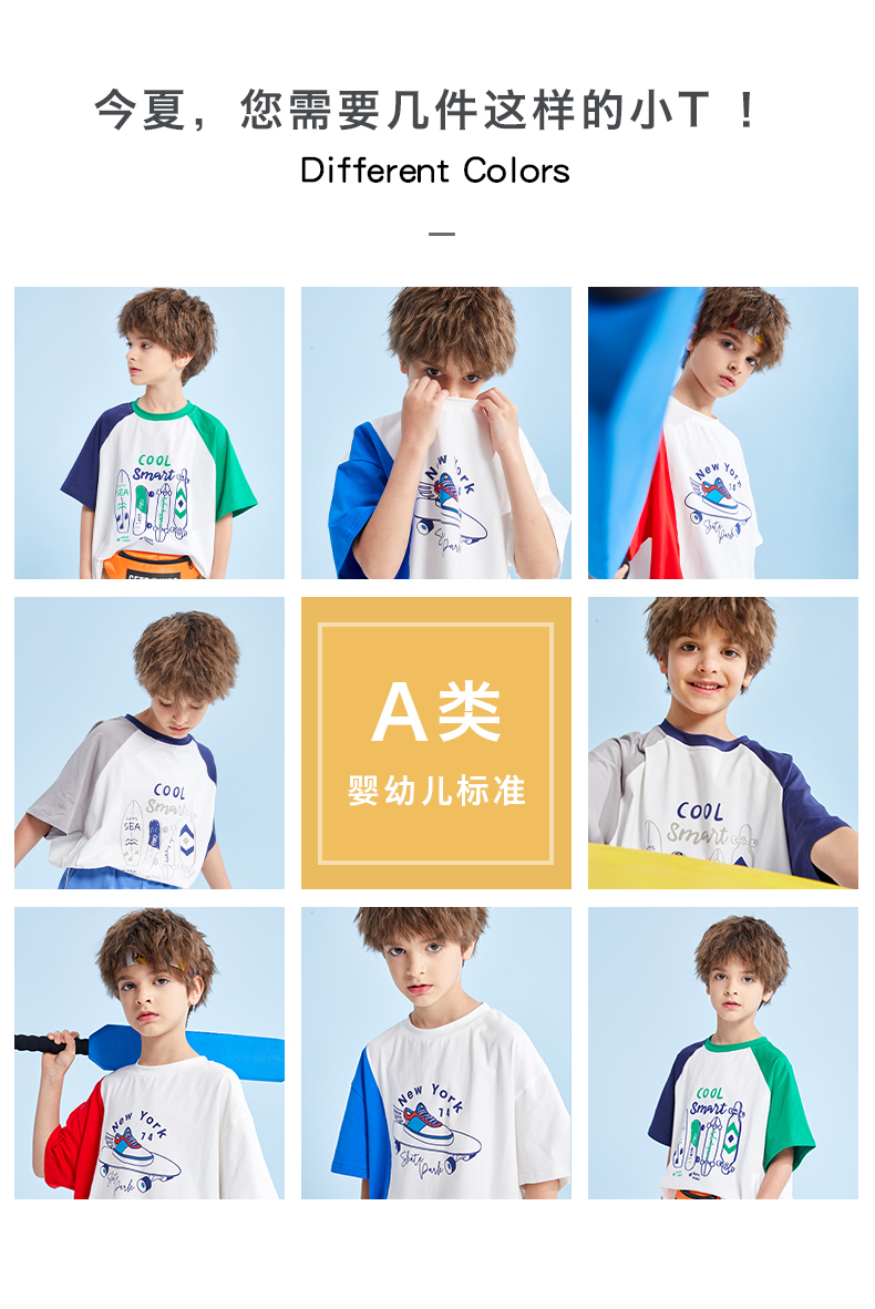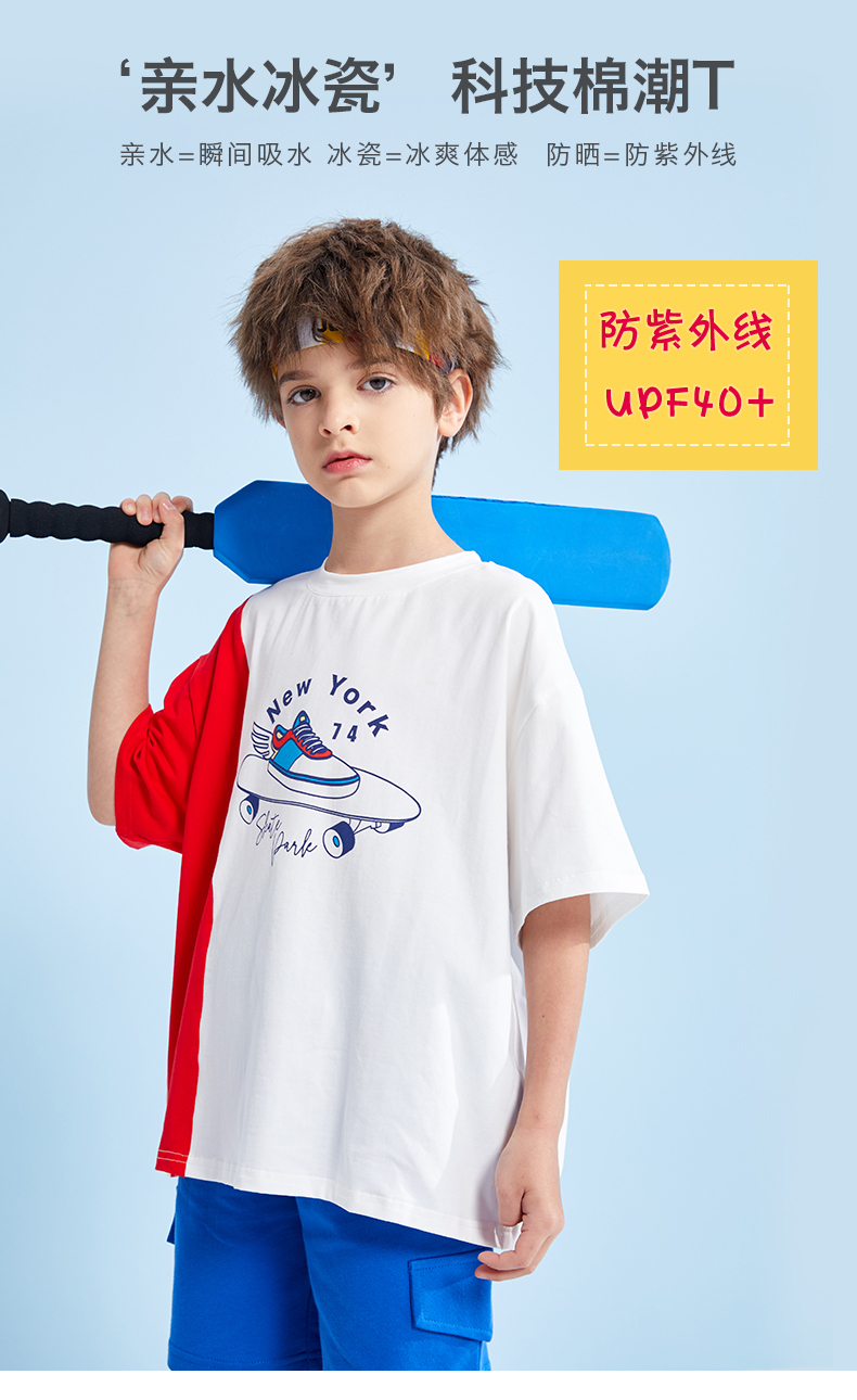 【抄底价清仓】龙之涵 男童亲水冰瓷棉短袖T恤 中大童套头上衣 婴幼儿A类标准 防晒防紫外