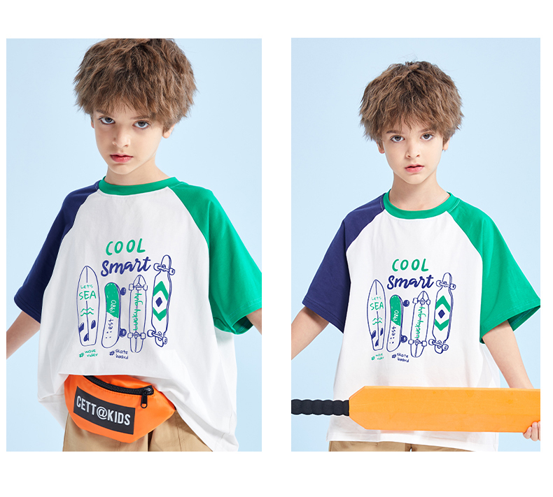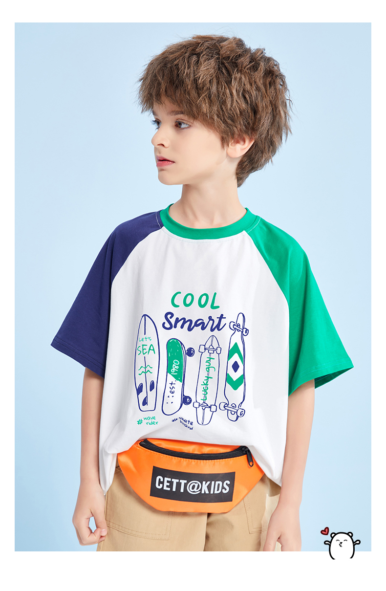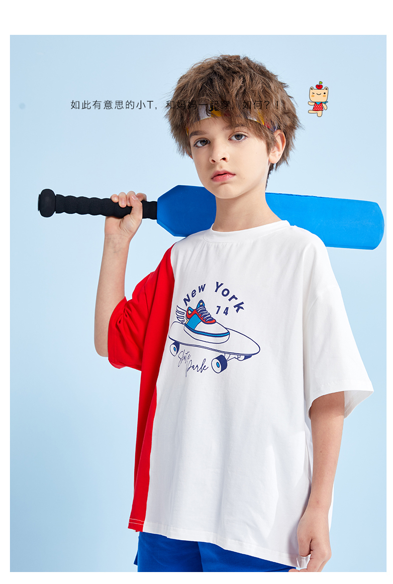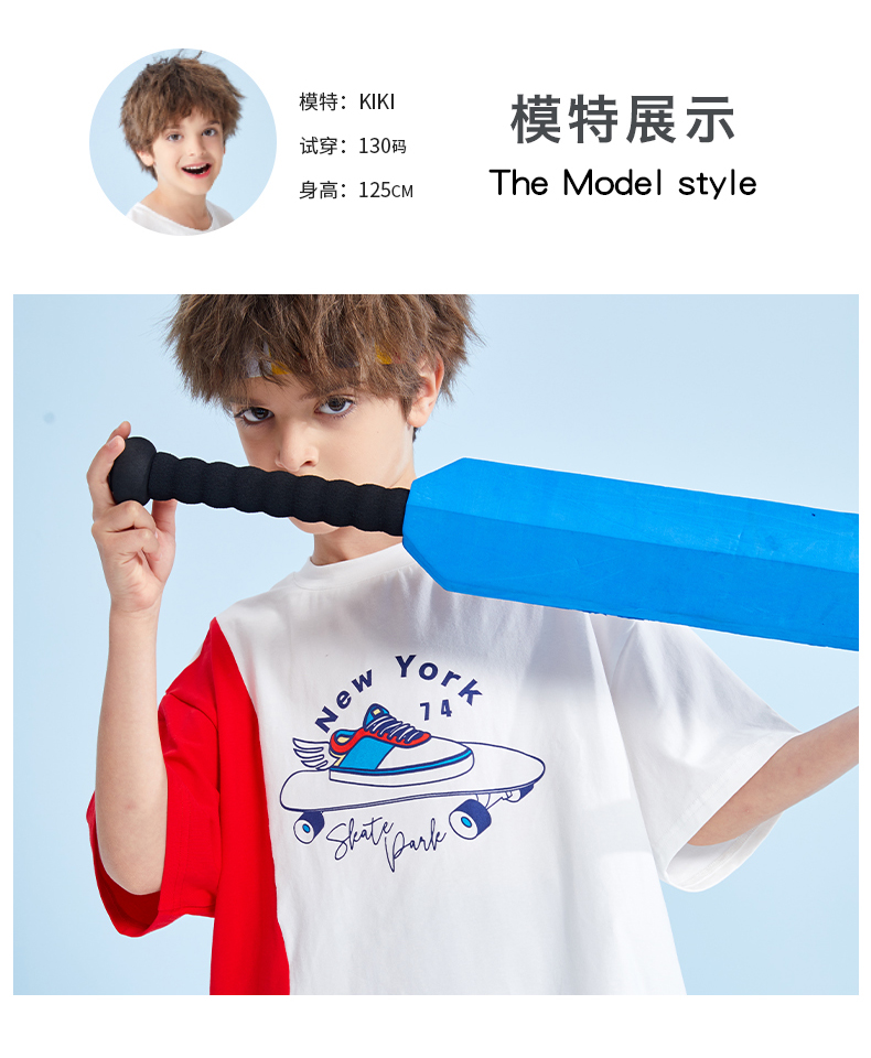 【抄底价清仓】龙之涵 男童亲水冰瓷棉短袖T恤 中大童套头上衣 婴幼儿A类标准 防晒防紫外