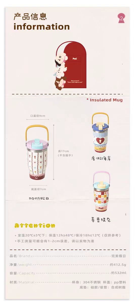 4楼Eubelle欧蓓 puui原创生活手提保温杯532ml 高颜值吸管杯冰霸杯 活动价:179元