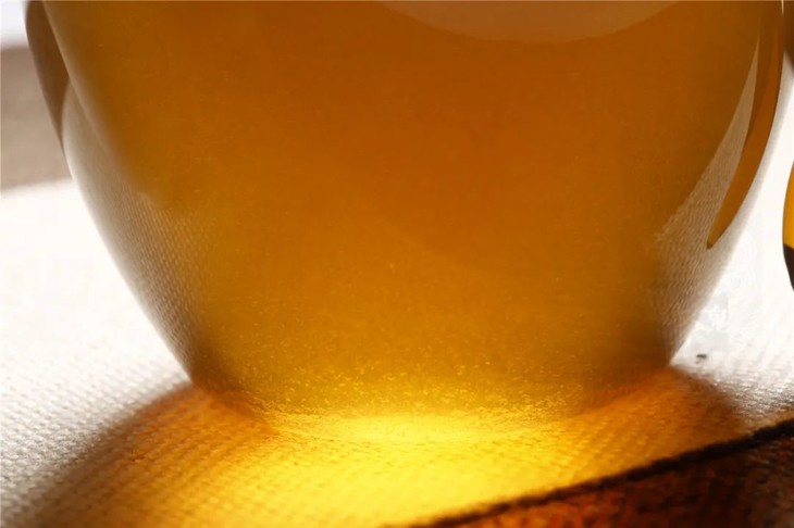 汤色栗黄澄净,油润感强。杯底留香为清新幽雅的花蜜香,挂杯持久。
