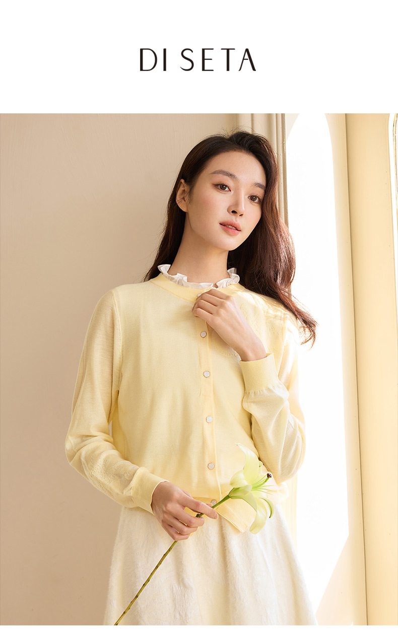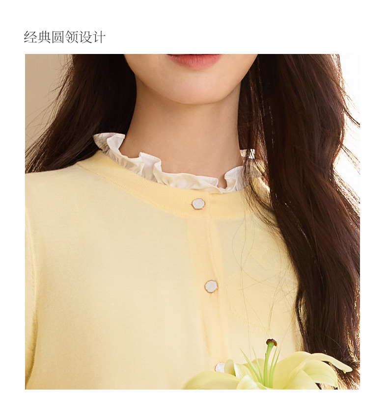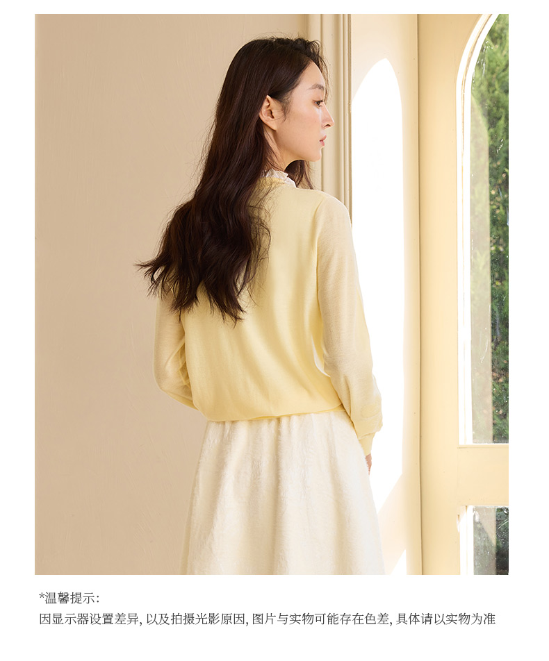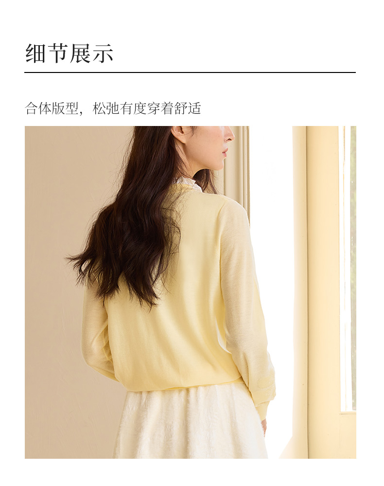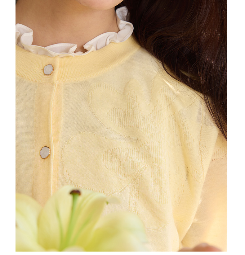 玳莎圆领长袖针织开衫女2025早春新款提花设计感外穿毛衣上衣内搭 FA33301