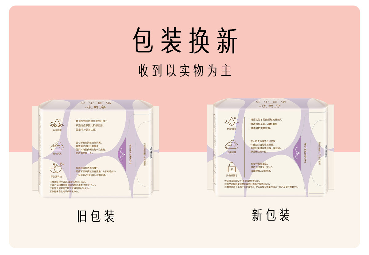 奶滑小方系列的表层如同牛奶的丝滑触感,是因为品牌添加天然乳蛋白因子,上身温润抗摩擦,缓解经期皮肤敏感问题。同时,品牌还搭配了云感蓬松芯体,平衡干爽与柔软。这个系列的卫生巾不仅触感丝滑,而且贴合度极高,能够完美包裹身体曲线,无论是在日常还是运动,都不会出现移位或侧漏的情况。