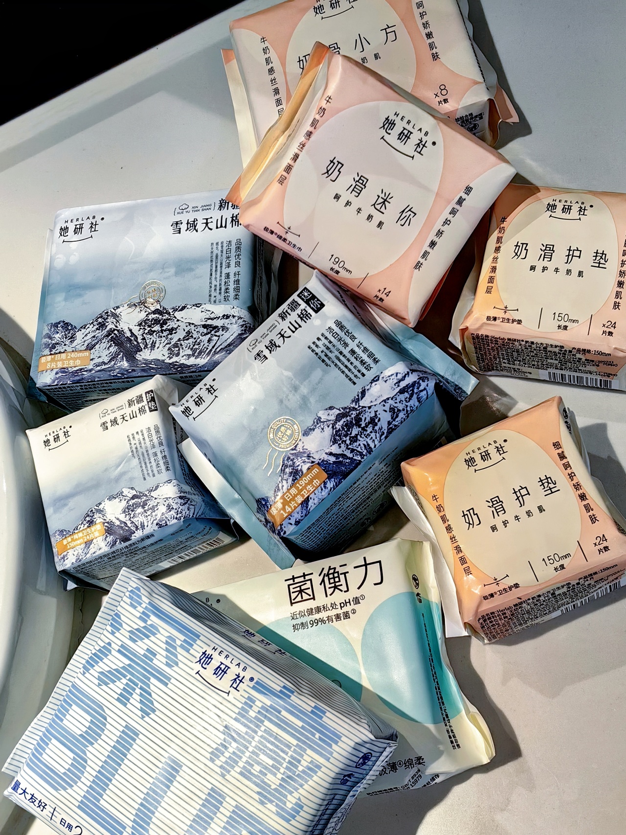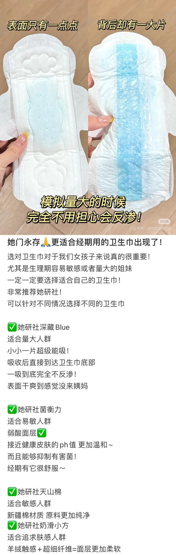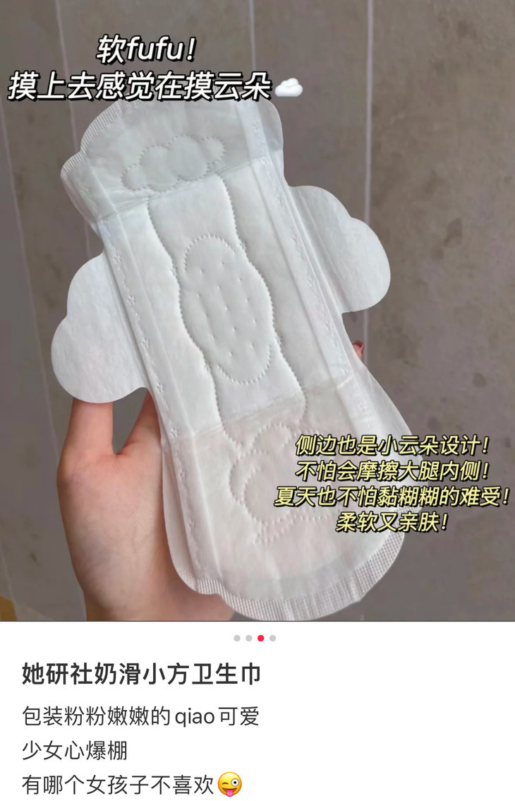 她研社的产品线丰富多样,深藏blue系列、新疆棉系列和奶滑小方系列各具特色,满足各种场景下的个性化需求,大家可以根据自己的姨妈情况和喜好来选择适合自己的哦!