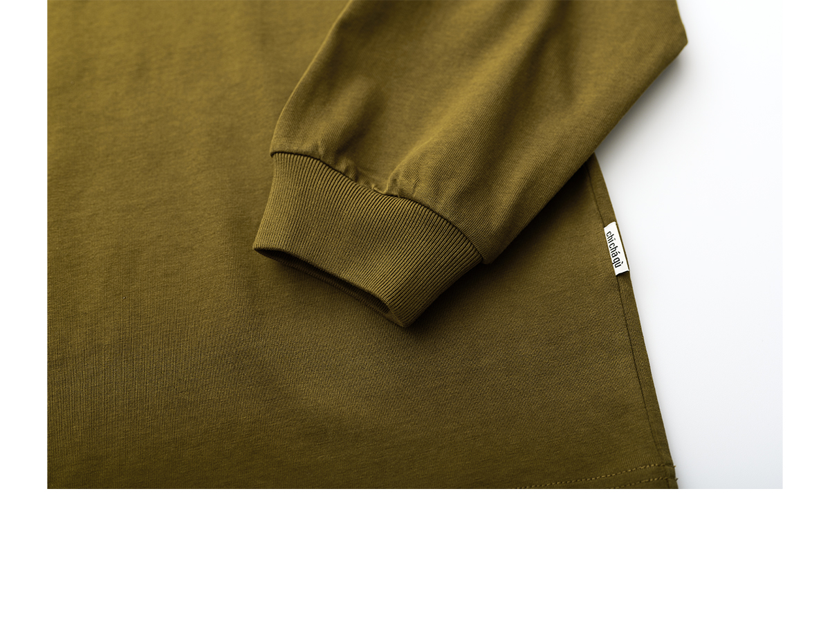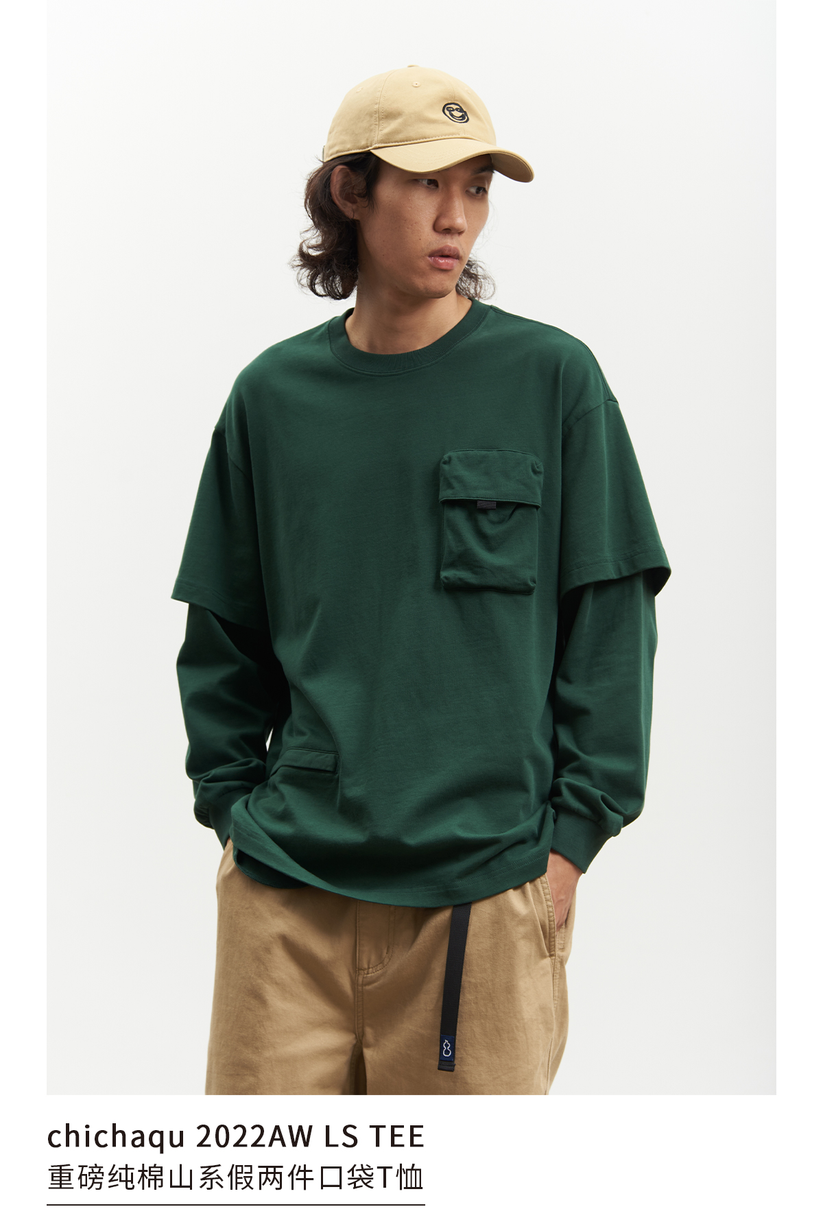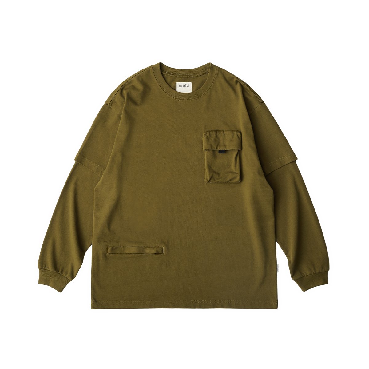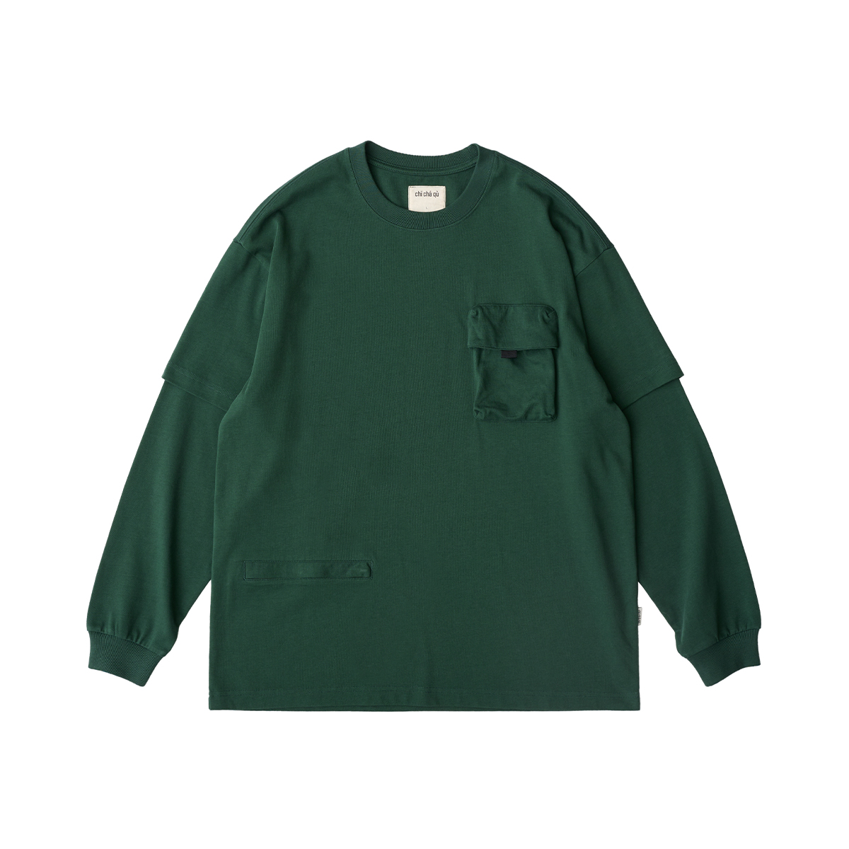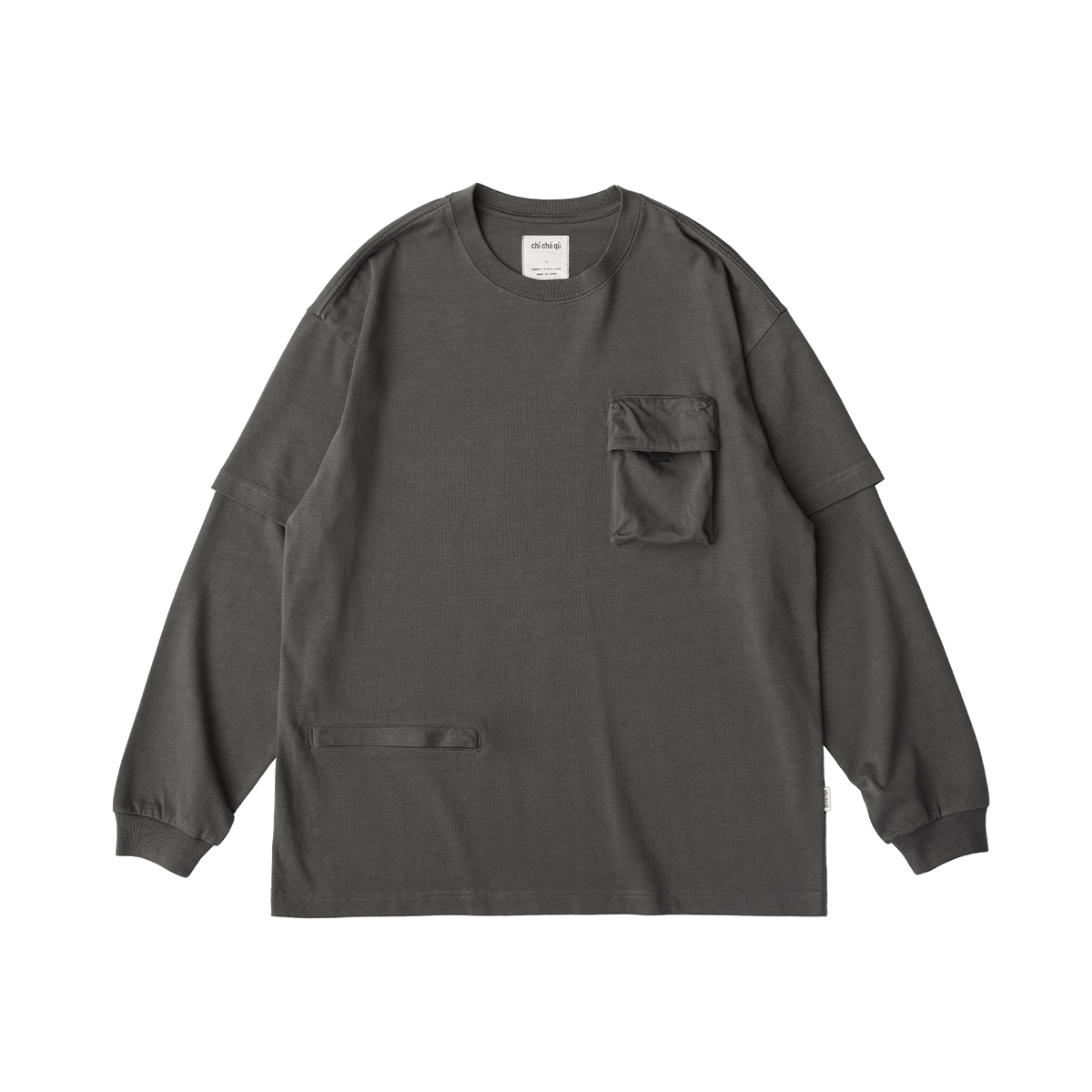 吃茶去chichaqu重磅宽松山系拉链口袋假两件长袖T恤