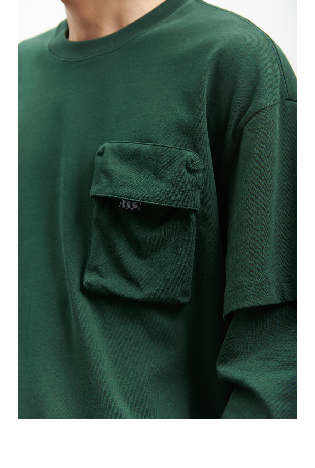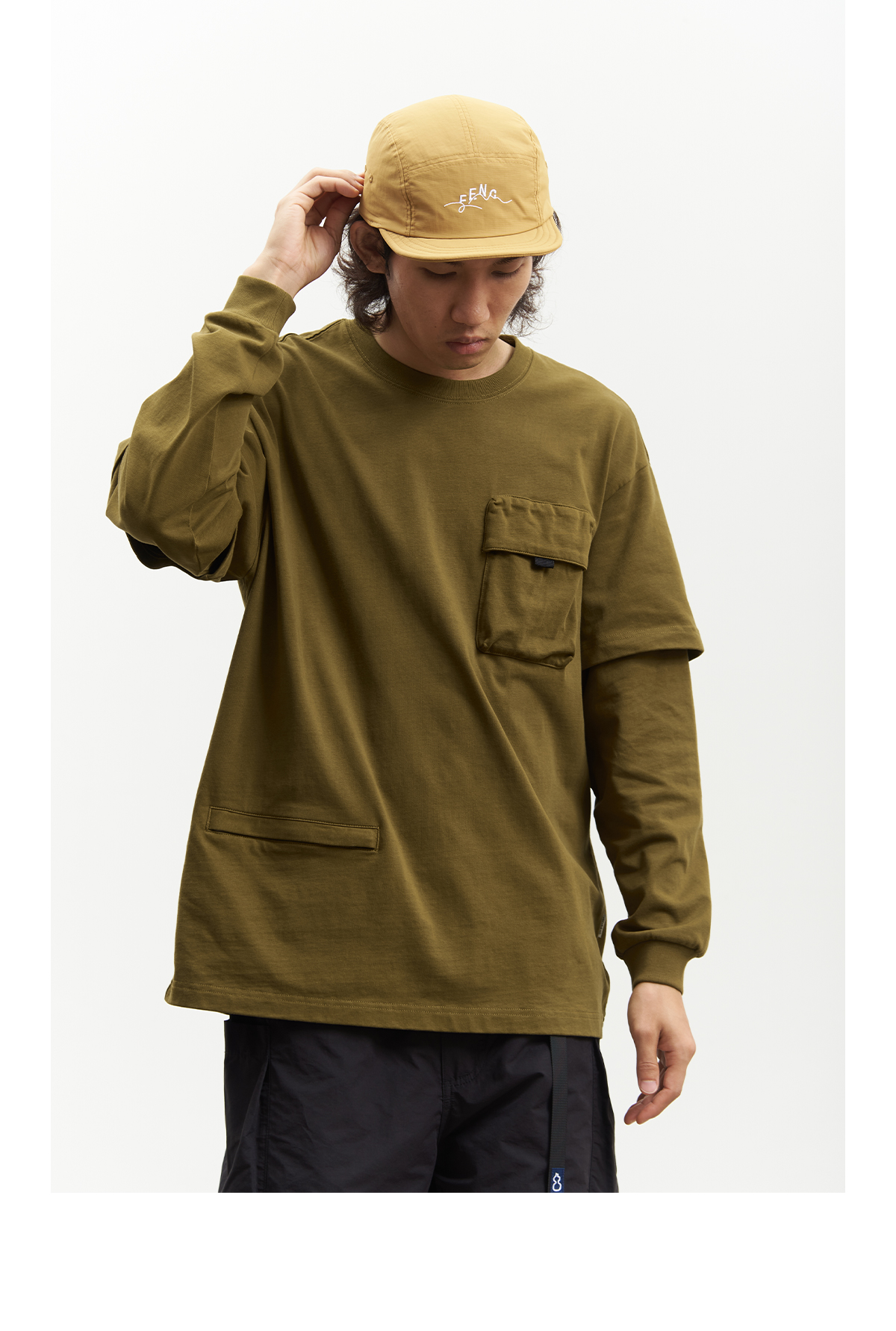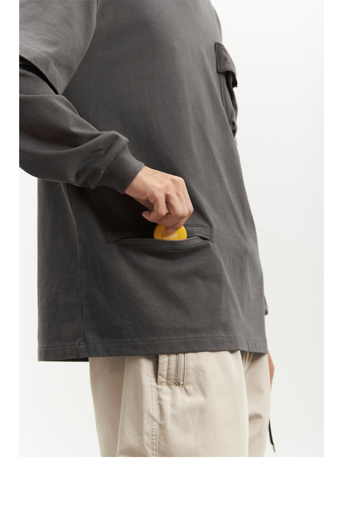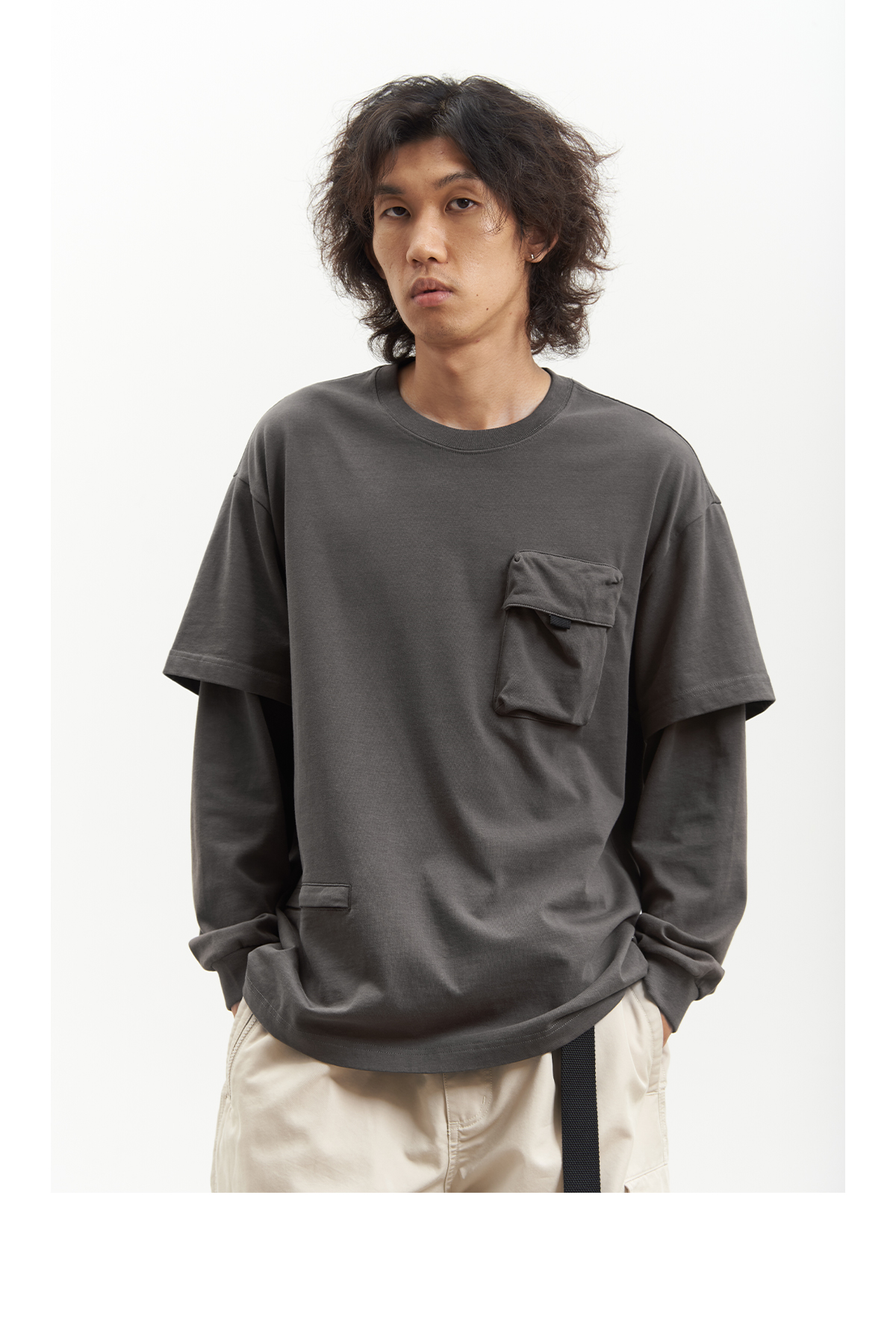吃茶去chichaqu重磅宽松山系拉链口袋假两件长袖T恤