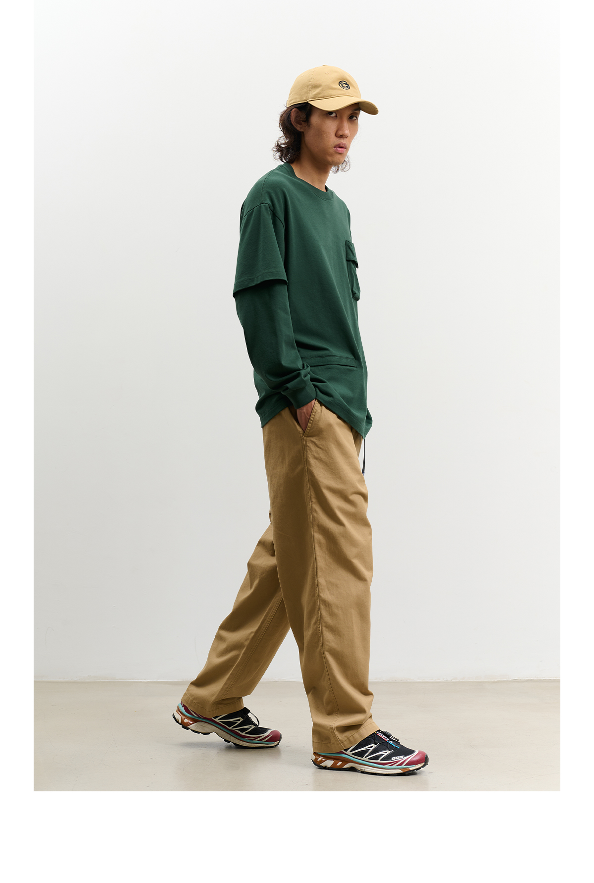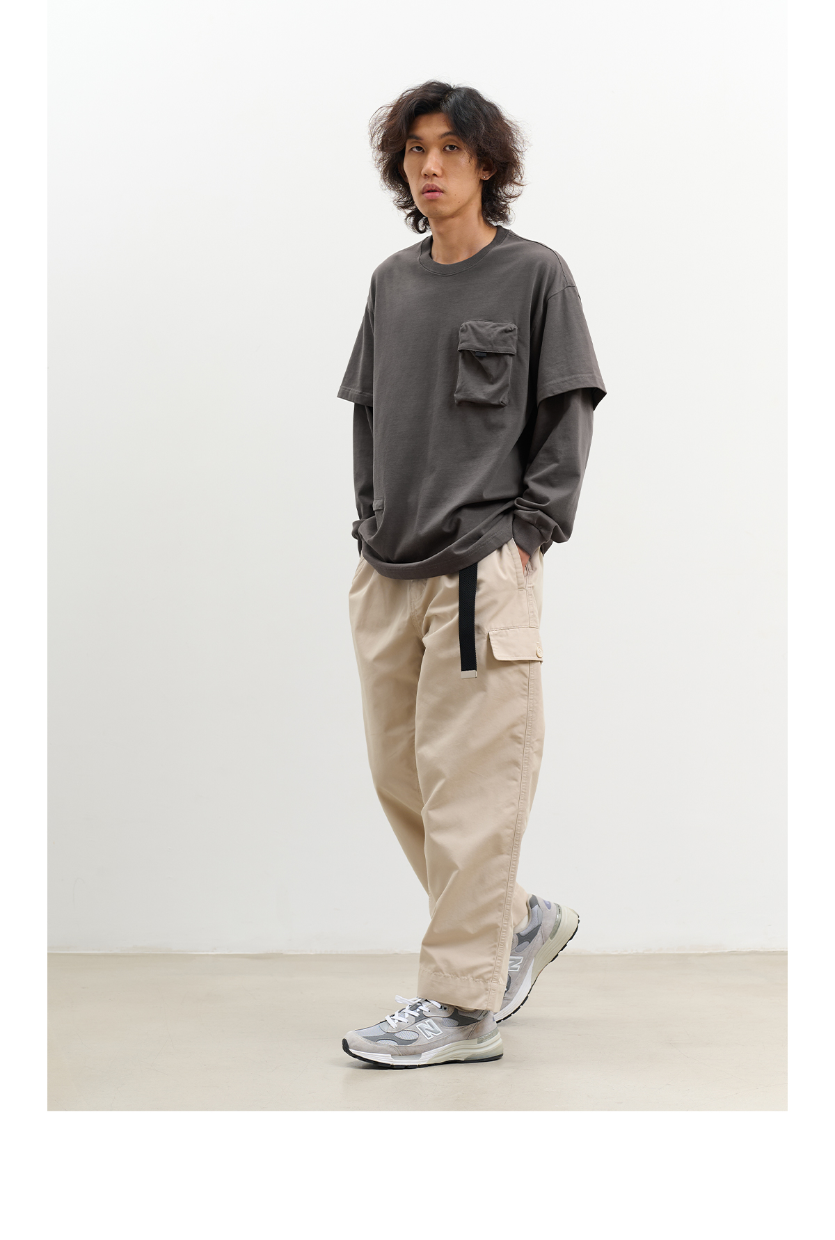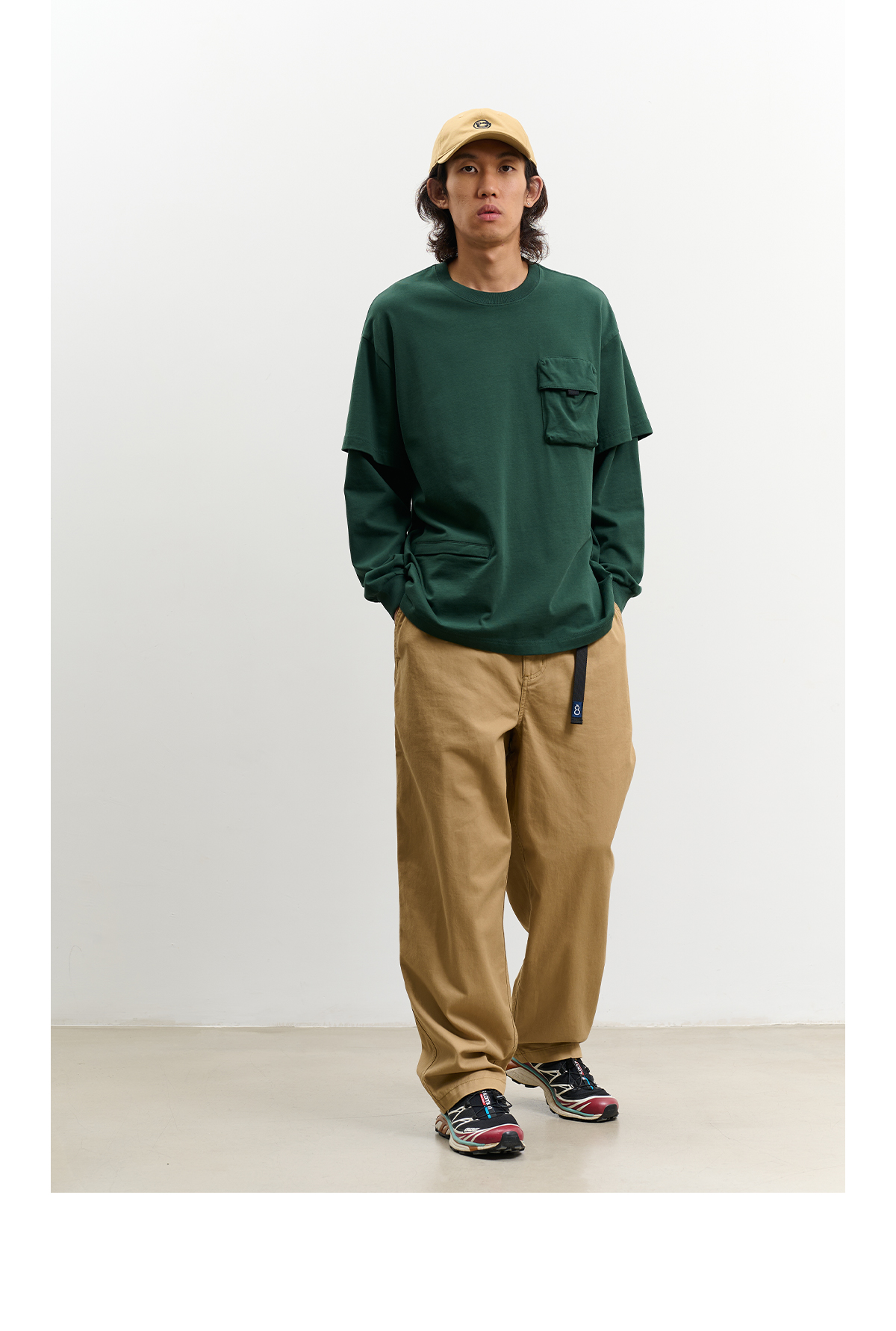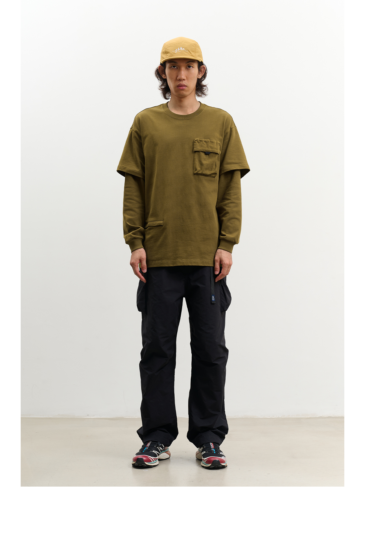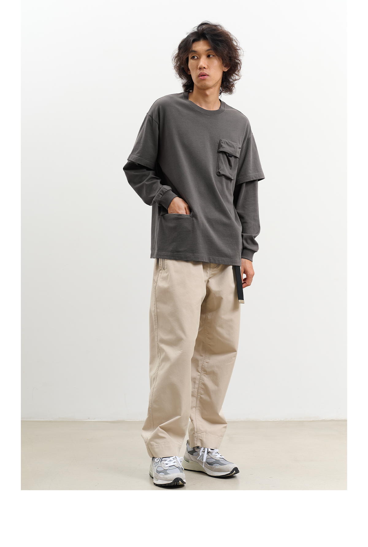 吃茶去chichaqu重磅宽松山系拉链口袋假两件长袖T恤